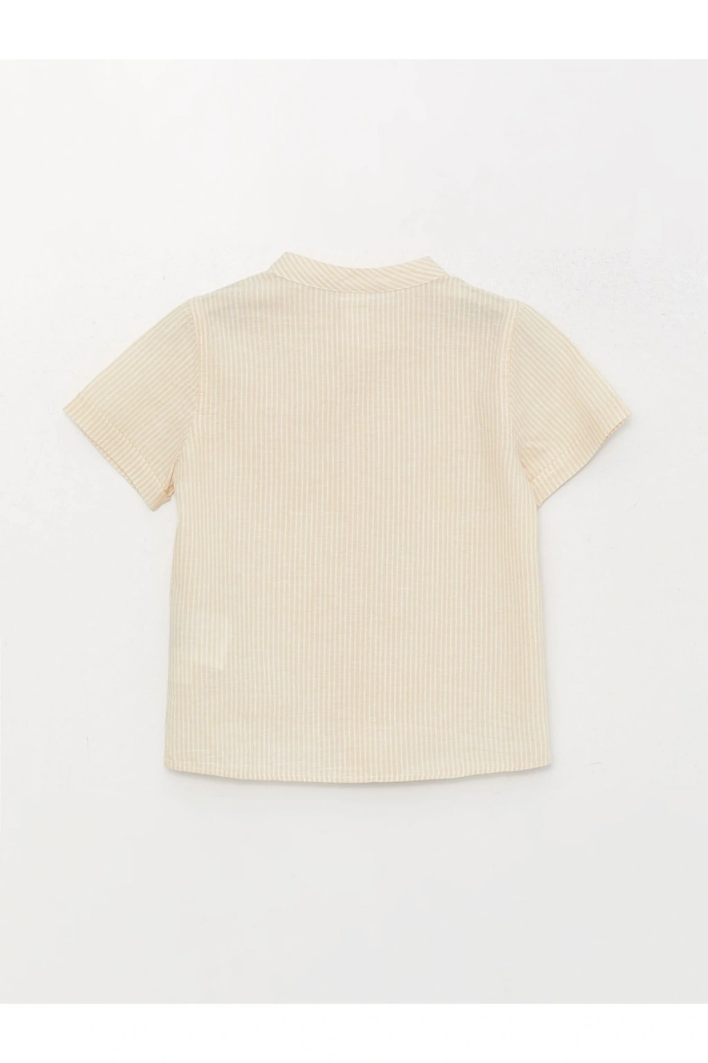 %75 pamuk ve %25 keten içeriğiyle yumuşak dokunuşlu ve konforlu bir kullanım sunar.; Standart kol tasarımı ile rahat hareket etme özgürlüğü sağlar.; Dokuma kumaşı sayesinde dayanıklı ve uzun ömürlüdür.; Regular kalıp, bebeğinizin vücudunu saran ancak sıkmayan ideal bir oturuş sunar.; Kısa kollu tasarım, sıcak havalarda bebeğinizin serin kalmasına yardımcı olur.; Regular boy kesimi ile bebeğinizin hareket özgürlüğünü kısıtlamaz.; Sade ve düz deseniyle zamansız bir şıklık sunar.; Basic siluetiyle her türlü alt giyimle kolayca kombinlenebilir.; Gömlek yaka detayı ile klasik ve şık bir görünüm kazandırır.; Type 1 yıkama talimatına uygun şekilde bakım yapıldığında uzun süre ilk günkü gibi kalır.; Casual ortamlarda günlük kullanıma uygundur; evde ya da dışarıda rahatlıkla tercih edilebilir.;