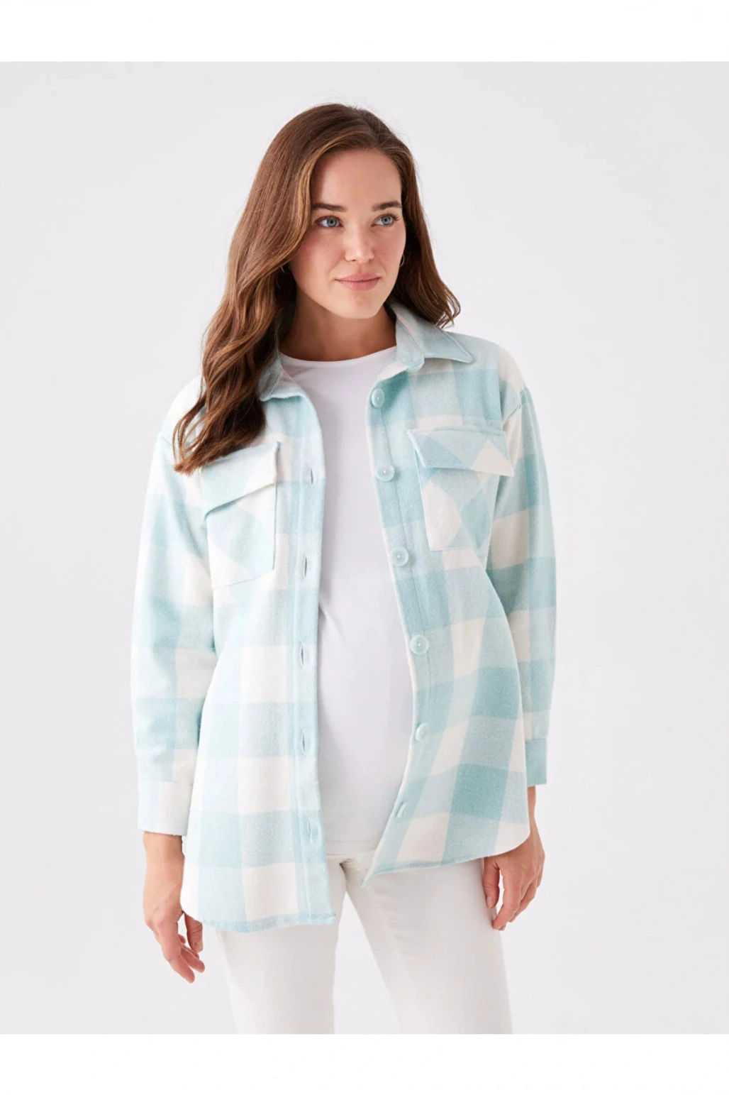 Maternity Ekose Uzun Kollu Hamile Oduncu Gömlek Ceket