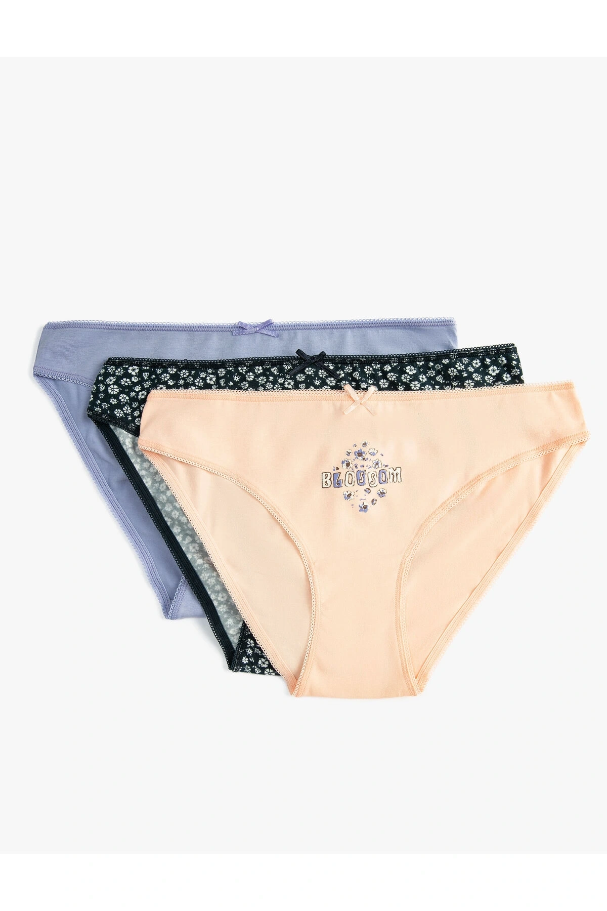 Pamuklu Külot Brief 3'lü Baskılı Fiyonk Detaylı