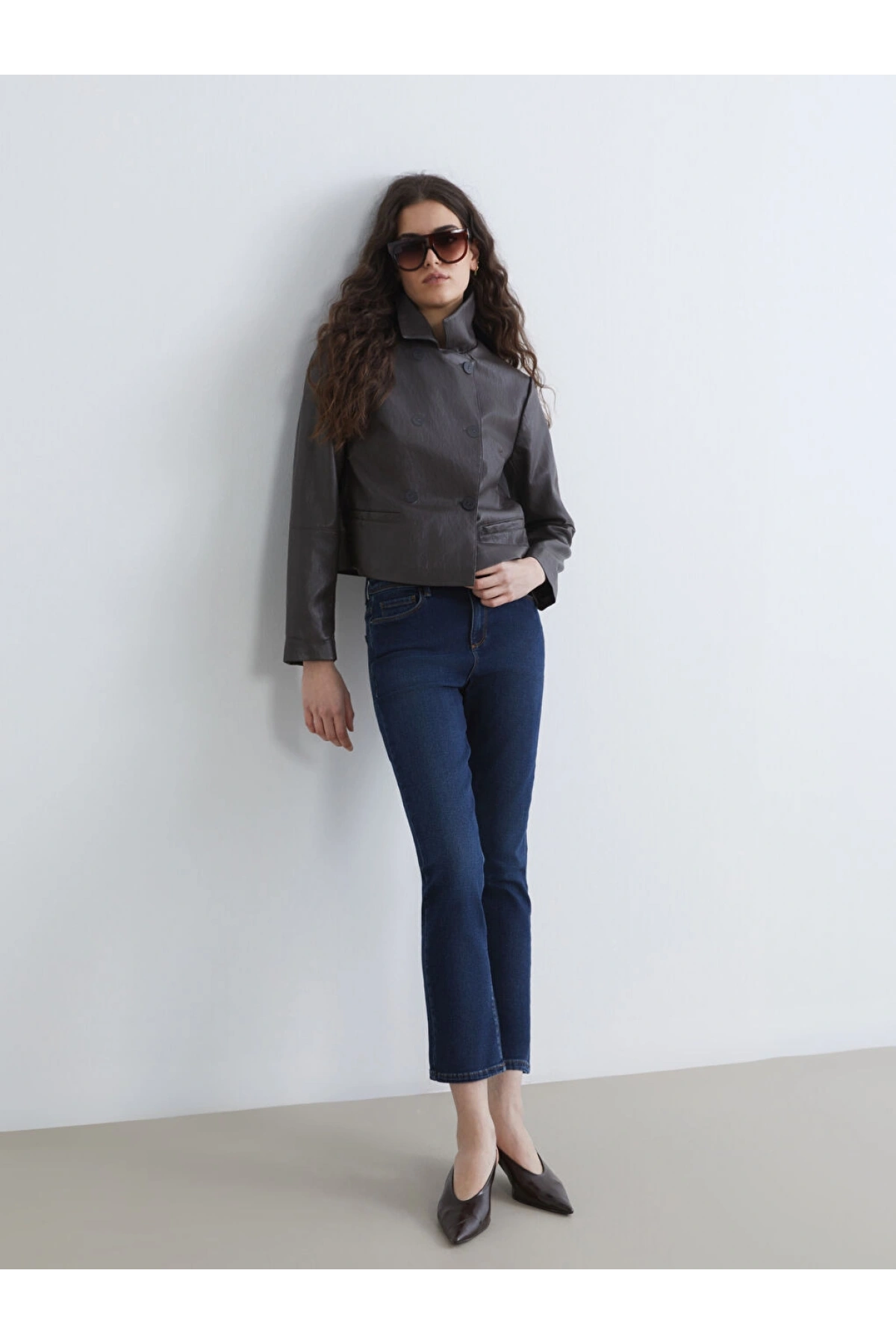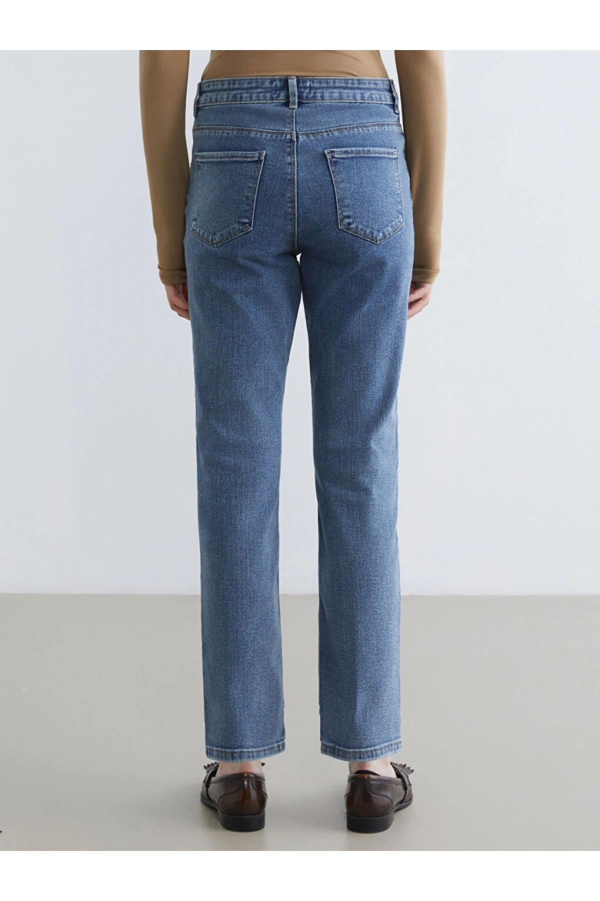 Pamuklu Düz Paça Cepli Düğmeli Jean Pantolon - Straight Jeans