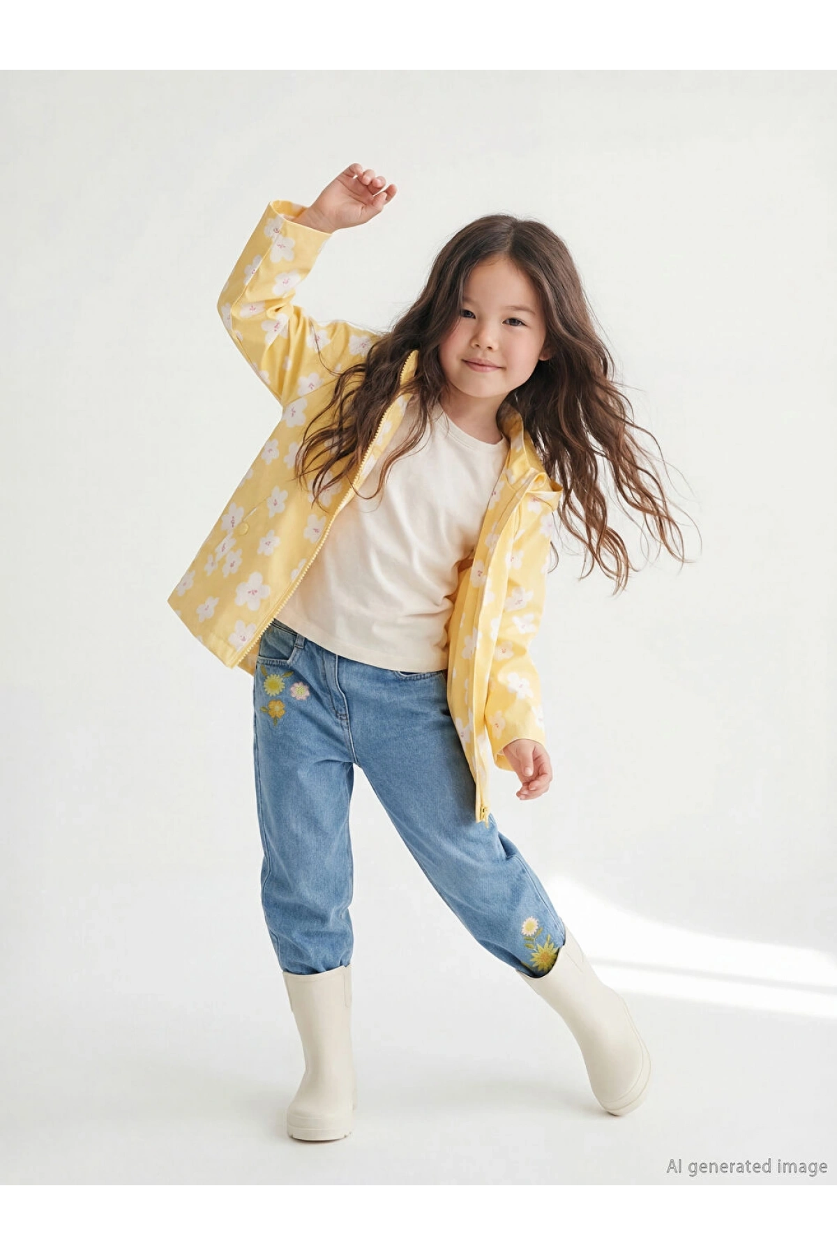 LCW baby Indigo Nakışlı Kız Çocuk Jean Pantolon