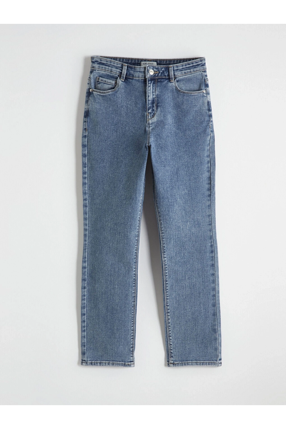 Yüksek Bel Dar Kalıp Düz Paça Pamuklu Jean Pantolon - Slim Straight Fit Jean