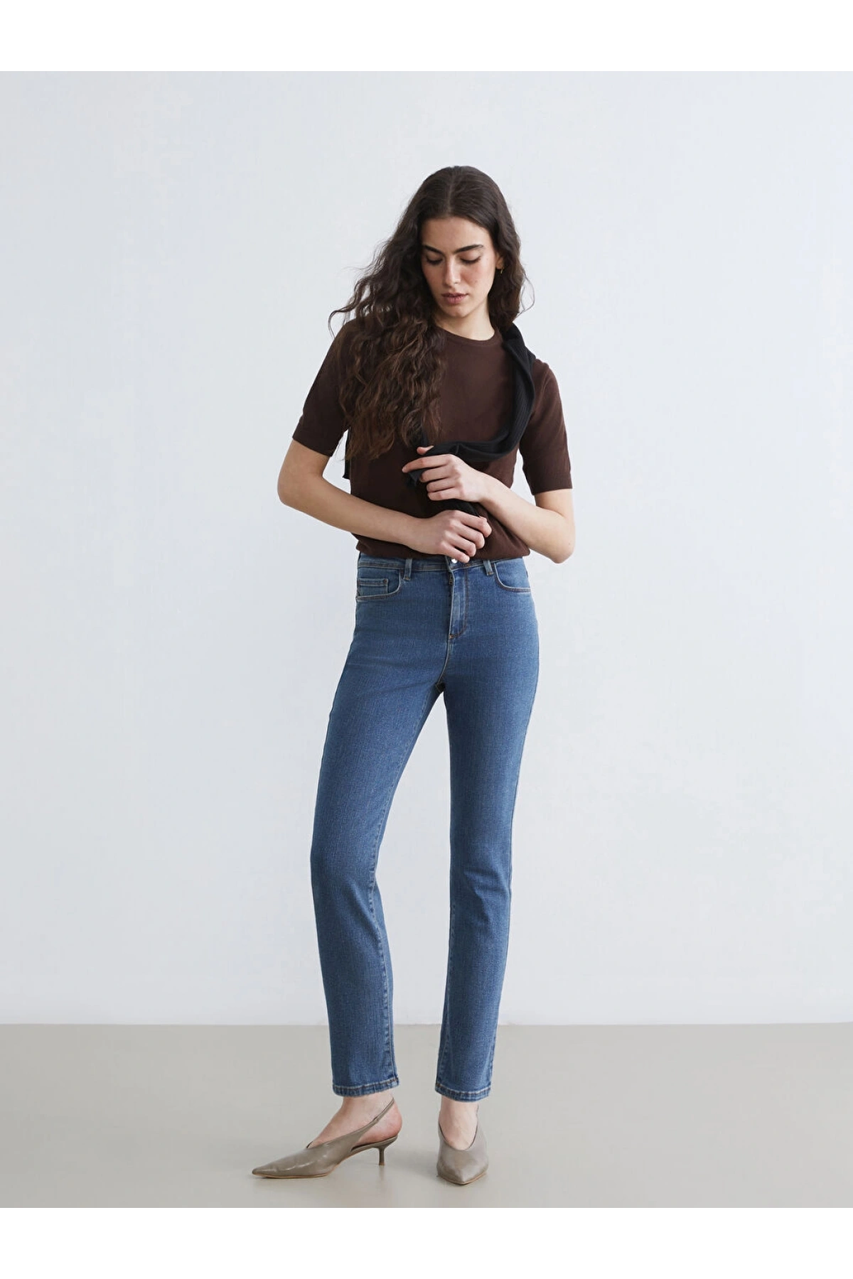 LCWAIKIKI Classic Indigo Yüksek Bel Slim Fit Kadın Jean Pantolon