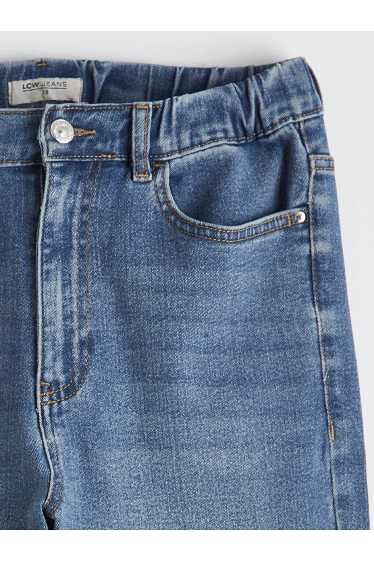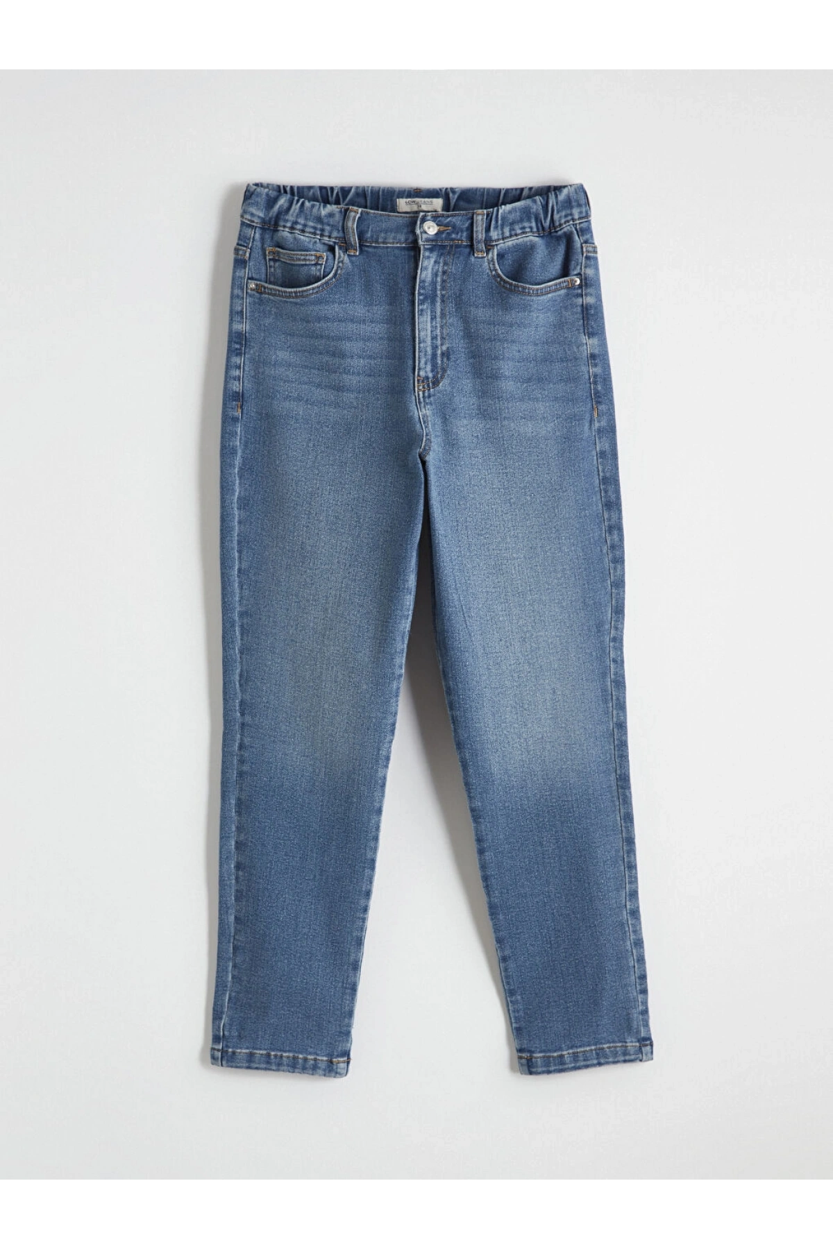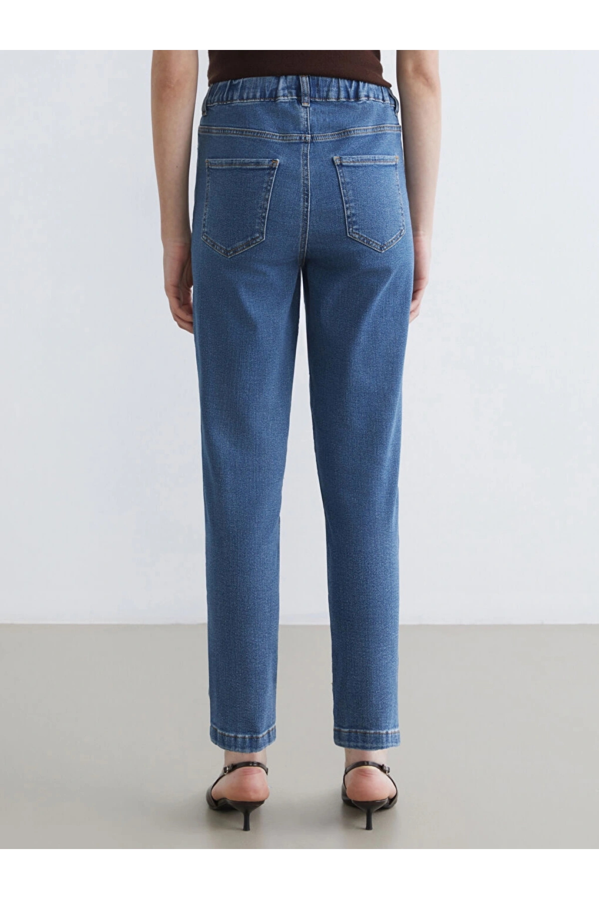 LCWAIKIKI Classic Indigo Beli Lastikli Slim Mom Kadın Jean Pantolon