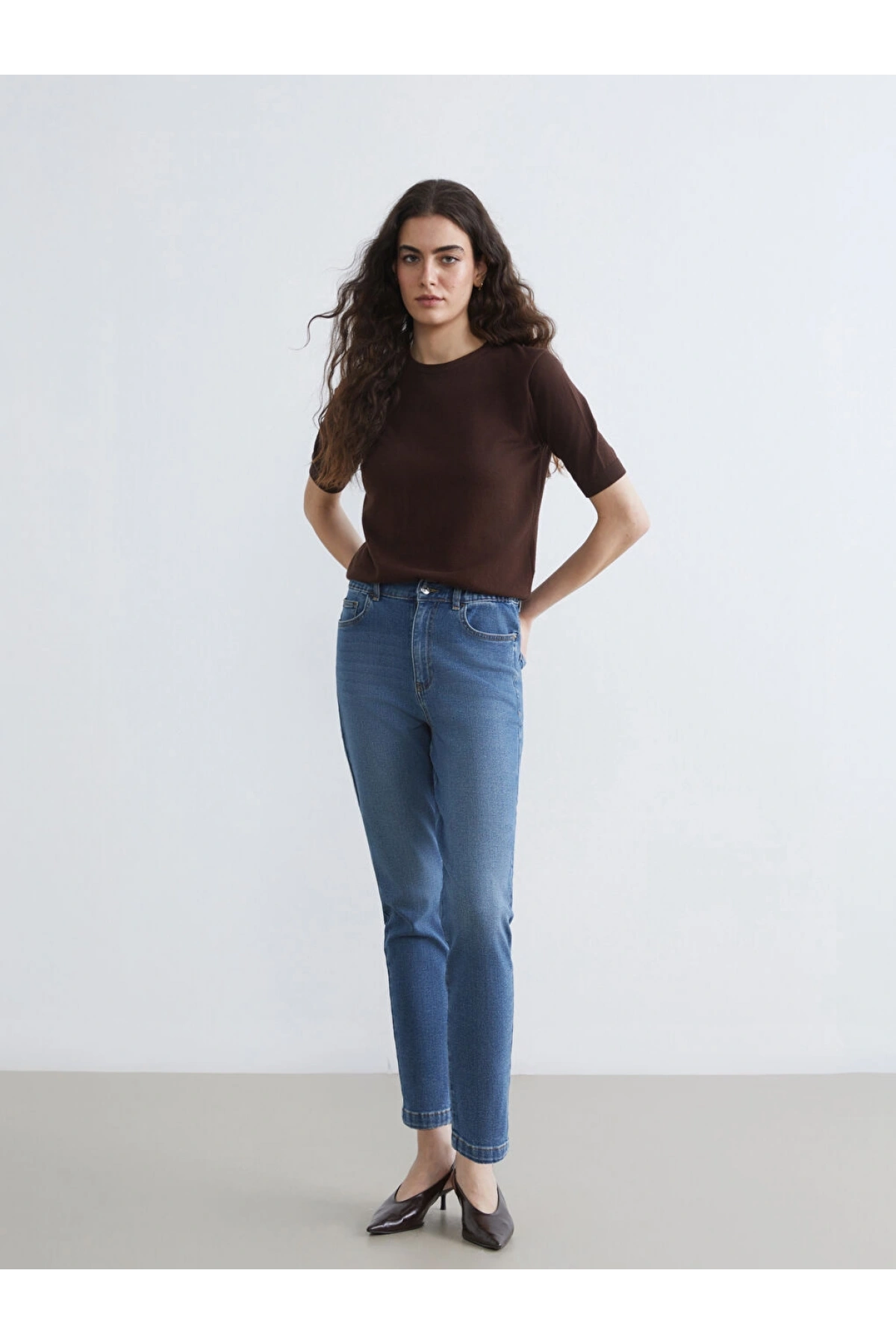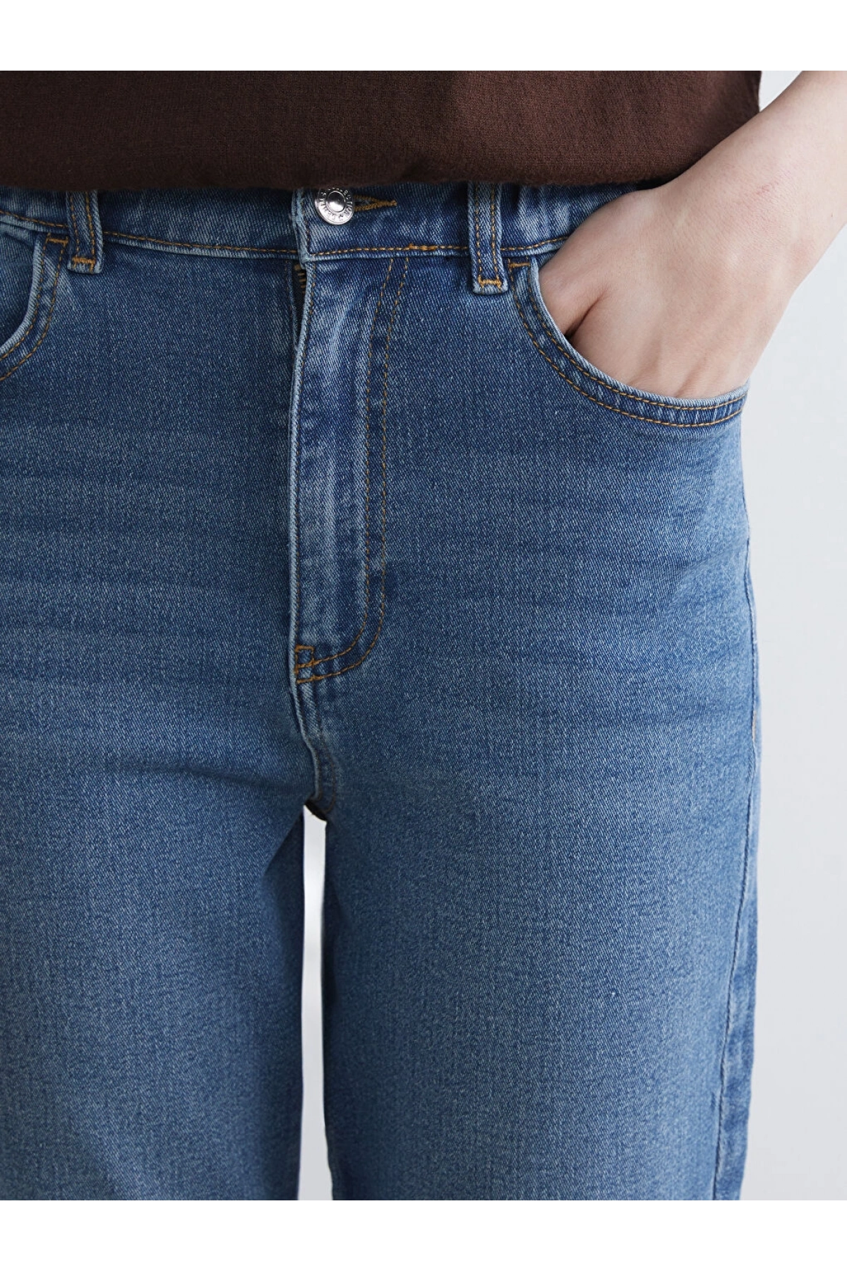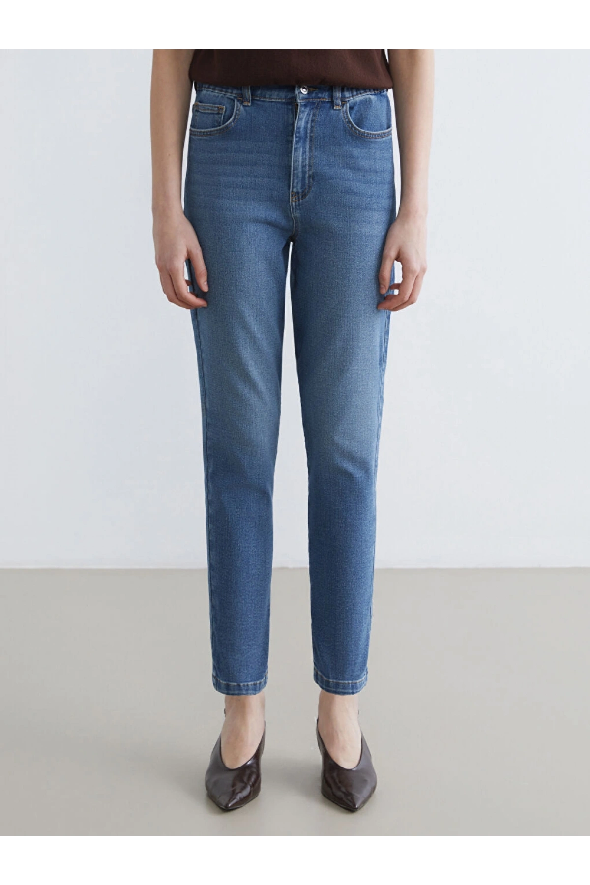 LCWAIKIKI Classic Indigo Beli Lastikli Slim Mom Kadın Jean Pantolon