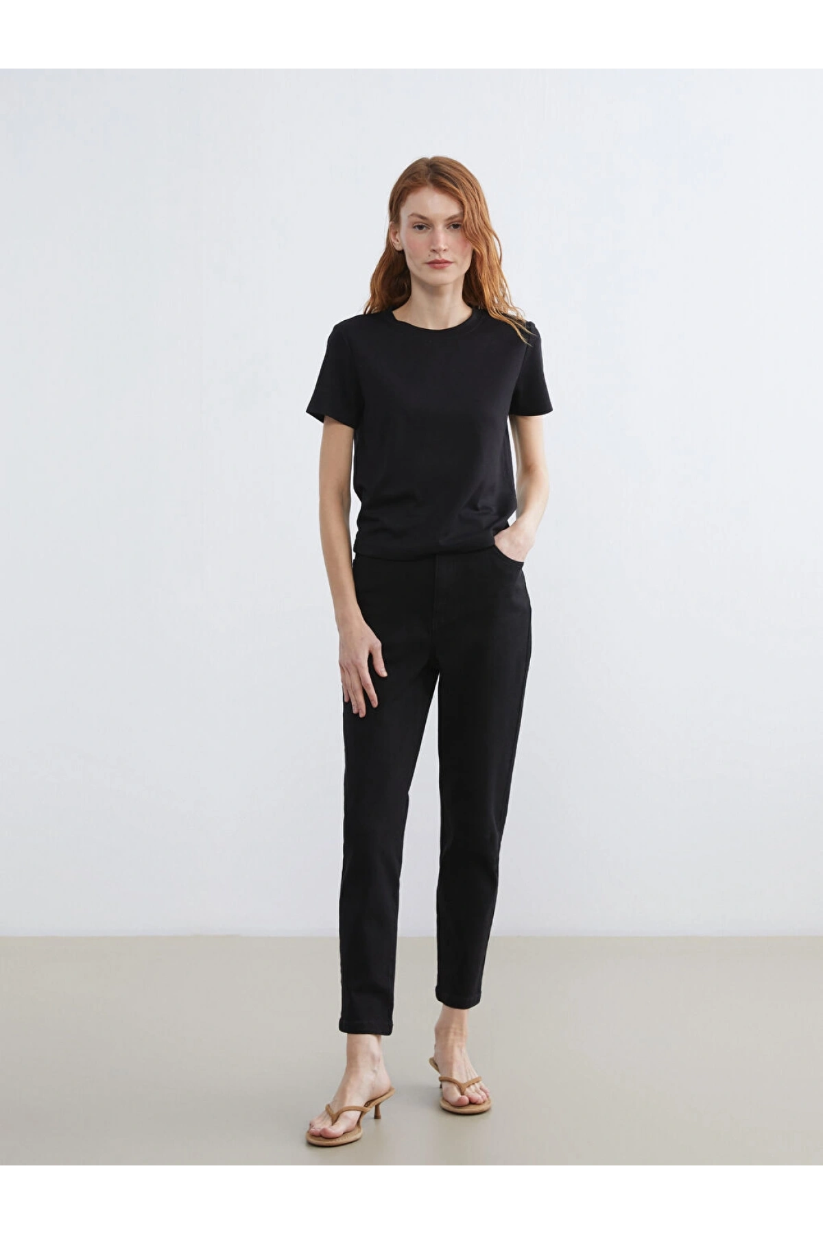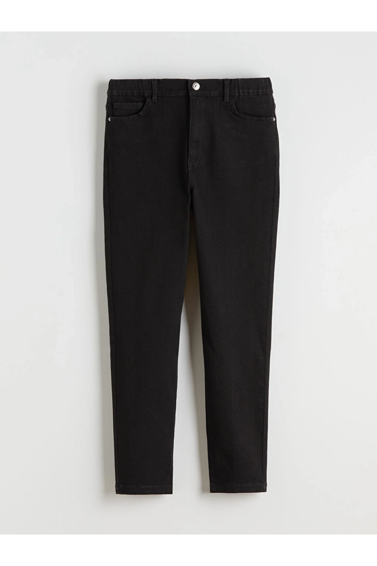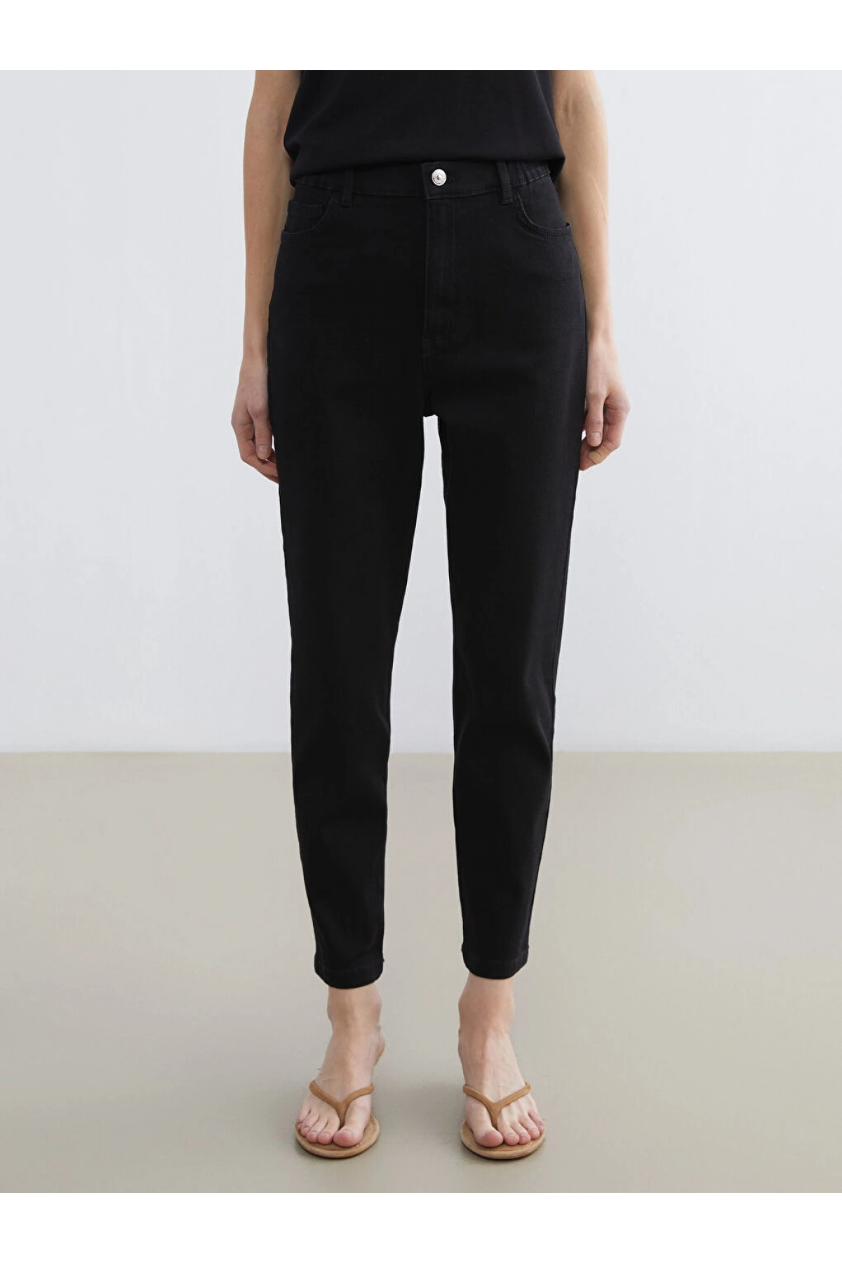 LCWAIKIKI Classic Siyah Beli Lastikli Slim Mom Kadın Jean Pantolon