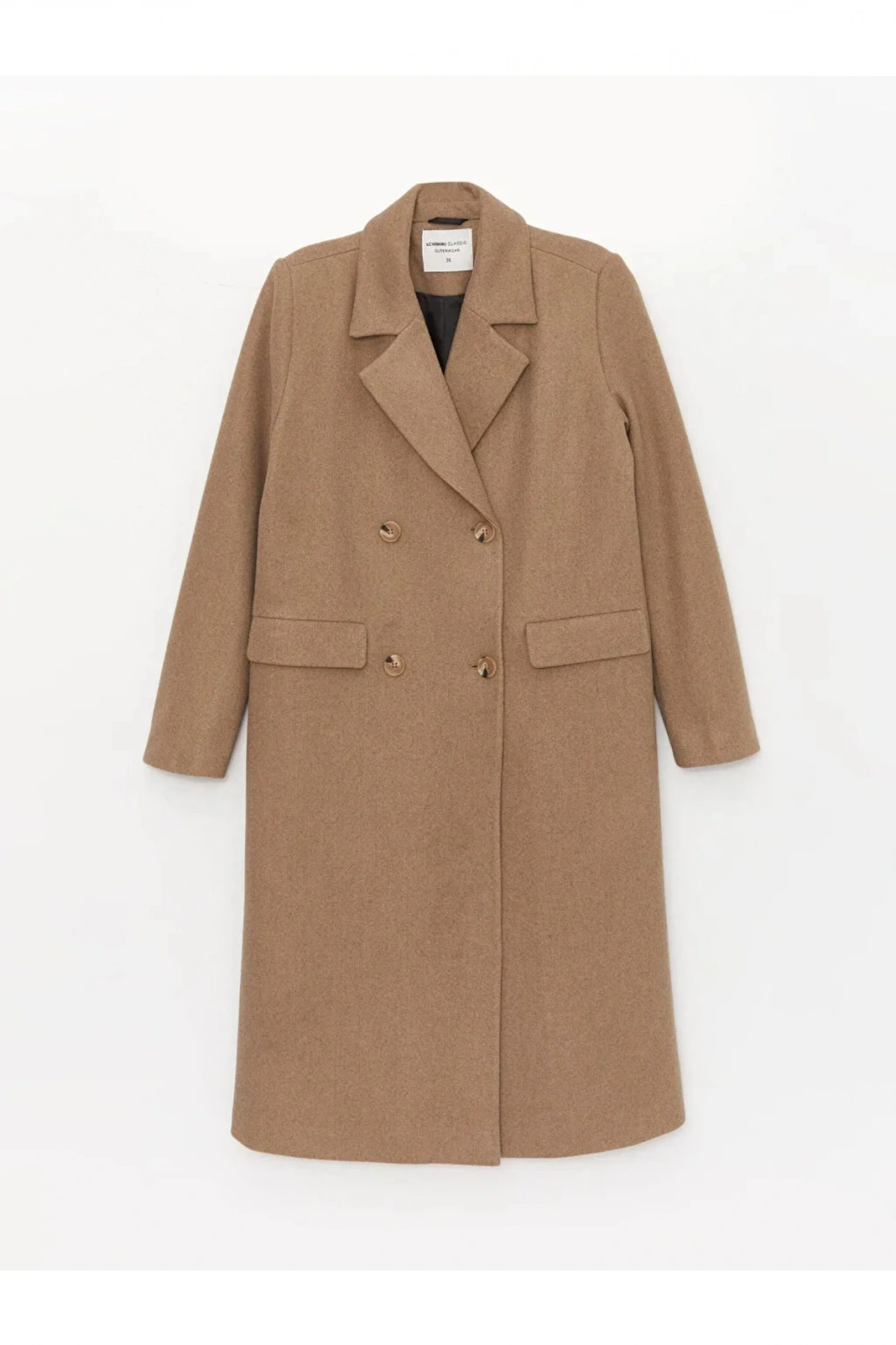 LCWAIKIKI Classic Kadın Kruvaze Yaka Düz Kaşe Kaban
