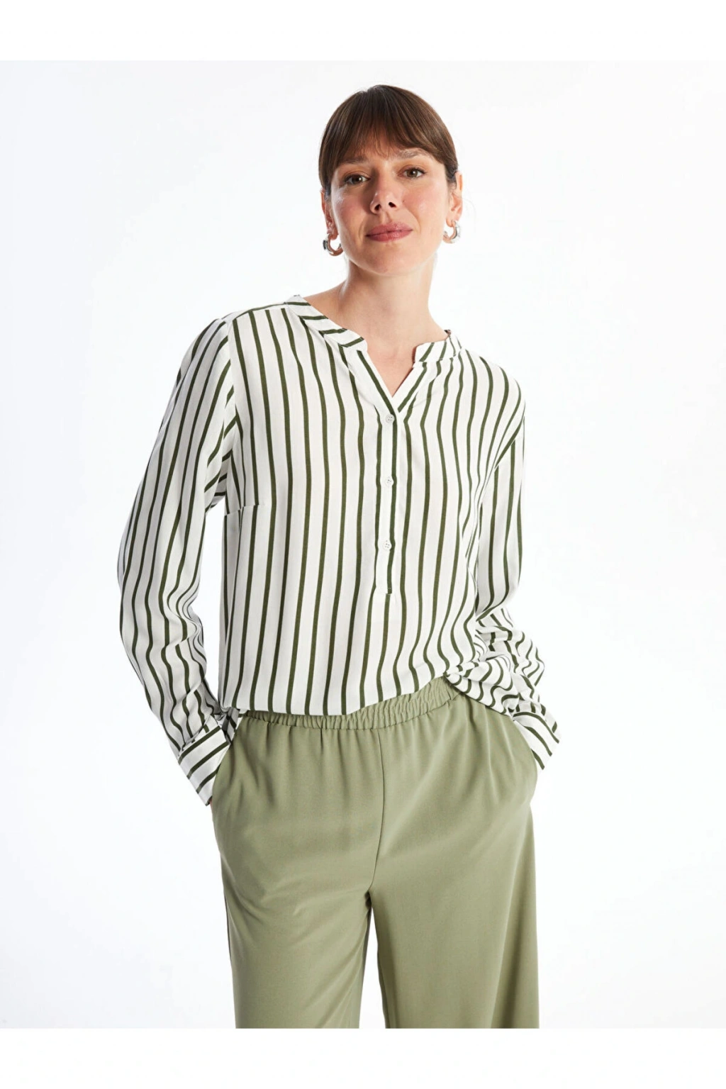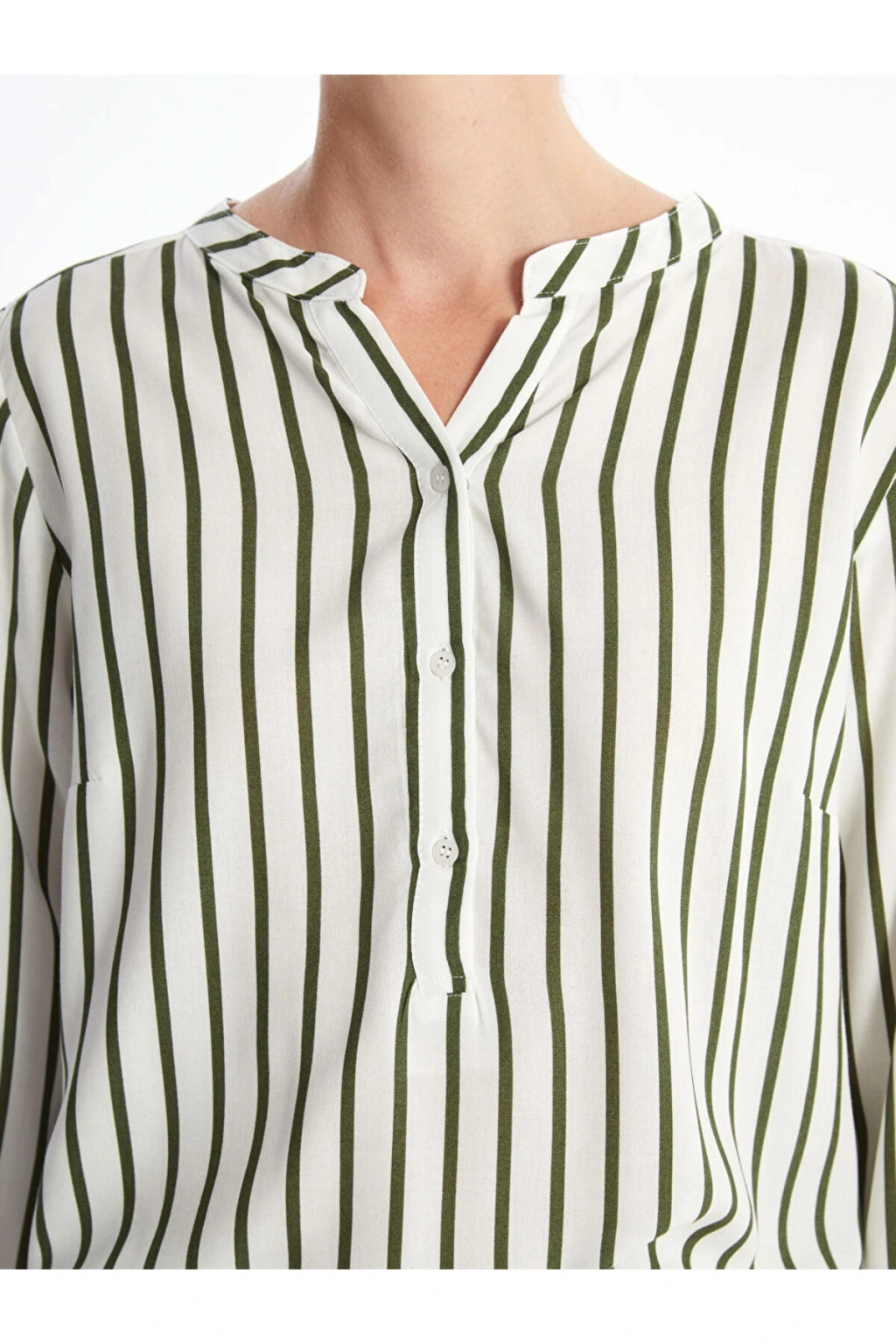 Ürün Açıklaması: Çizgili kadın bluz, viskoz kumaştan üretilmiştir.; Bu sayede yumuşak bir dokunuş ve akıcı bir kullanım sunar.; Kaçık yaka ve uzun kollu tasarımı ile hem şıklığınızı hem de konforunuzu bir arada sunar.; Manken Bilgisi: Göğüs: 75 cm Bel: 62 cm Basen: 89 cm Boy: 178 cm Manken 38 beden ürün giyiyor.; Ürün İçeriği ve Özellikleri: Ürün İçeriği: Ana Kumaş: %100 VİSKOZ Ürün Özellikleri: Marka: LCWAIKIKI Classic Ürün Tip: Bluz Cinsiyet: Kadın Desen: Çizgili Kalıp: Loose & Bol Kol Boyu: Uzun Kollu Yaka: Kaçık Yaka