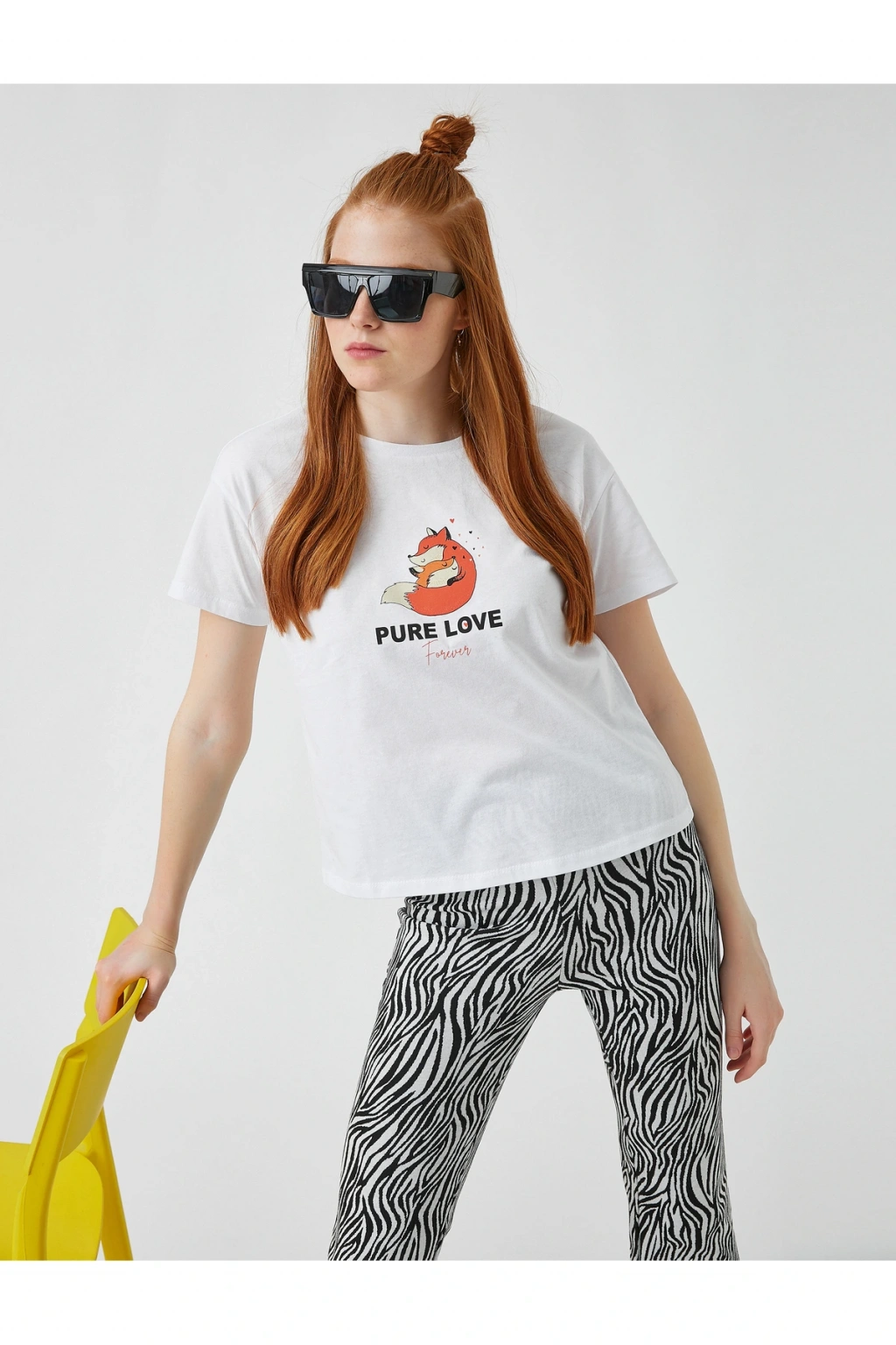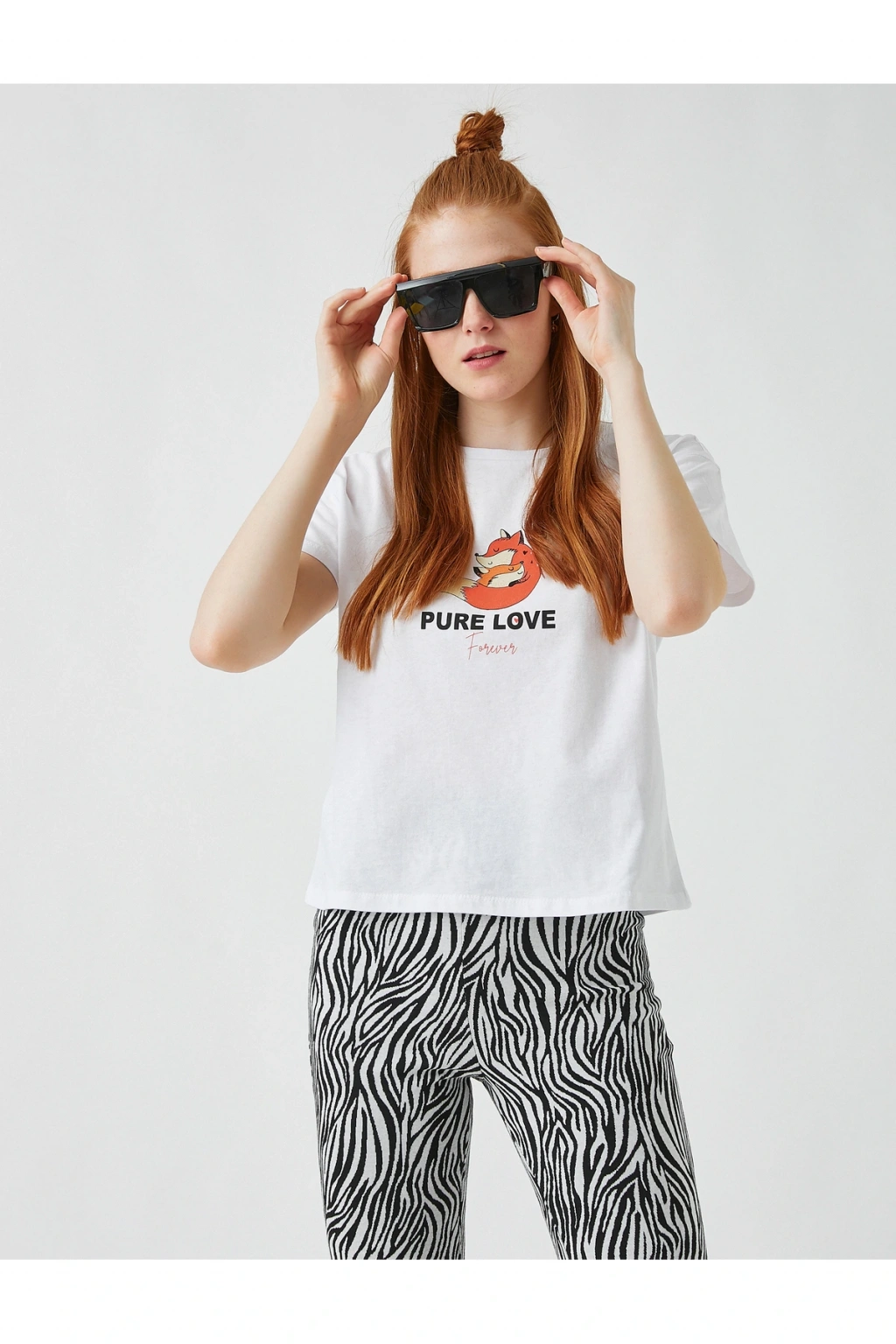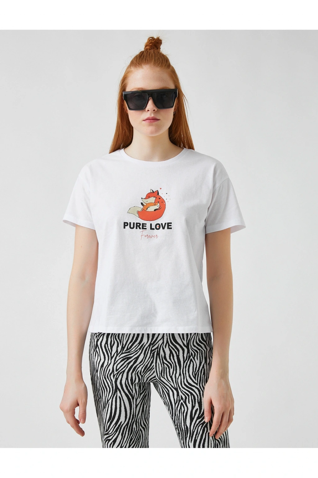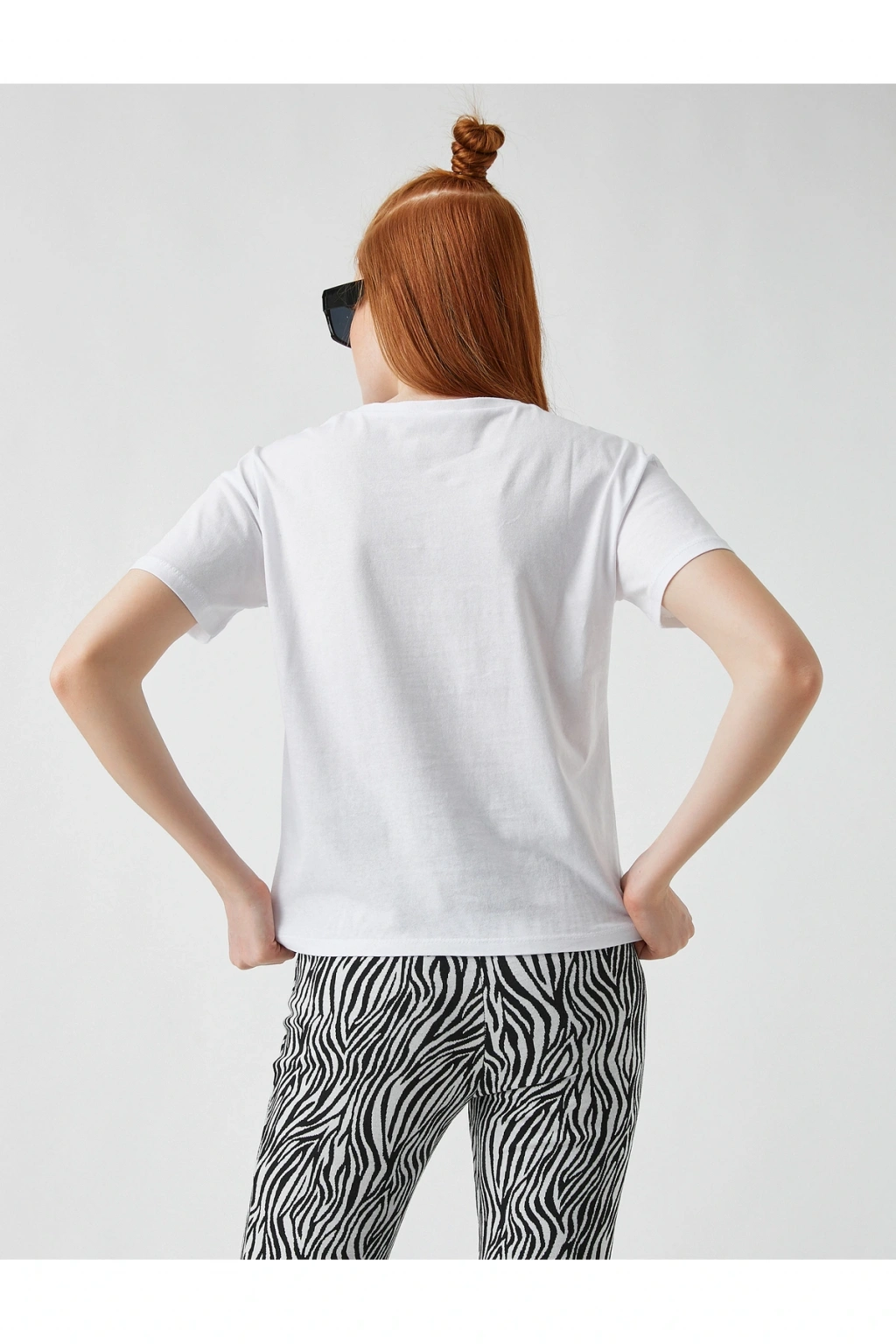 Baskılı Kısa Kollu Pamuklu Tişört | Model Boy: 175 | Model Kalça: 85 | Model Üst: 63 | Model Bel: S | Model Göğüs: 83 | Model Jean: 27/32