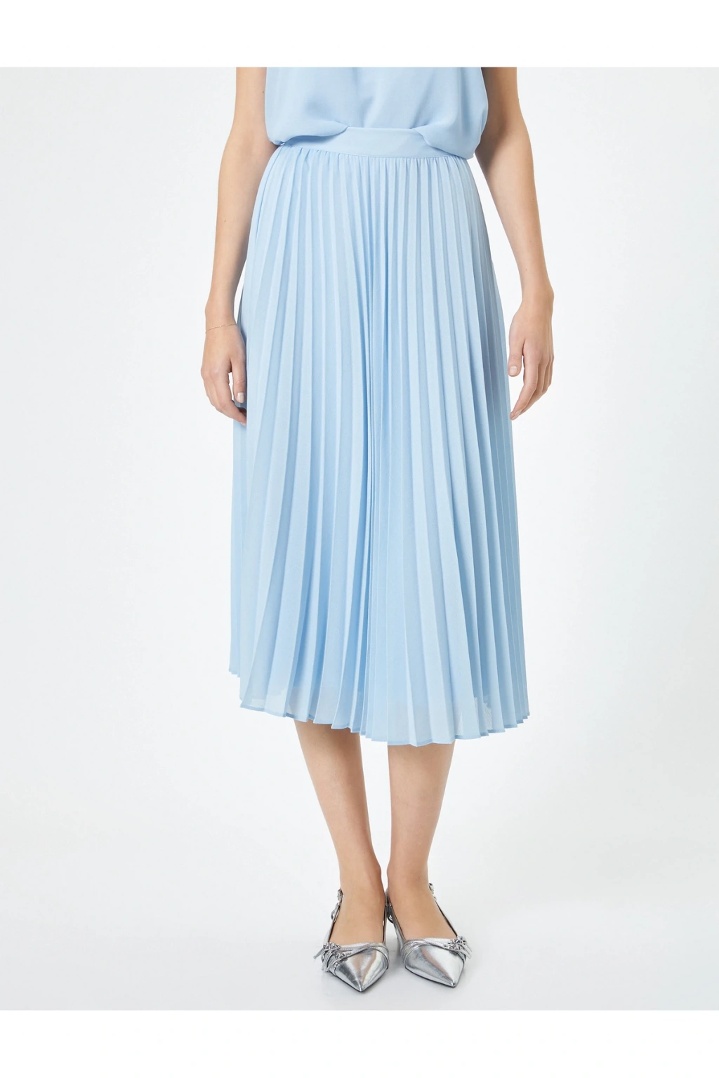 Etek modellerinin enerjisini ve rahatlıklarını seviyorsanız normal bel, pileli, midi etek tam size göre! | Model Boy: 177 | Model Kalça: 92 | Model Üst: 61 | Model Bel: S | Model Göğüs: 76 | Model Jean: 27/32