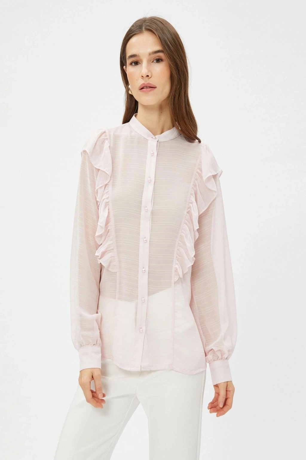 Uzun kollu tasarımı ile rahat bir kullanım sunan kadın gömlek, günlük giyimde şıklığı ve konforu bir arada arayanlar için idealdir.; Düz deseniyle zamansız bir tarz sunan bu gömlek, her türlü kombinle kolayca uyum sağlar ve gardrobunuzdaki temel parçalardan biri haline gelir.; Type 1 yıkama talimatına uygun şekilde temizlenmesi pratiklik kazandırırken, dokuma kumaşı dayanıklılığı artırarak uzun süreli kullanım vaat eder.; Standart kol tipiyle günlük hareket özgürlüğünüzü sınırlamaz; rahatlığı ve şıklığı ön planda tutar.; Basic silueti sayesinde her vücut tipine uyum sağlayacak şekilde tasarlanmıştır; ne çok dar ne de çok bol, tam da olması gerektiği gibi oturur.; Düz ürün tipiyle sadelikten yana olanların tercihi olacak şekilde üretilmiştir; minimalist detaylarla dikkat çekerken zamansız bir tarz sergiler.; Regular boy kesimiyle hem spor hem de resmi ortamlarda rahatlıkla tercih edilebilir; sportswear olarak da kullanılabilir.; Bisiklet yakası sayesinde modern ve dinamik bir görünüm kazandırırken, fırfır detaylarıyla feminen dokunuşları ön plana çıkarır.; Regular kalıbıyla vücuda tam oturan ancak sıkmayan yapıda olmasıyla konforlu bir kullanım sağlar. Tüm yaş gruplarına hitap eden geniş kullanıcı yelpazesiyle herkesin beğenisine uygunluk gösterir.; %99 polyester içeriği sayesinde esnekliği artırırken, %1 metalize iplik ekstra parlaklık katarken dayanıklılık açısından da destek verir.;