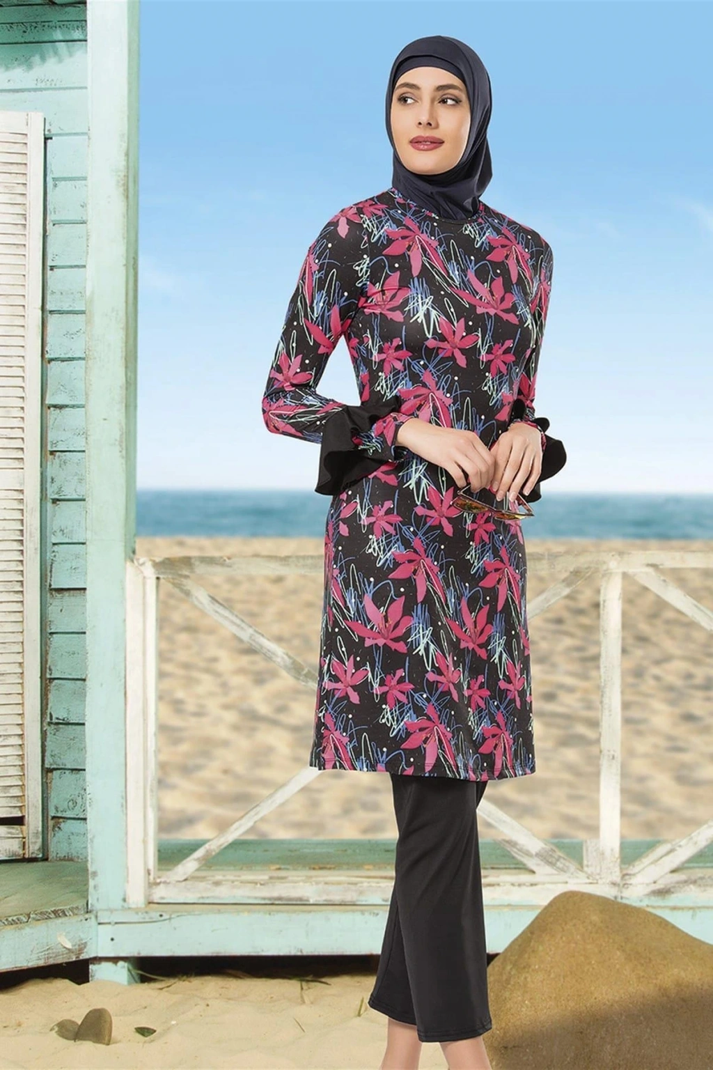 Tesettür giyim koleksiyonuna özel tasarlanmış, şık ve modern bir görünüm sunar; Uzun kollu tasarımı ile güneşin zararlı ışınlarına karşı tam koruma sağlar ve rahat hareket etme olanağı tanır; Dokuma kumaş yapısı sayesinde suyun içinde ve dışında konforlu bir deneyim sunar; Her yaş grubuna hitap eden geniş beden skalasıyla herkes için uygun bir seçenek oluşturur;
