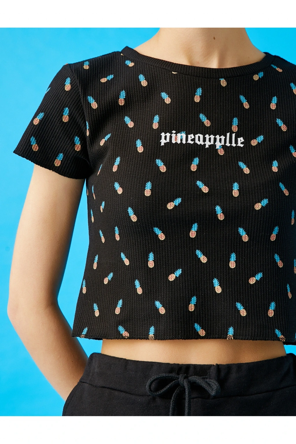 Ole by Koton - Genç Kız Koleksiyonu | Kısa Kollu, Pamuklu, Yazılı Baskılı Tişört | Model Boy: 173 | Model Kalça: 88 | Model Üst: 58 | Model Bel: S | Model Göğüs: 77 | Model Jean: 27/32