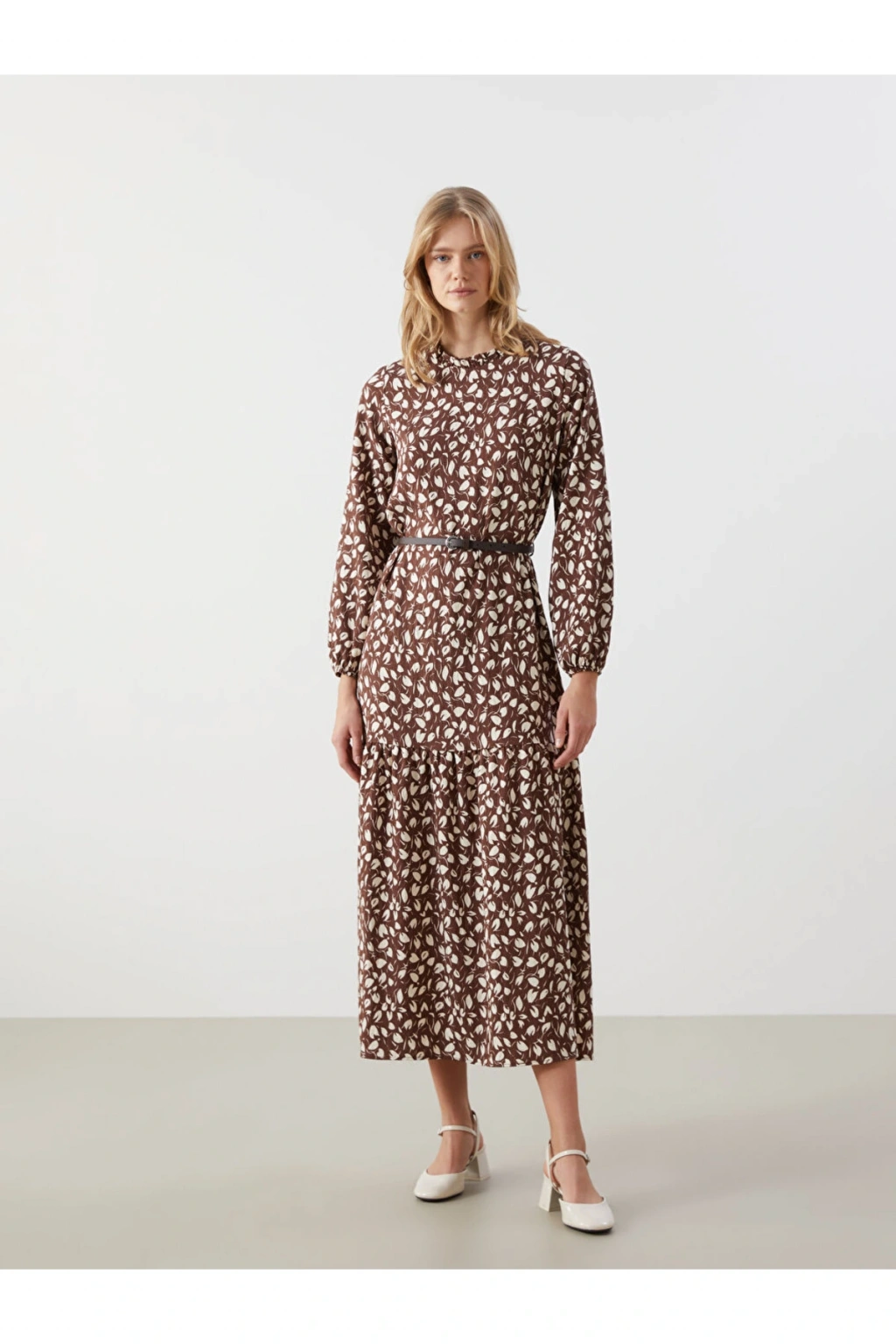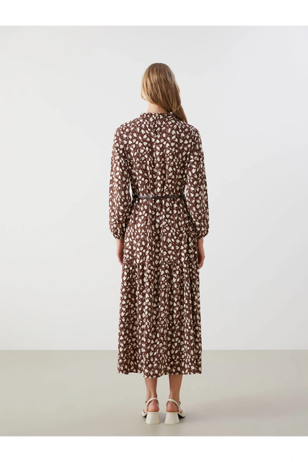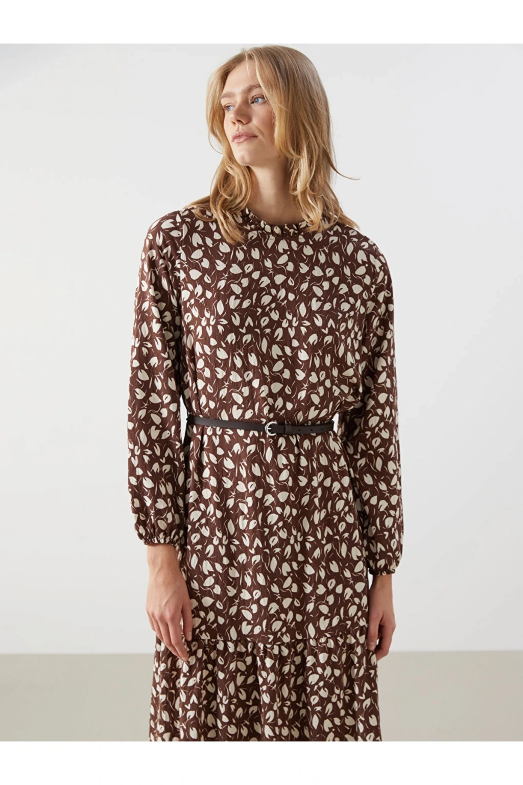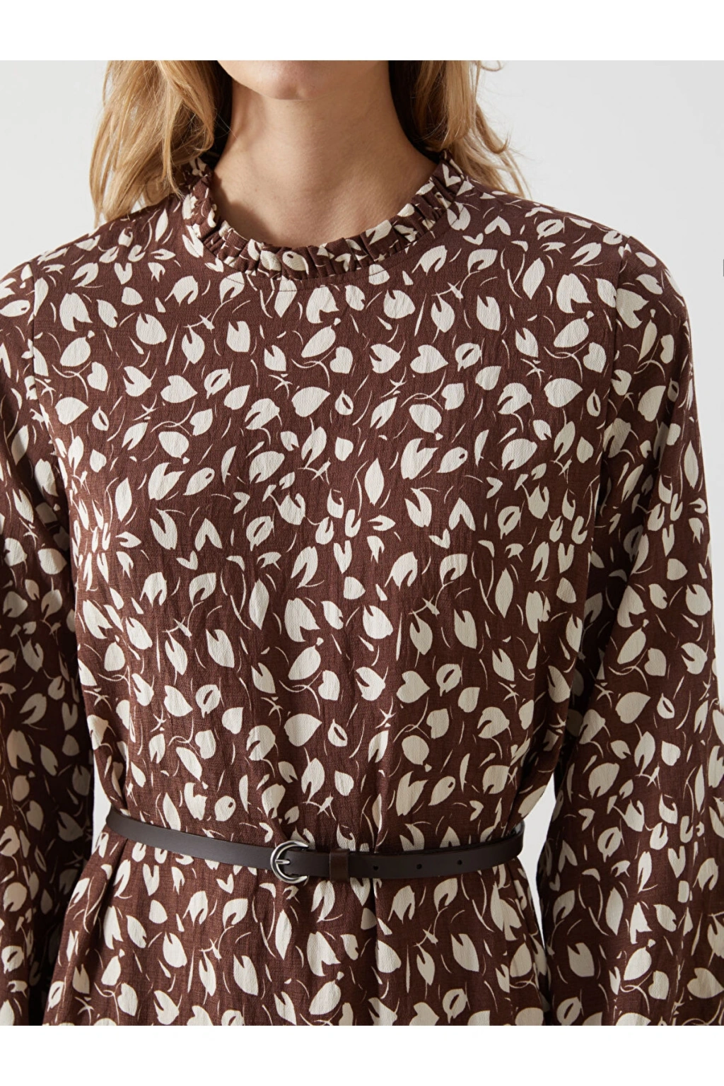 - Dik yaka uzun kollu elbise, bel kısmındaki kemer detayı sayesinde zarif bir tasarıma sahiptir. yakası ve bileklerindeki fırfır detayları, elbiseye şıklık katar. Hem şık etkinliklerde hem de günlük hayatta tarzınızı konuşturabilirsiniz.