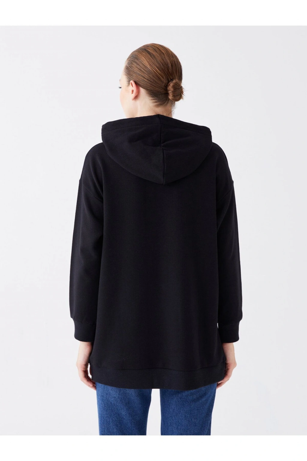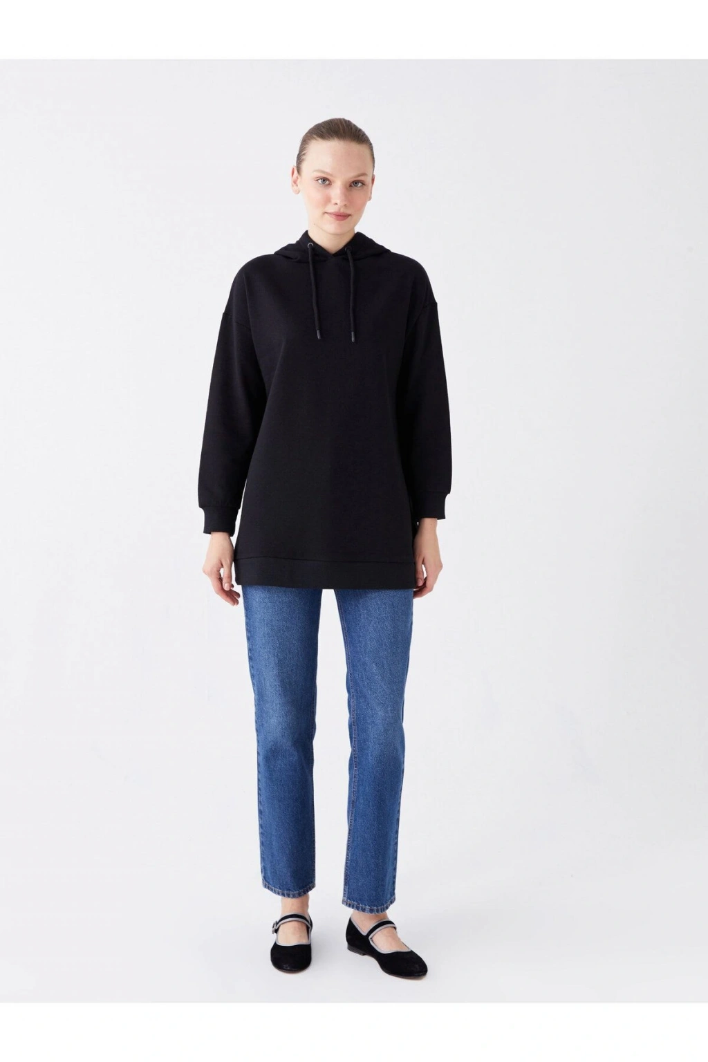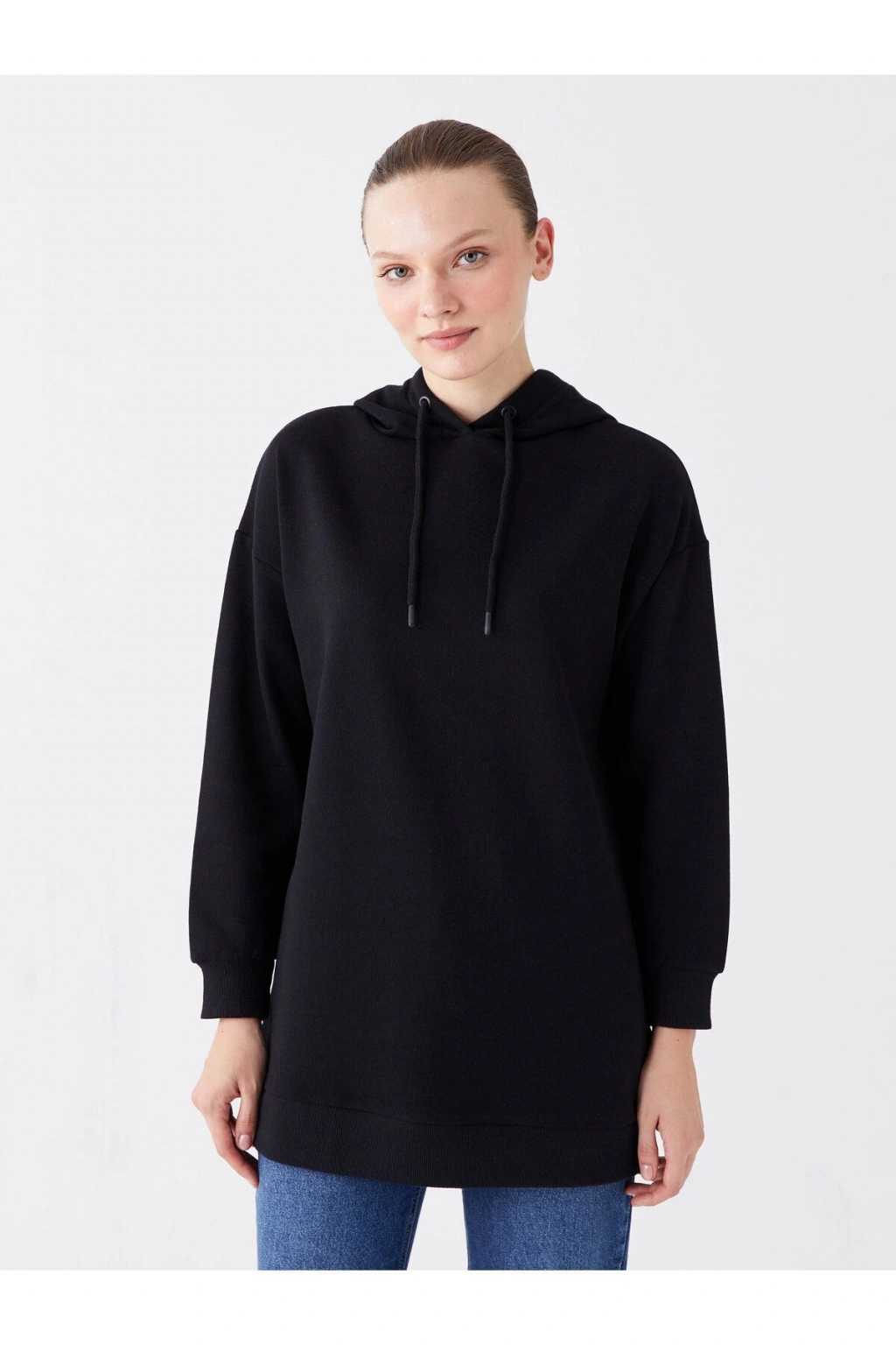 Kapüşonlu Düz Uzun Kollu Kadın Sweatshirt Tunik