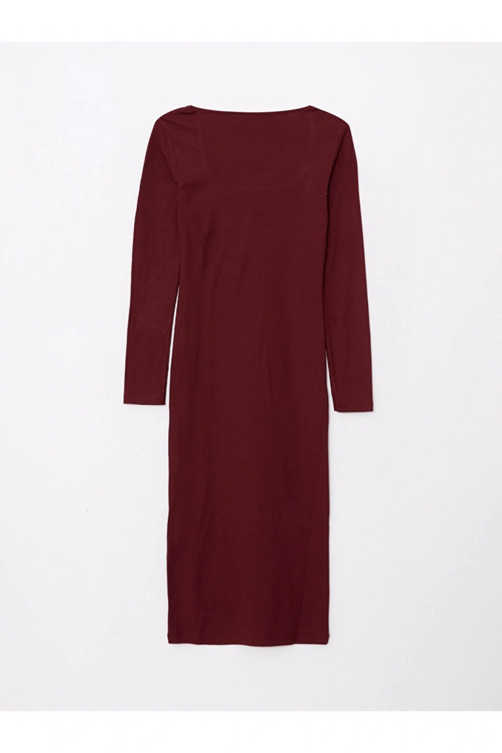 Kare Yaka Düz Uzun Kollu Kadın Bodycon Elbise