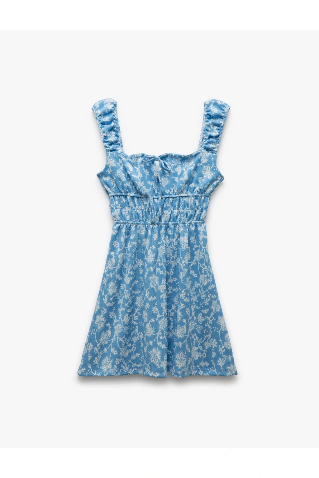 Square neck thick strappy back and tie detail floral mini dress.; | Model Boy: 172 | Model Kalça: 87 | Model Üst: 58 | Model Bel: S | Model Göğüs: 83 | Model Jean: 27/32