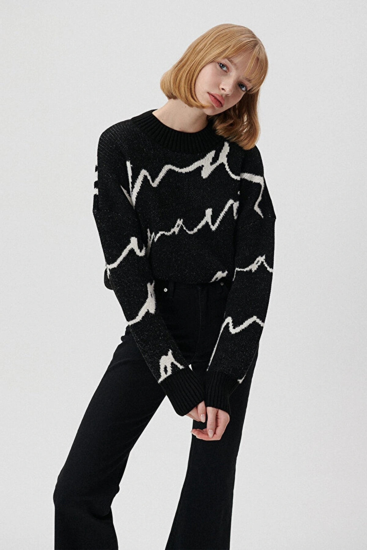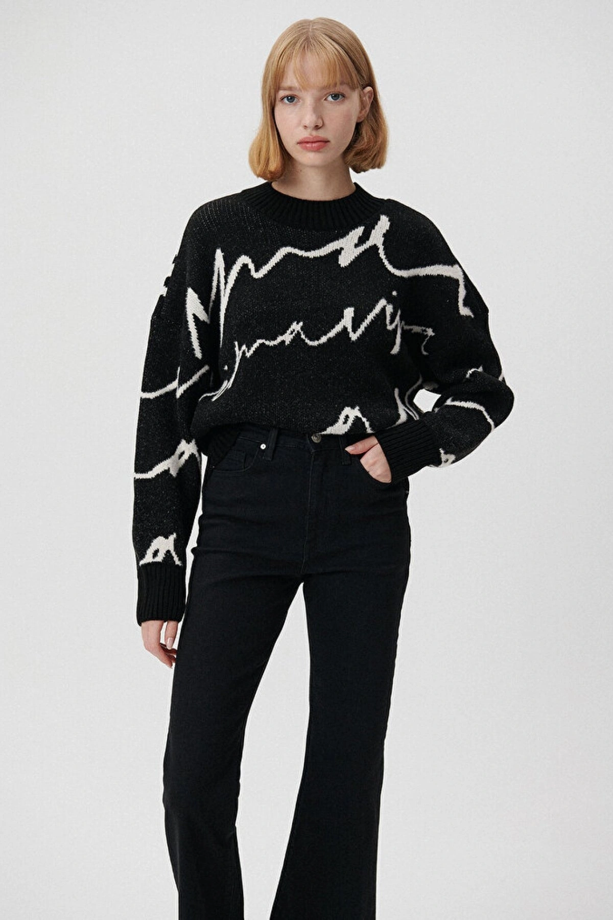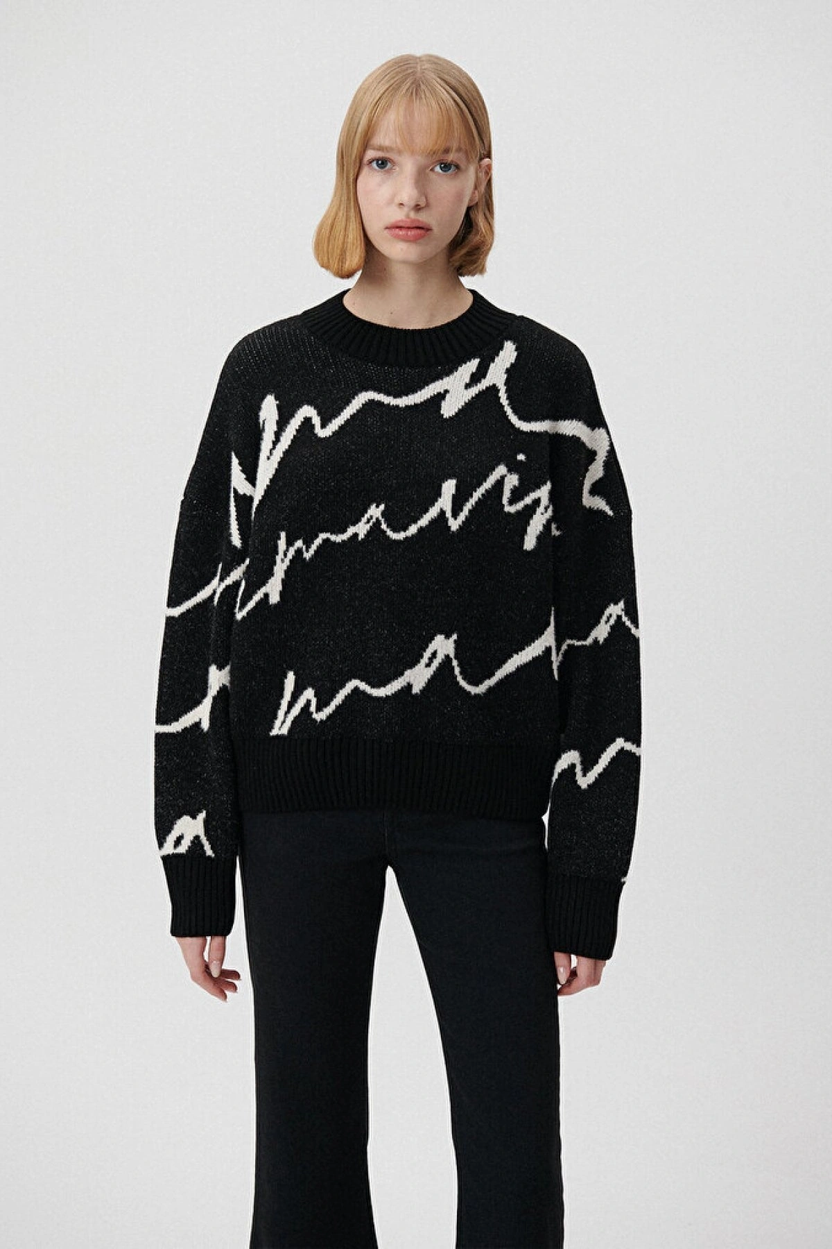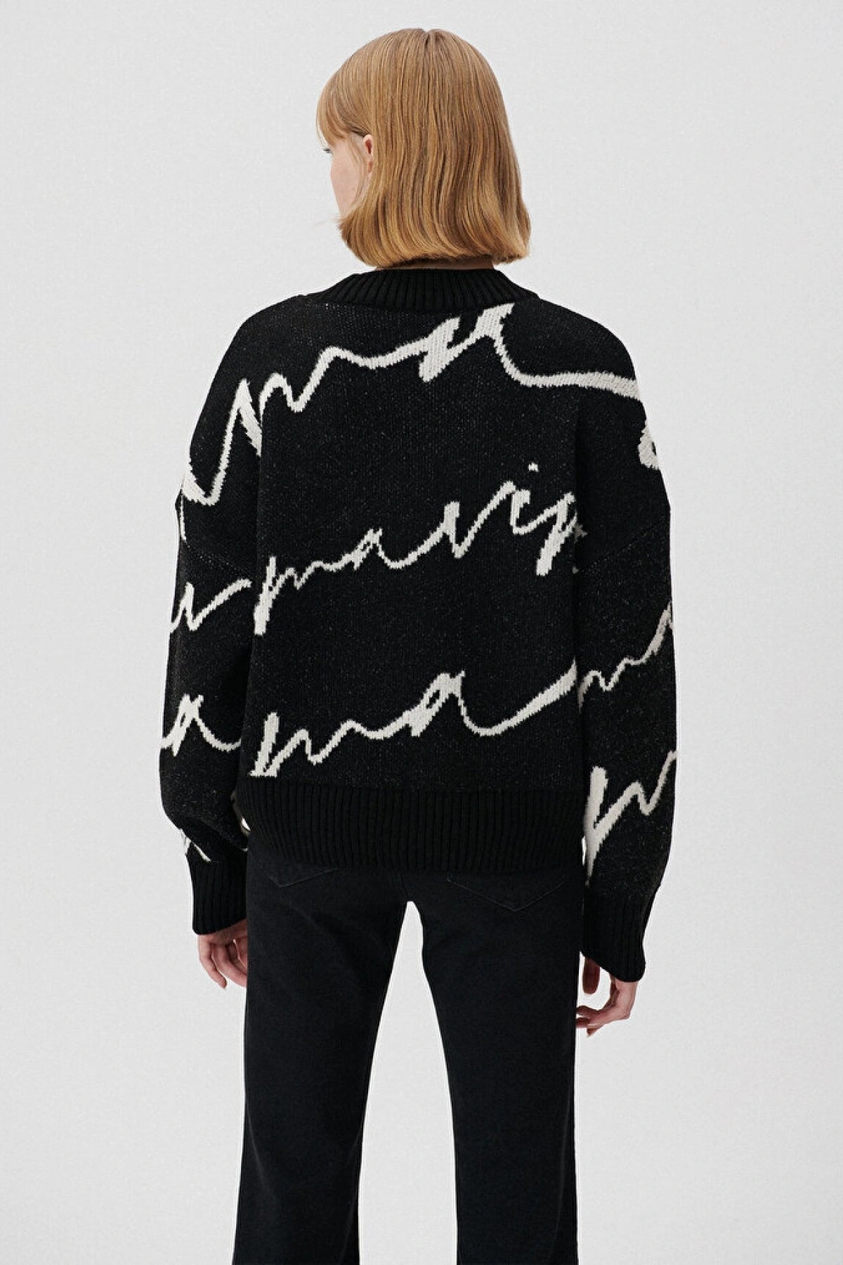 MAVİ Bisiklet Yaka Desenli Kazak Siyah