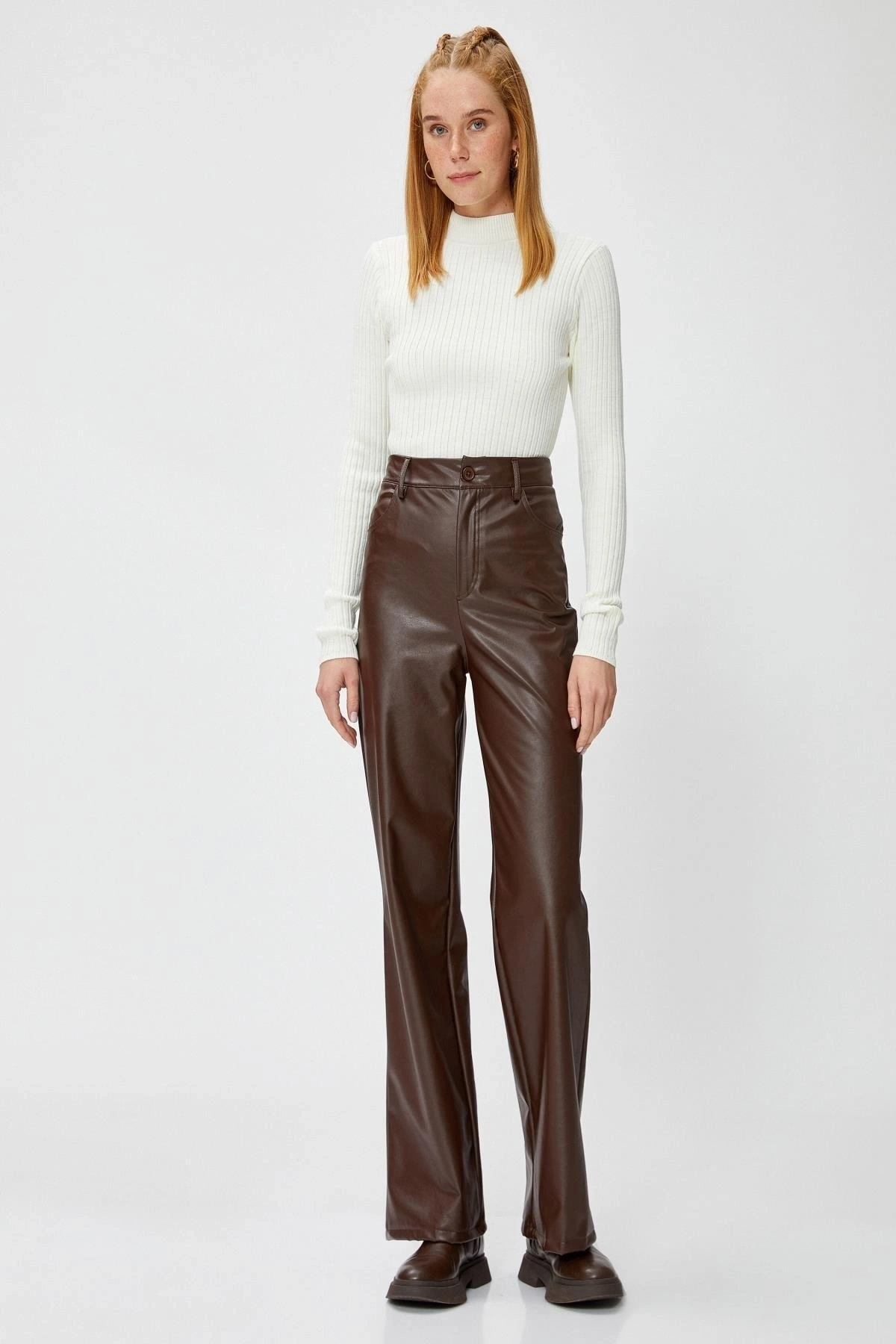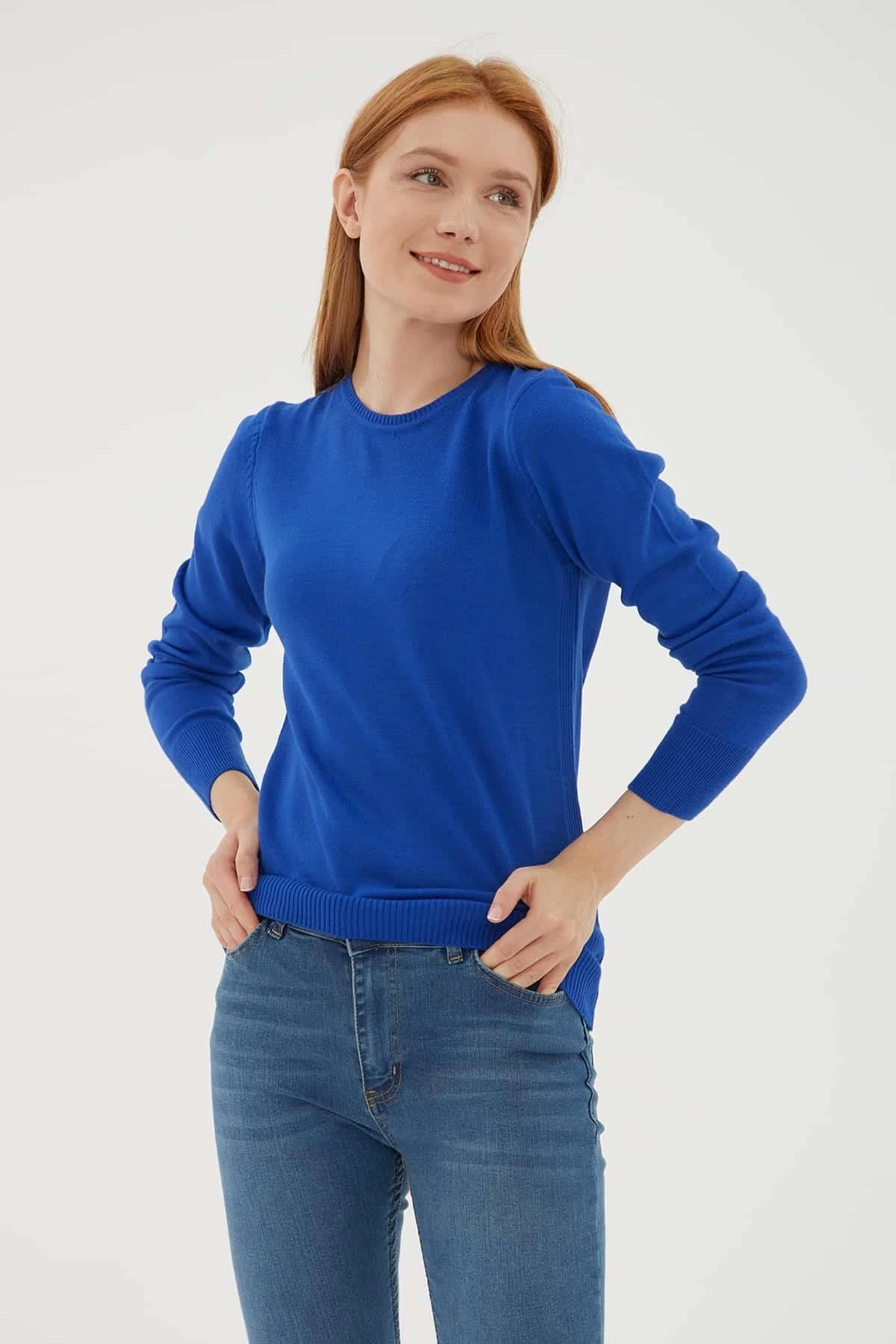 Bisiklet Yaka Düz Uzun Kollu Kadın Triko Kazak