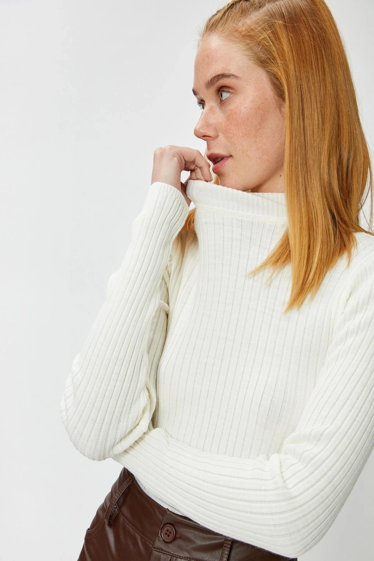 LCWAIKIKI Classic Ekru Bisiklet Yaka Kadın Triko Kazak