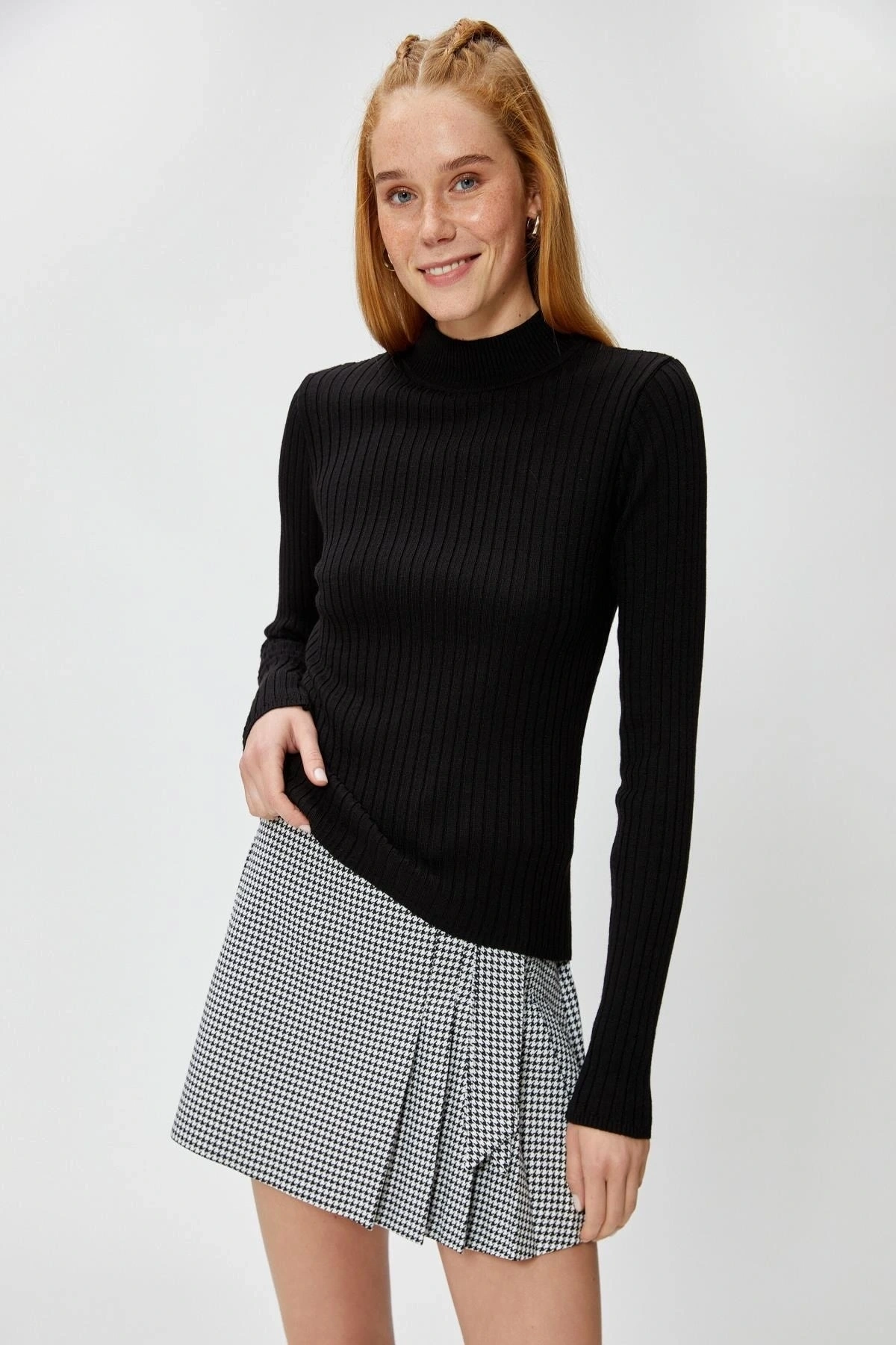 Yarım Balıkçı Yaka Kazak Triko Dar Kesim Kaşmir Dokulu