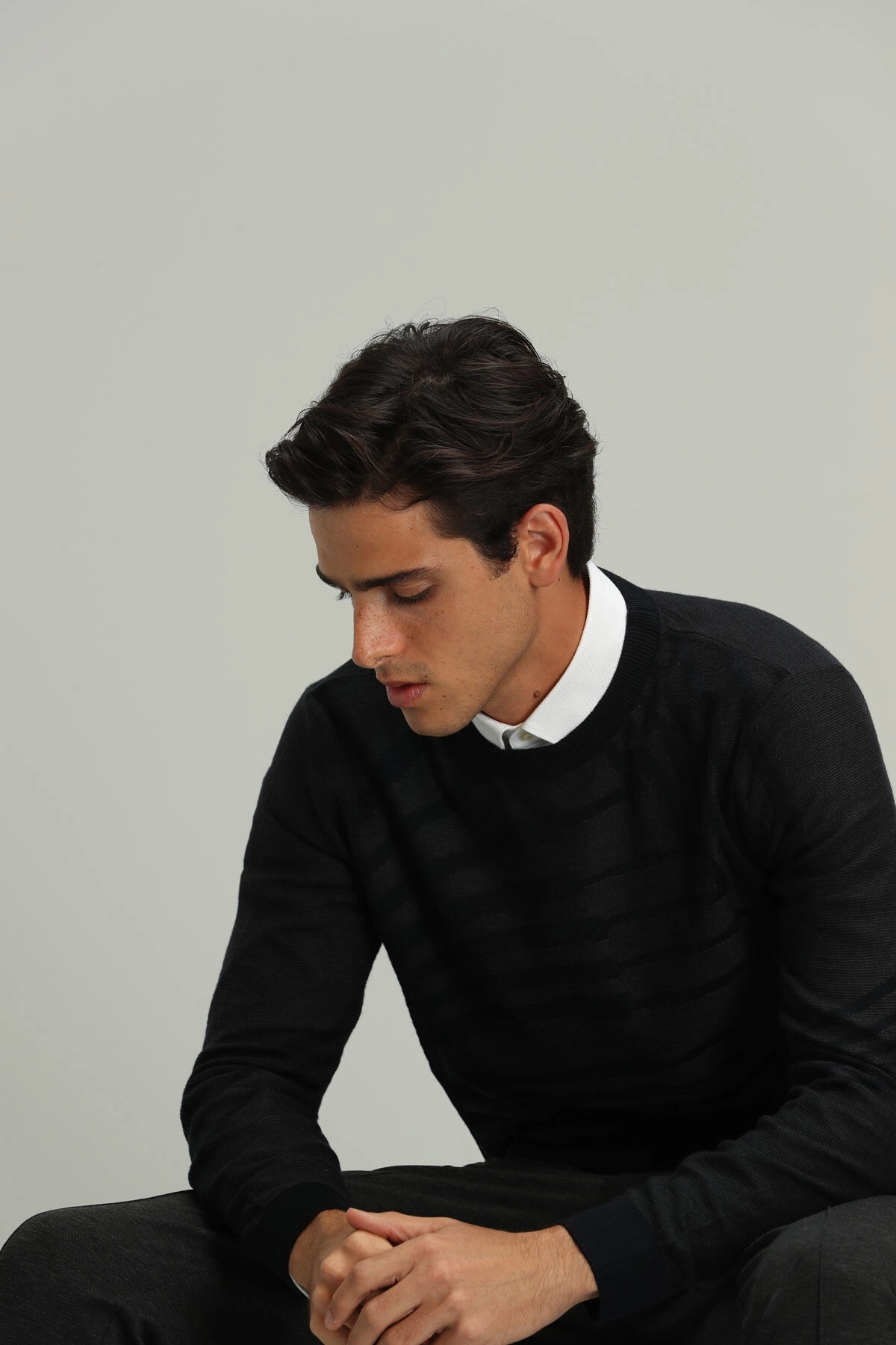 Mavi Kaşmir Karışımlı Antrasit Kazak Slim Fit / Dar Kesim
