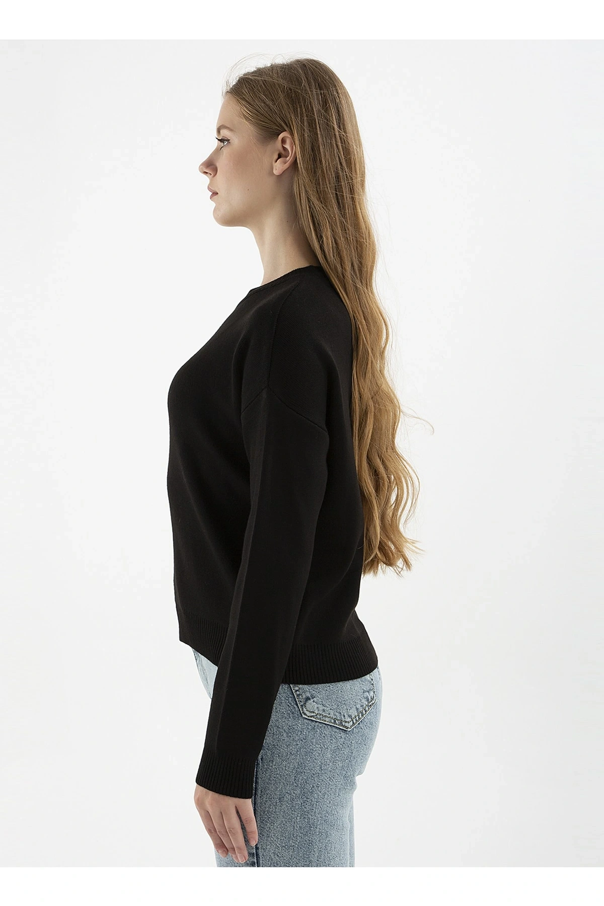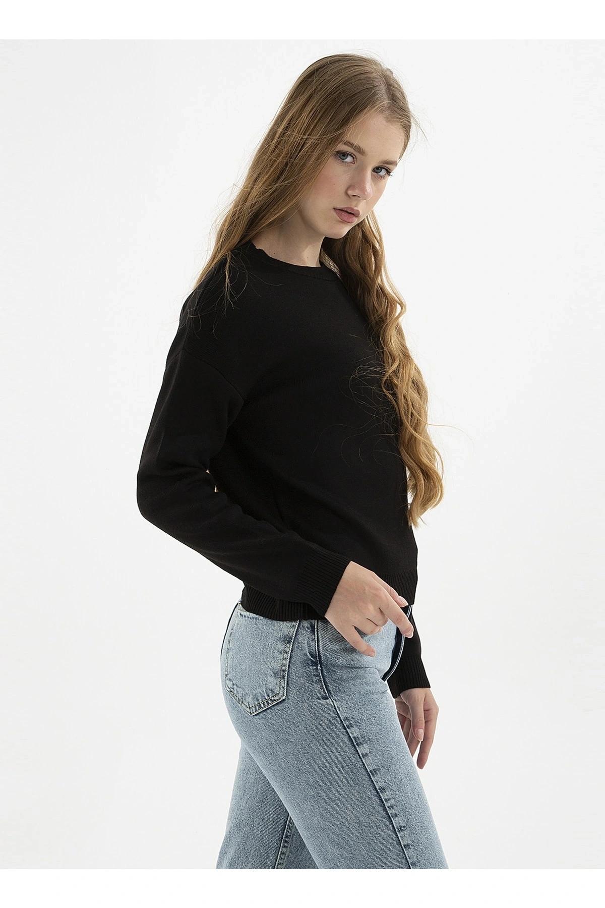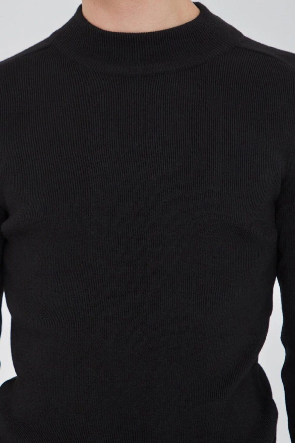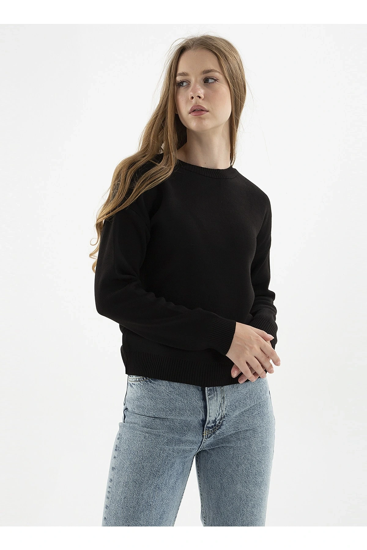 Bisiklet Yaka Düz Siyah Kadın Kazak 22k0166k1