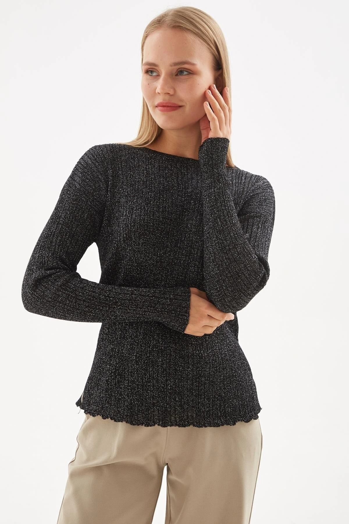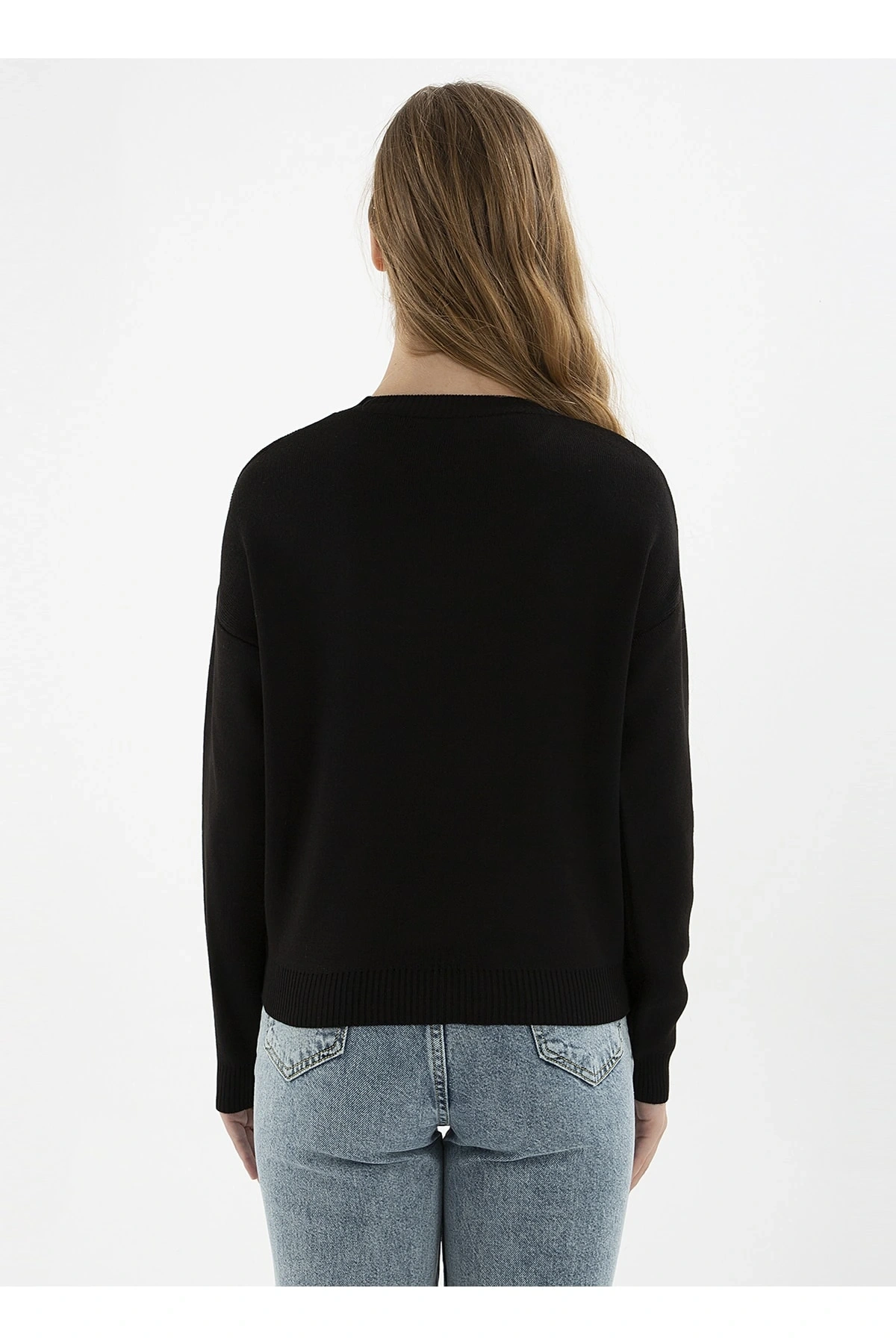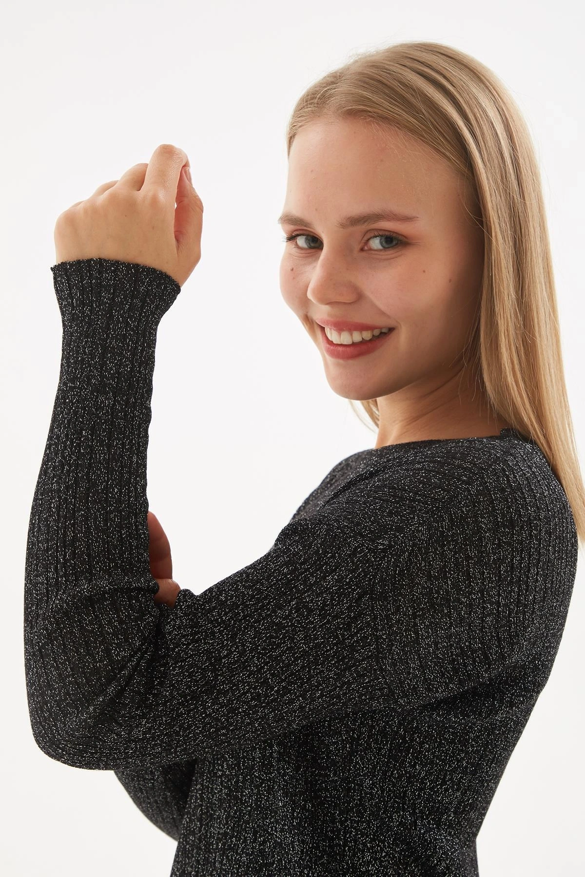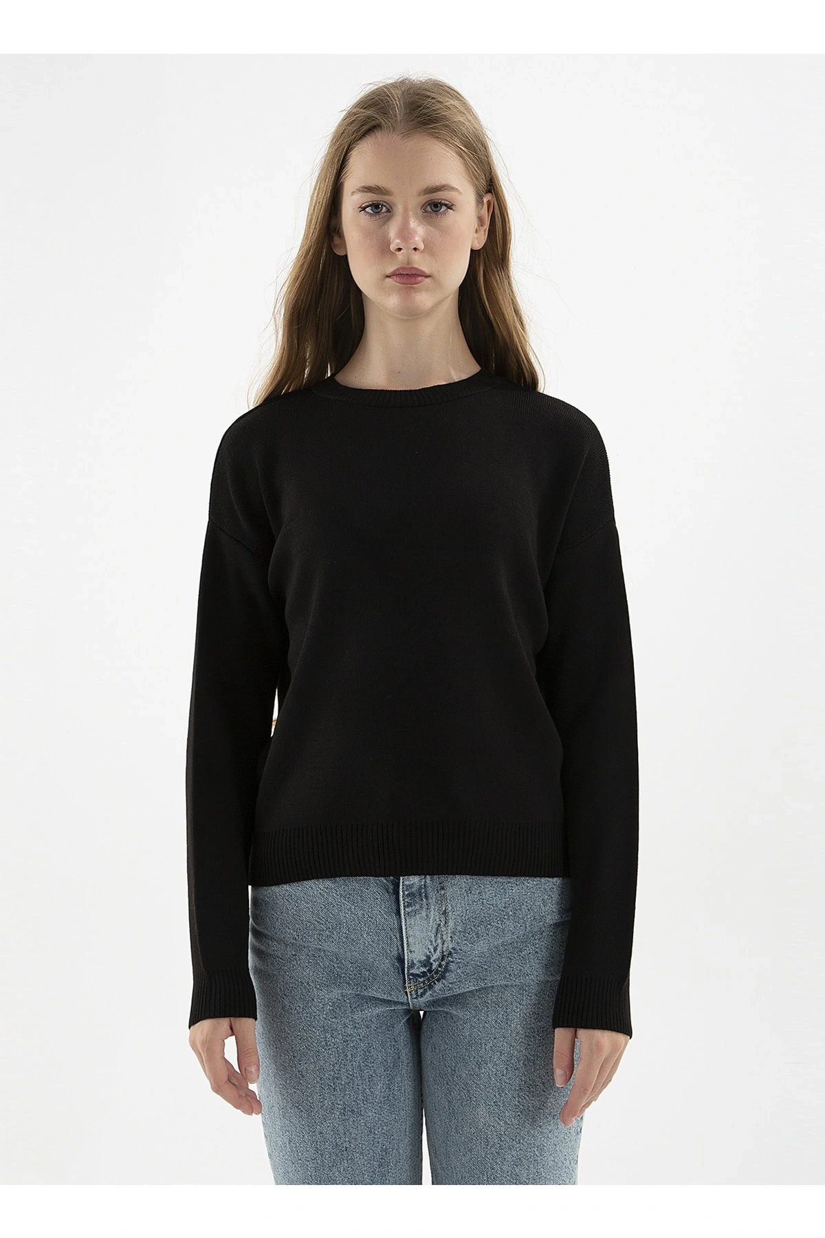 Bisiklet Yaka Düz Siyah Kadın Kazak 22k0166k1