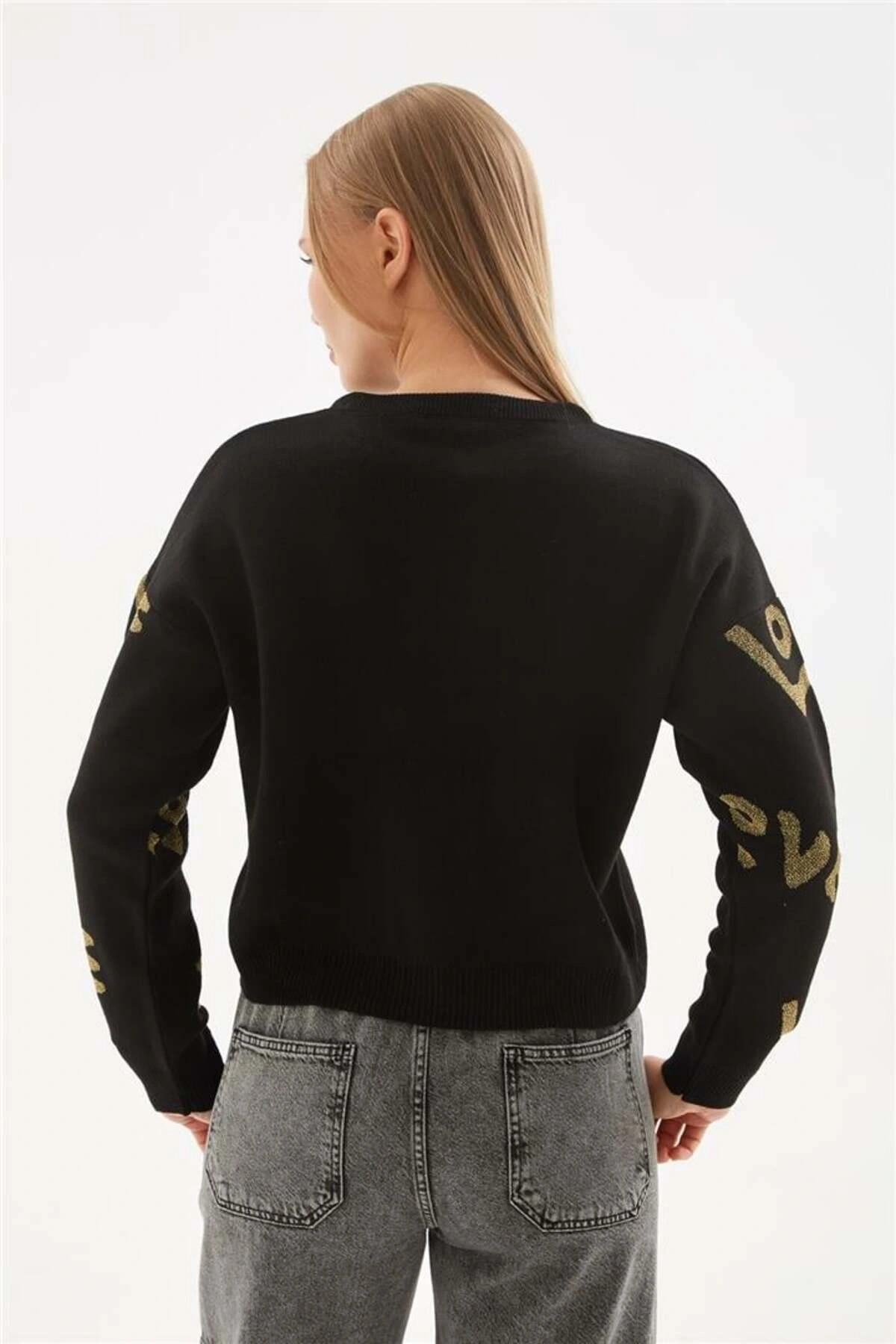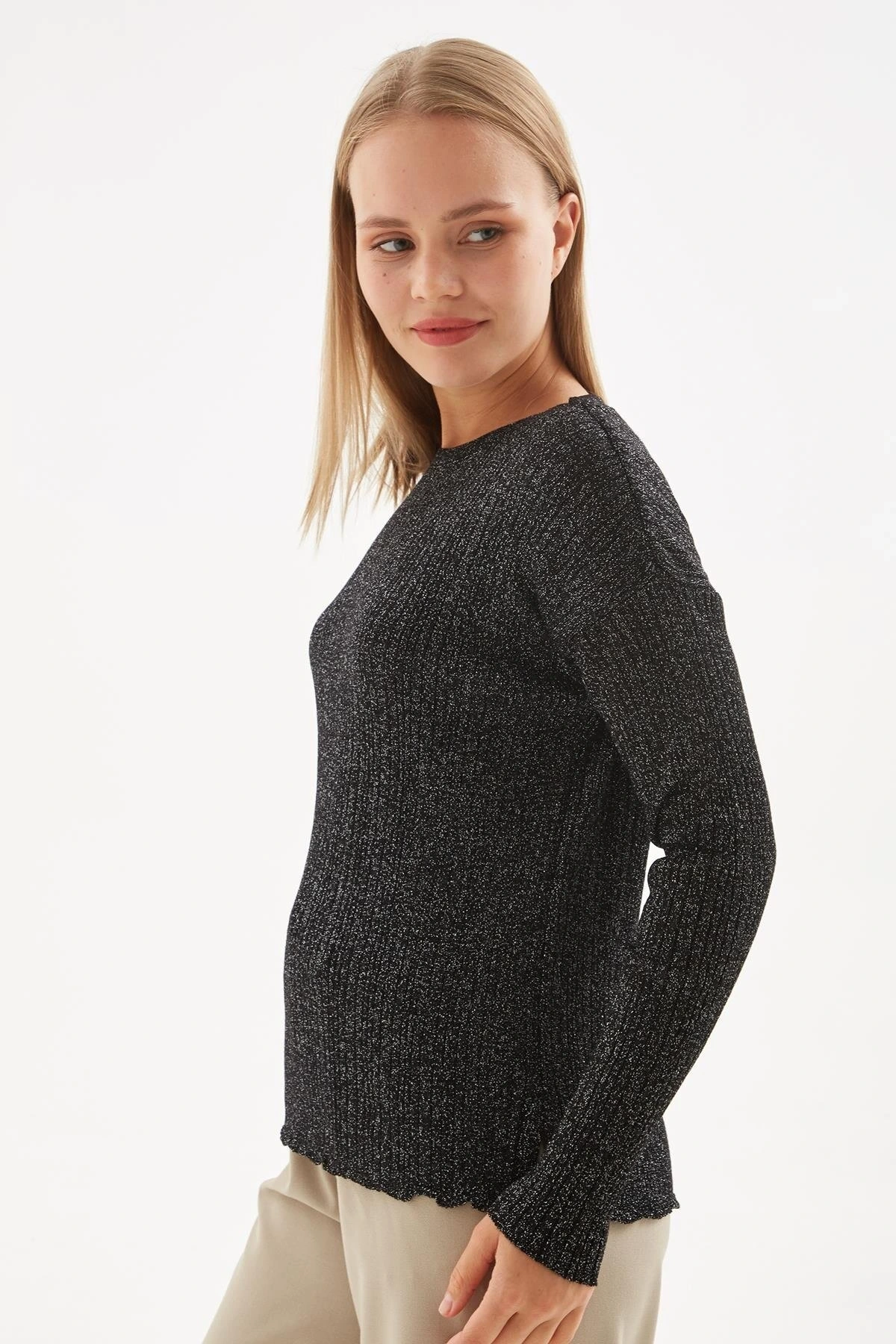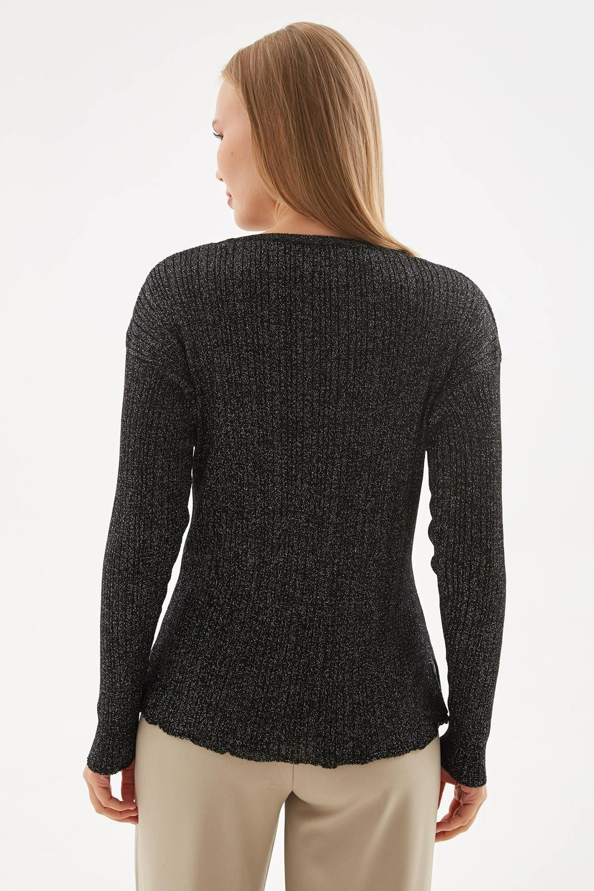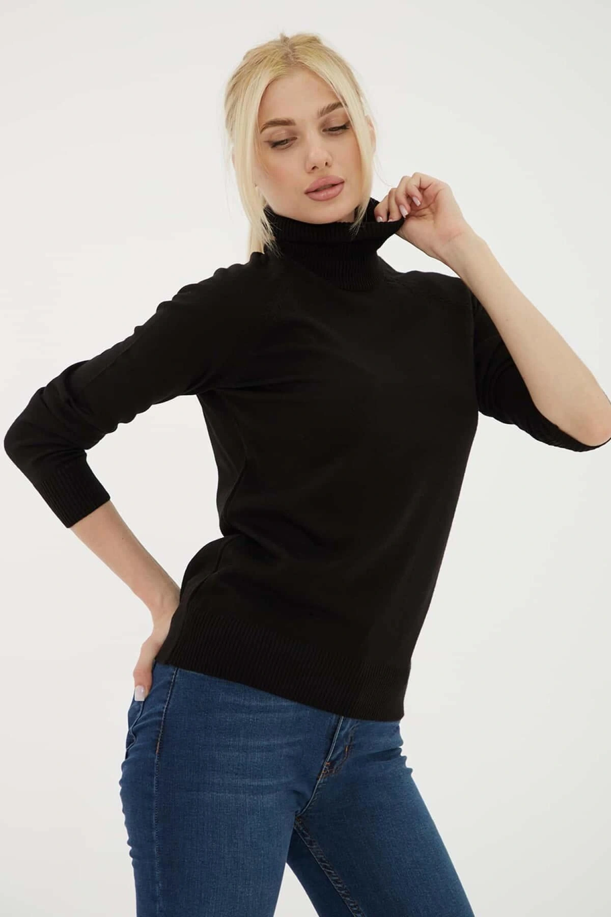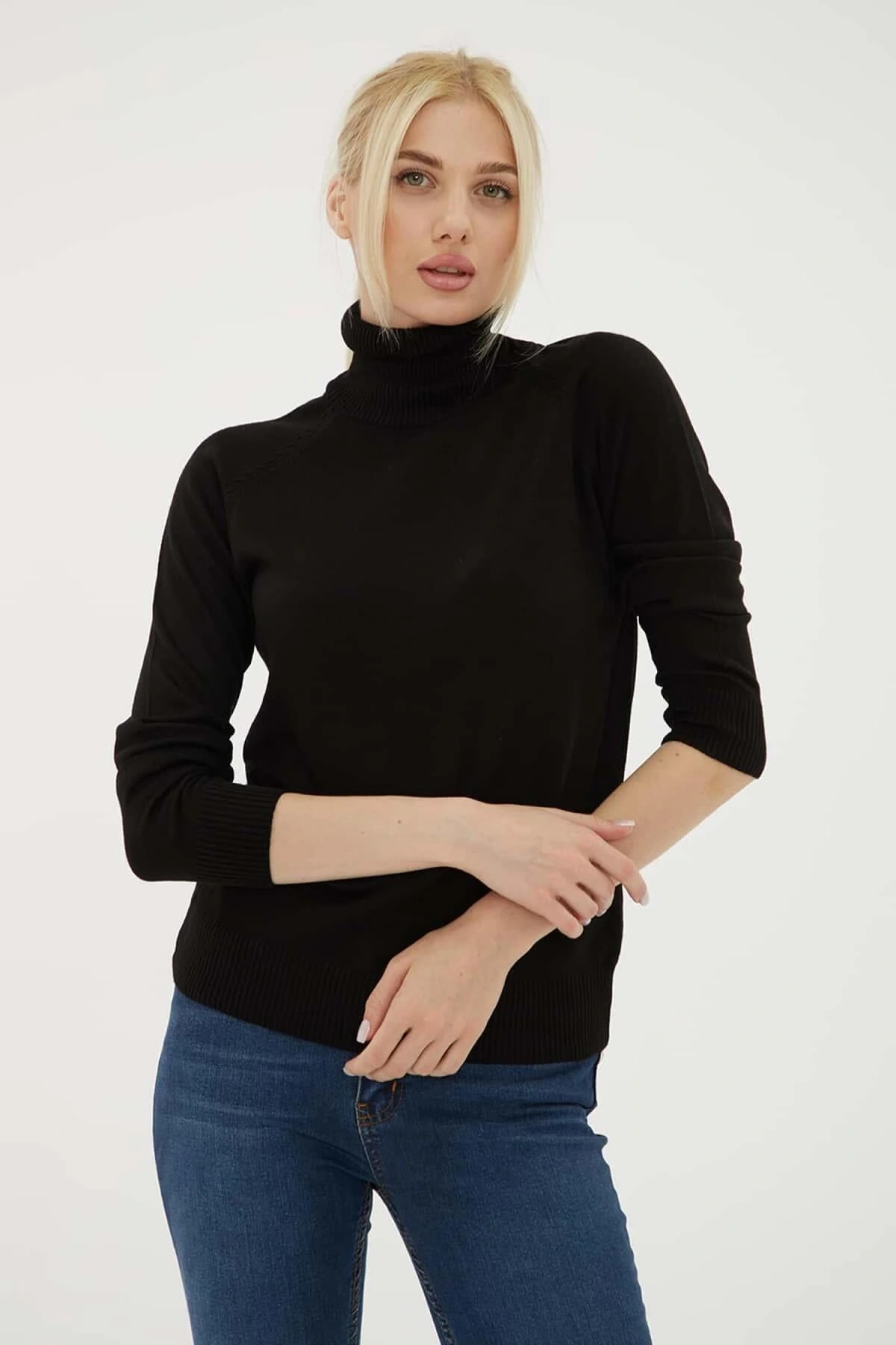 Bisiklet Yaka Düz Siyah Kadın Kazak 22k0166k1
