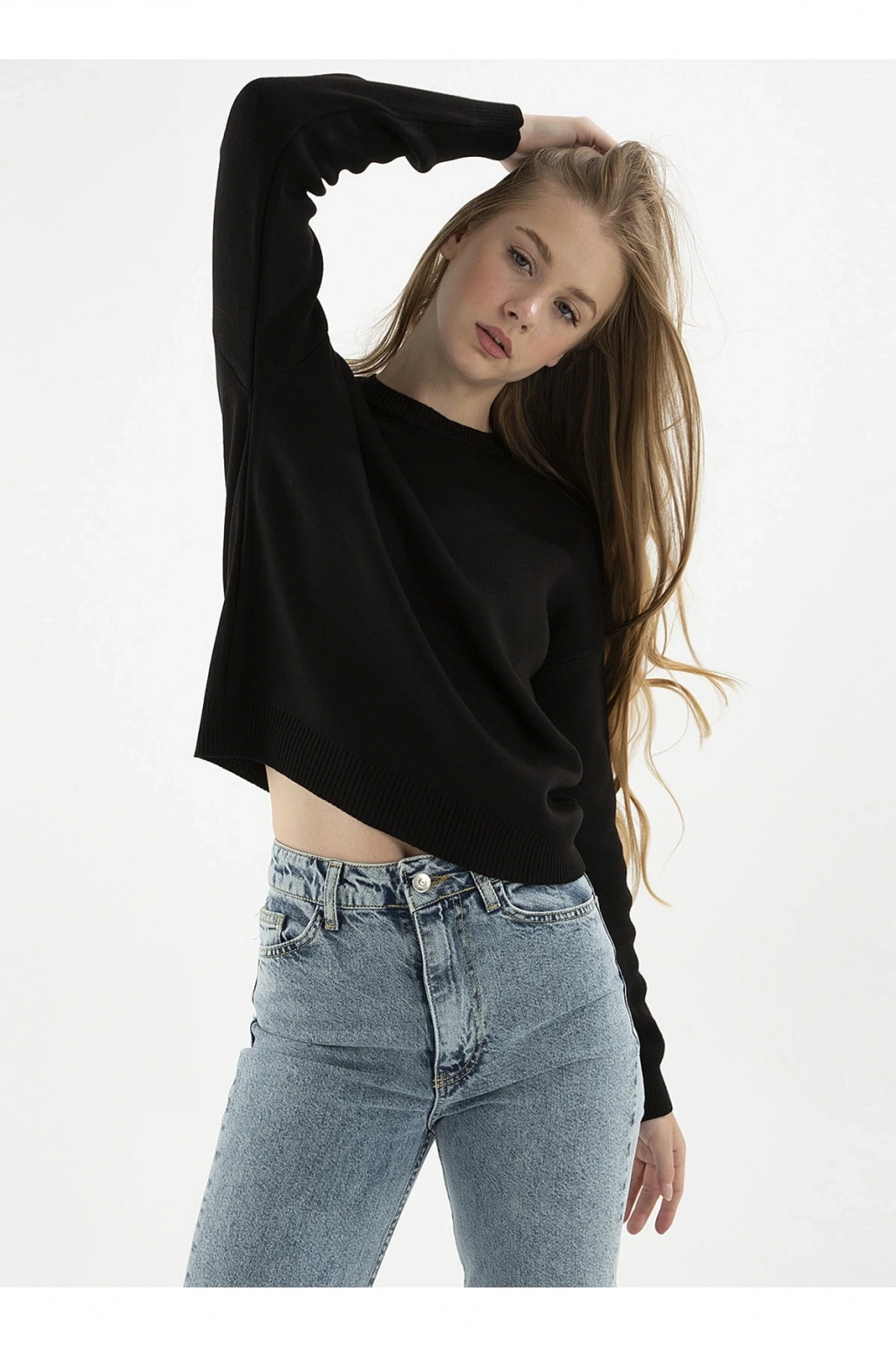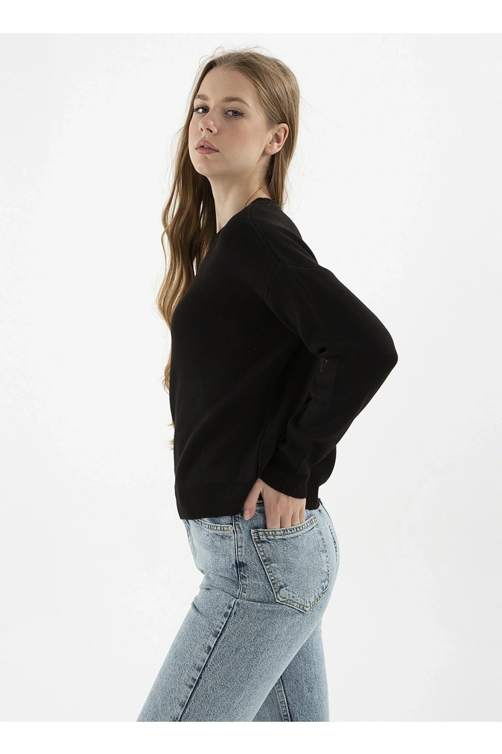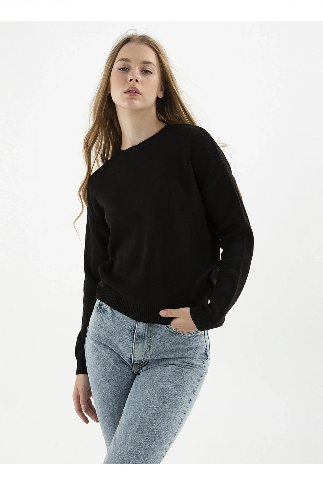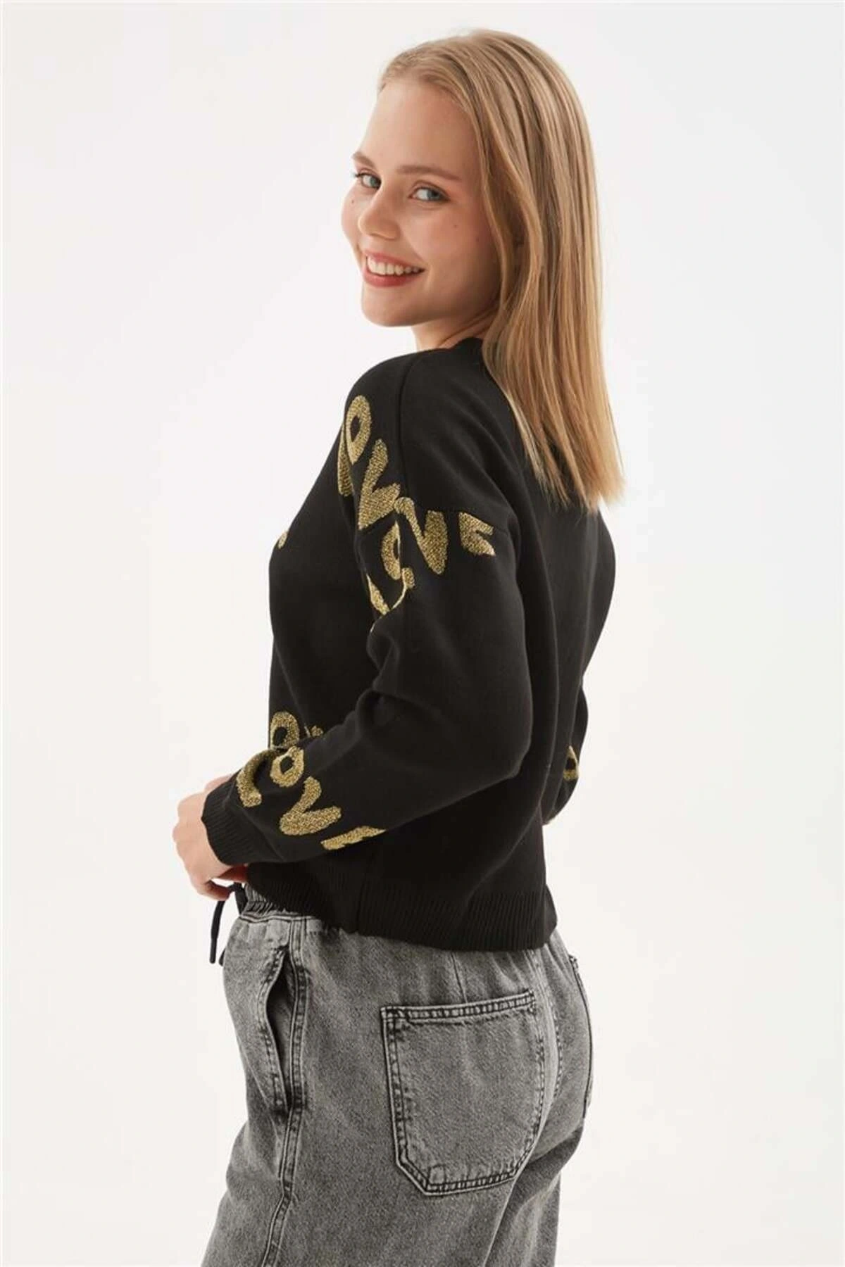 Bisiklet Yaka Düz Siyah Kadın Kazak 22k0166k1