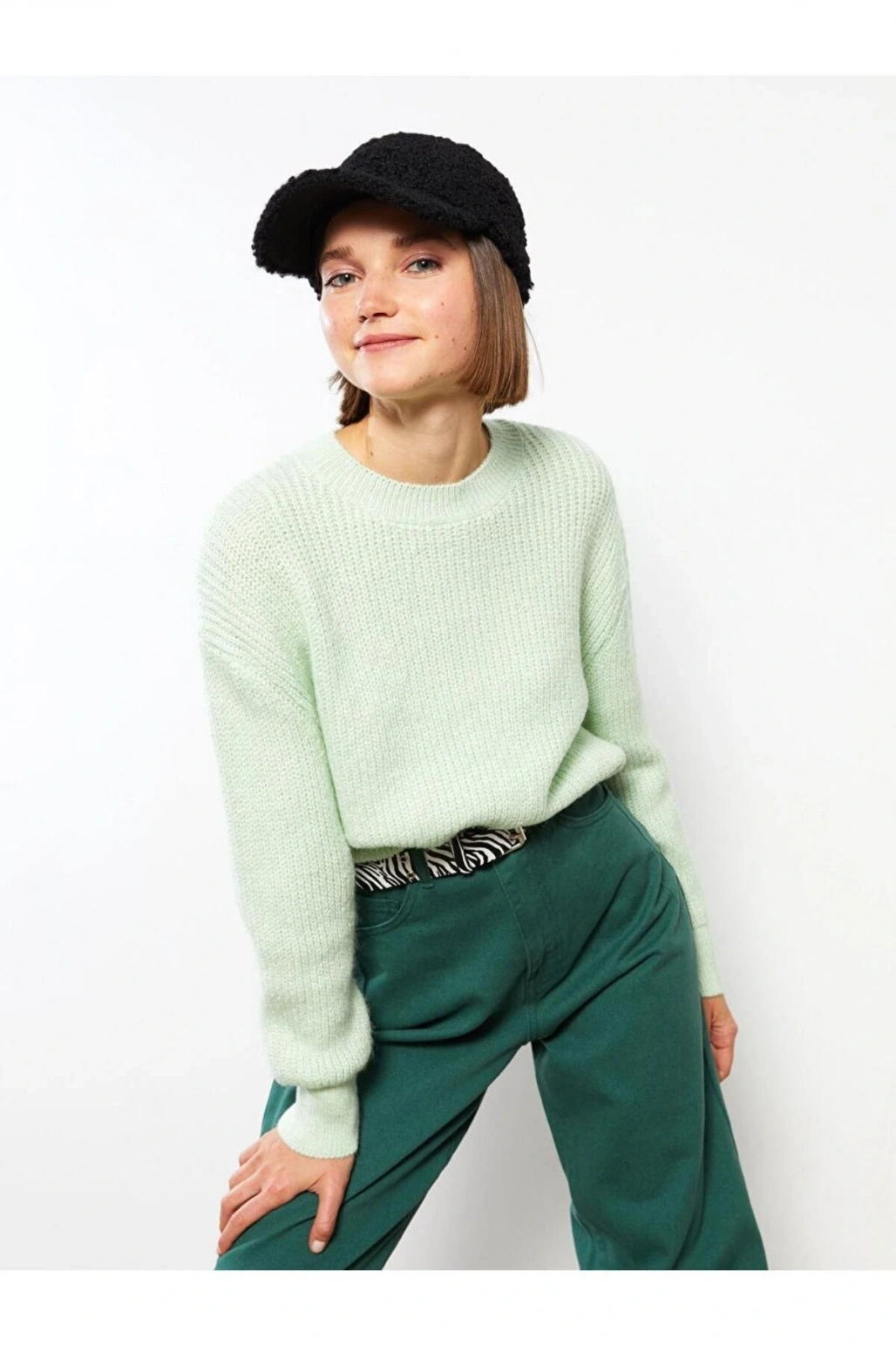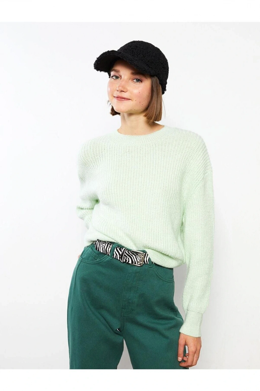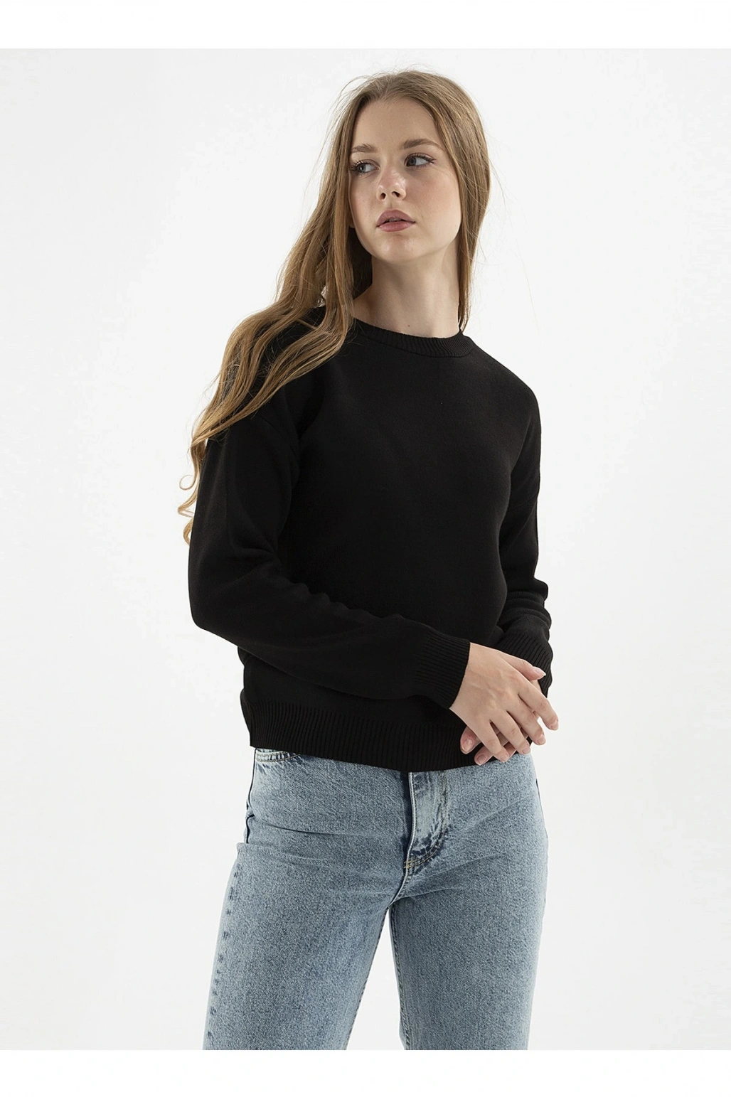 LCW Casual Bisiklet Yaka Düz Uzun Kollu Kadın Triko Kazak