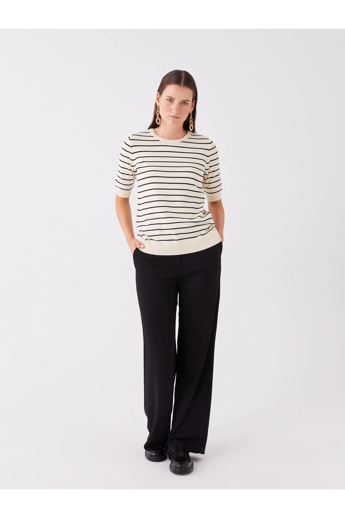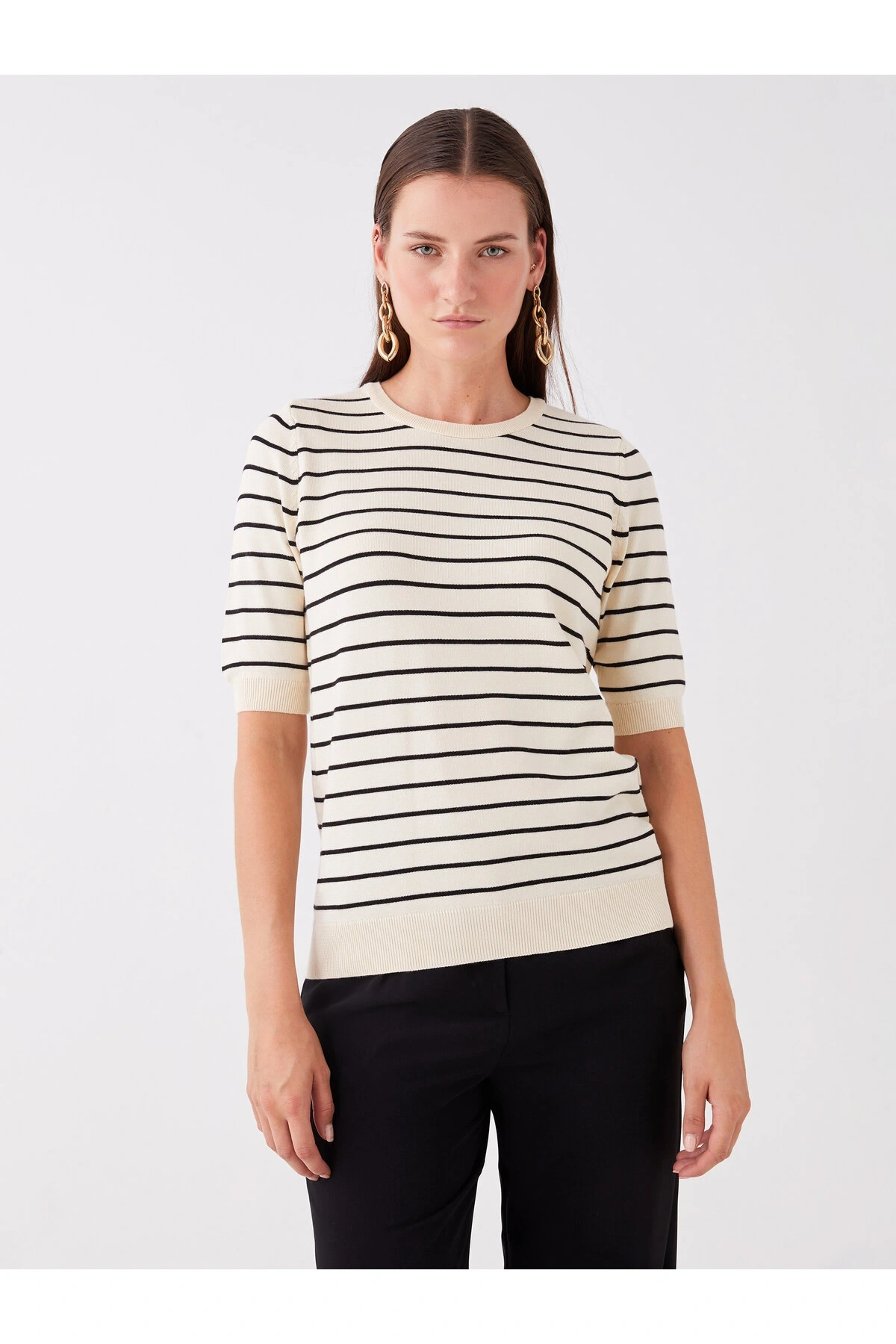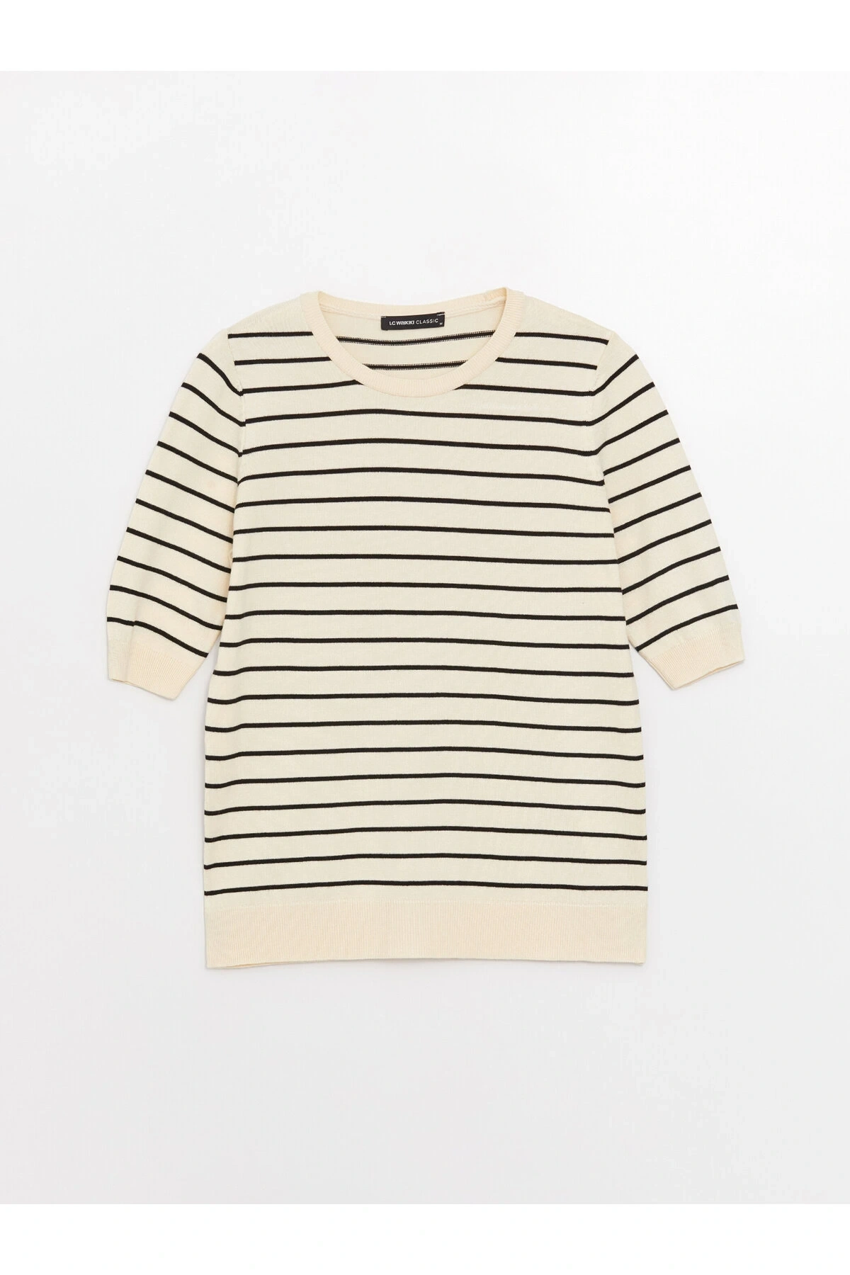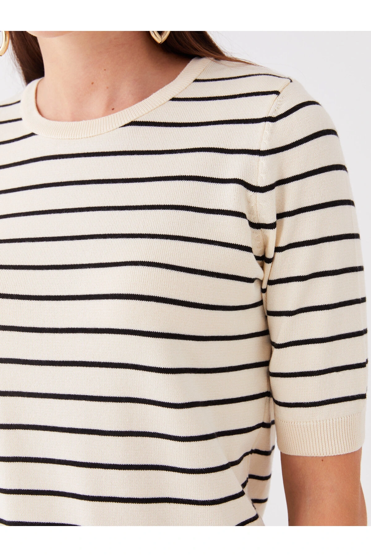 Bisiklet Yaka Çizgili Kısa Kollu Kadın Triko Kazak