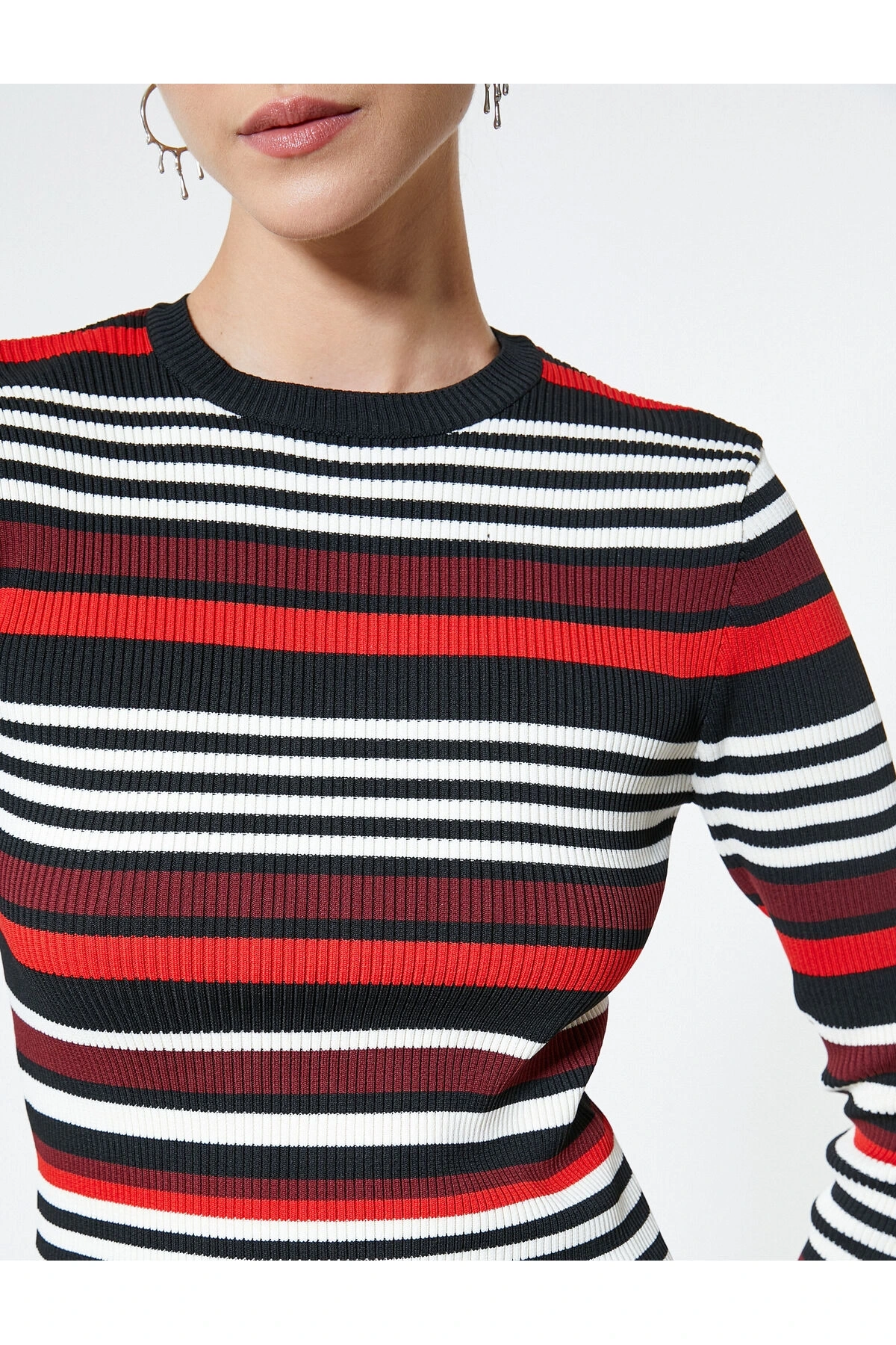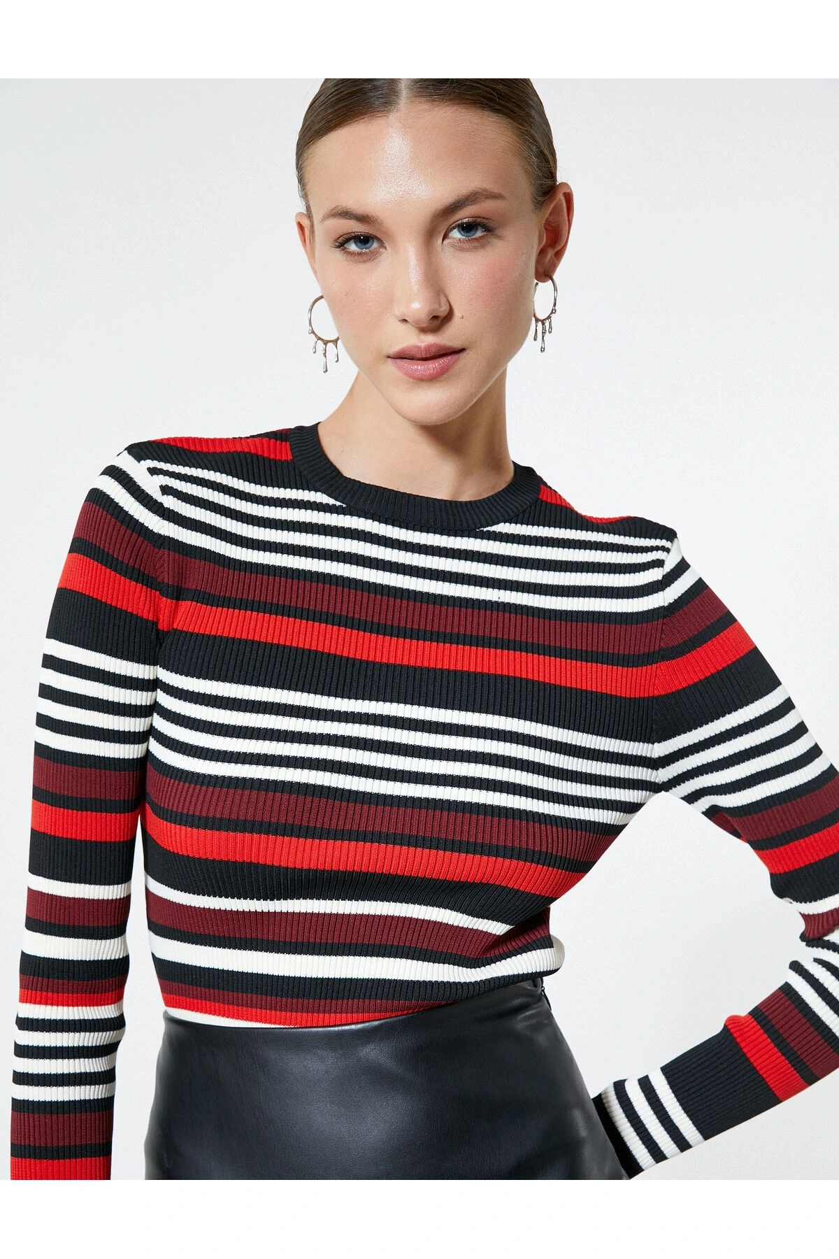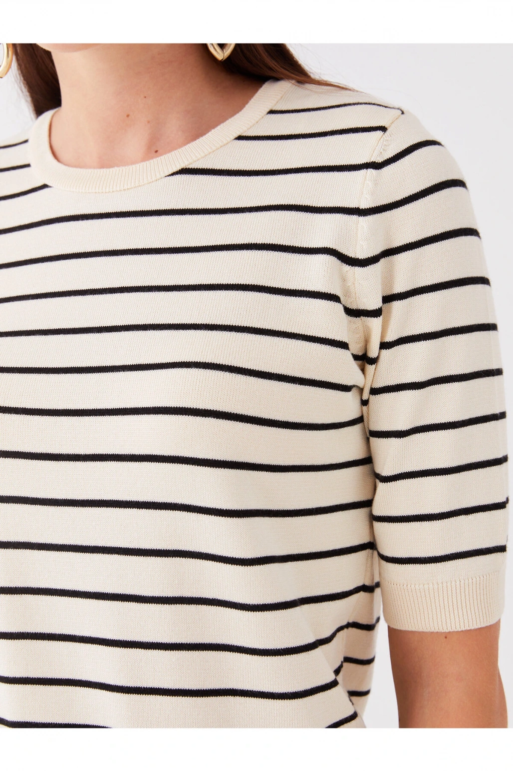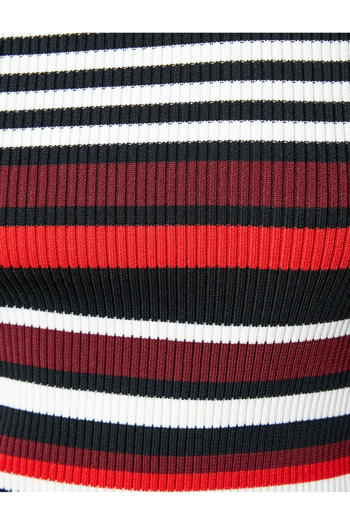 Bisiklet Yaka Çizgili Kısa Kollu Kadın Triko Kazak