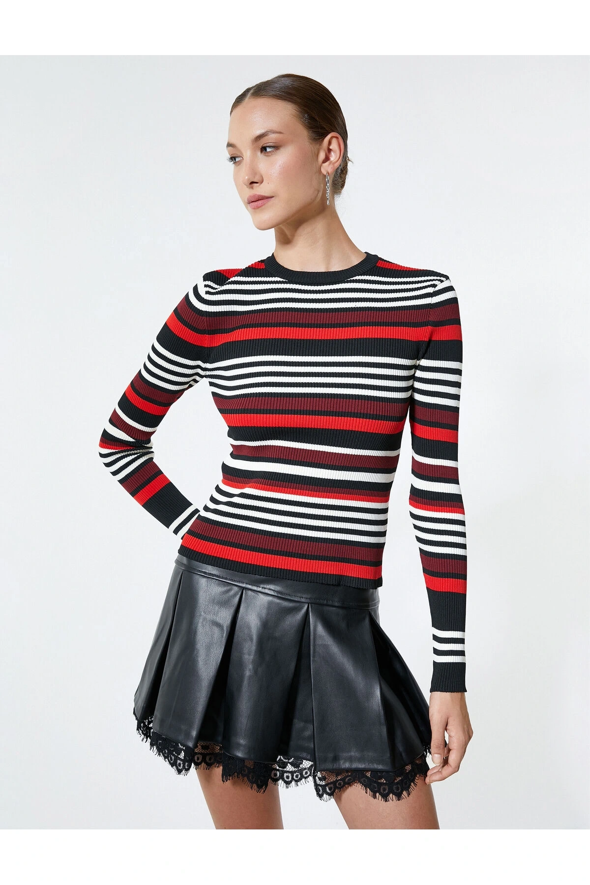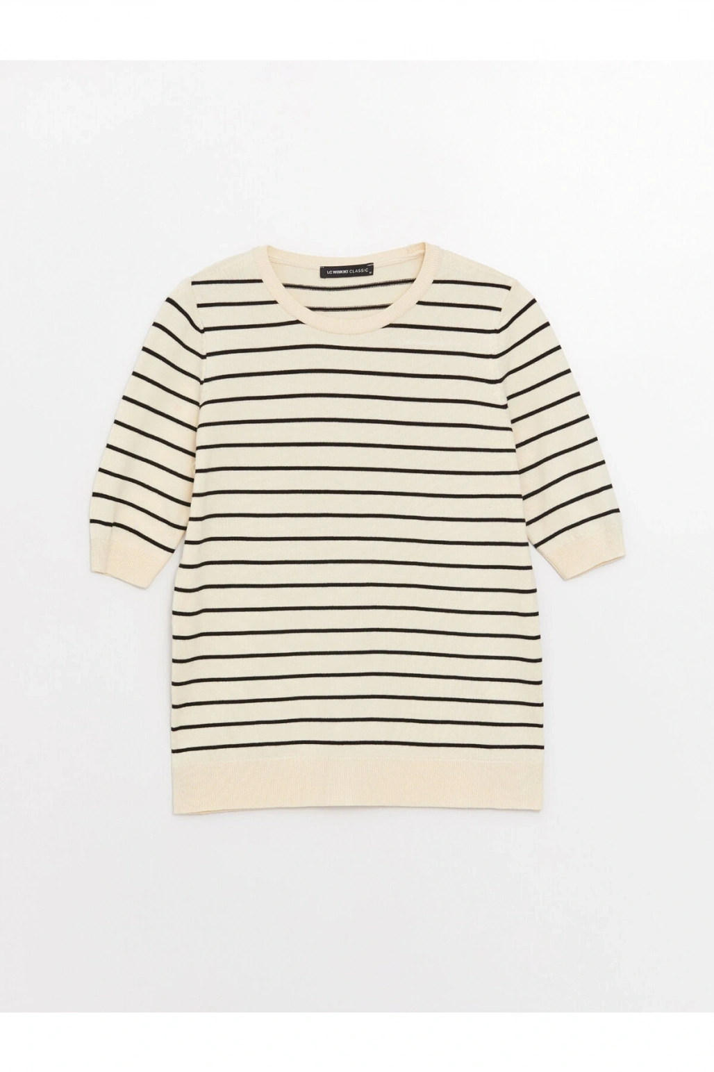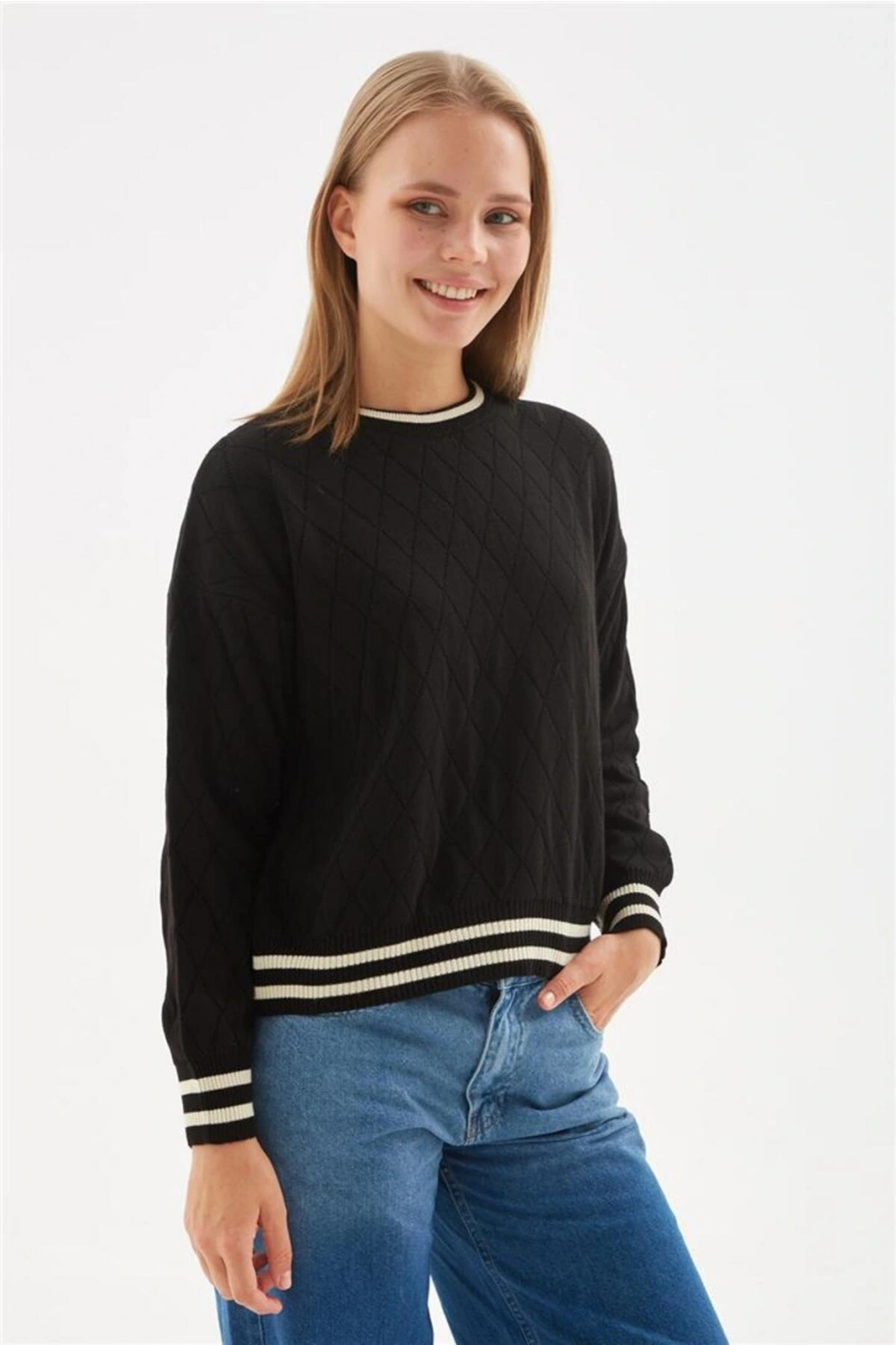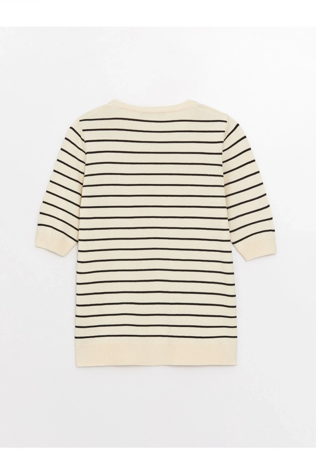 Bisiklet Yaka Çizgili Kısa Kollu Kadın Triko Kazak