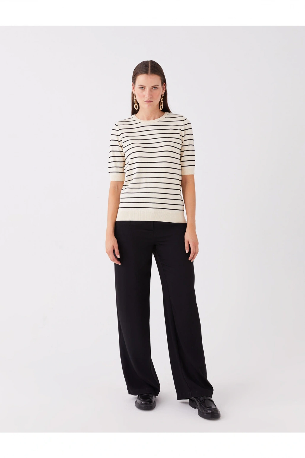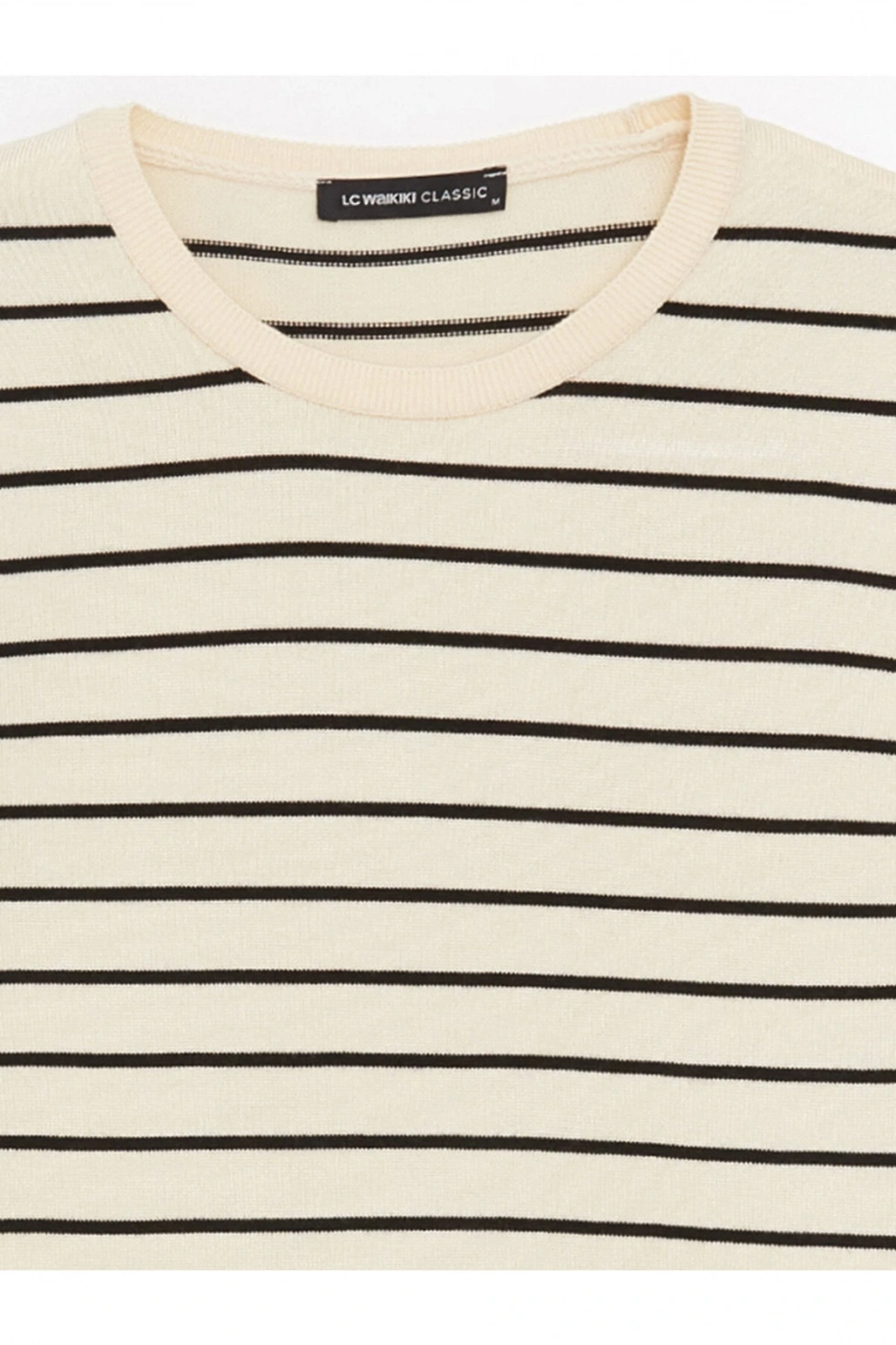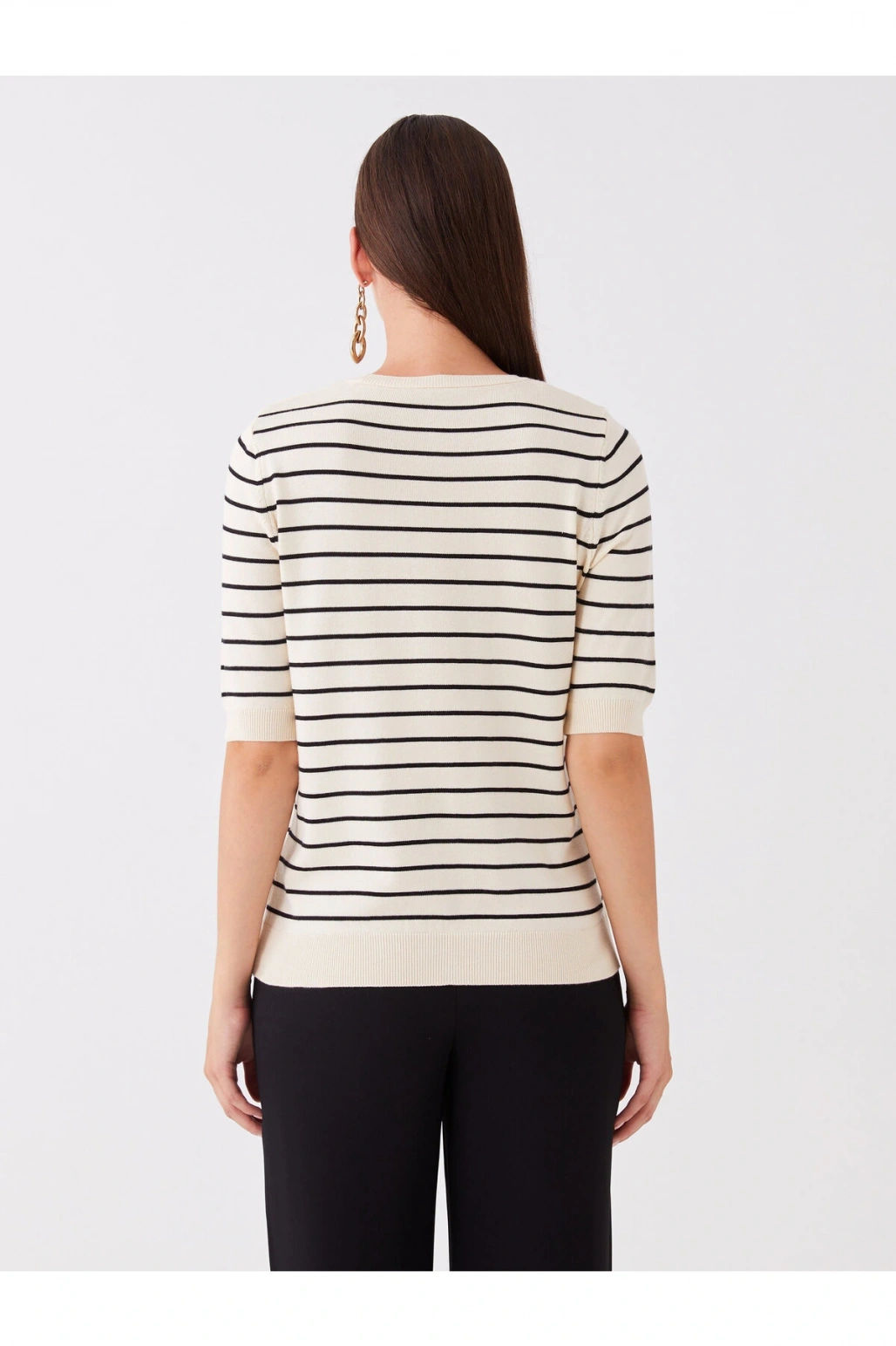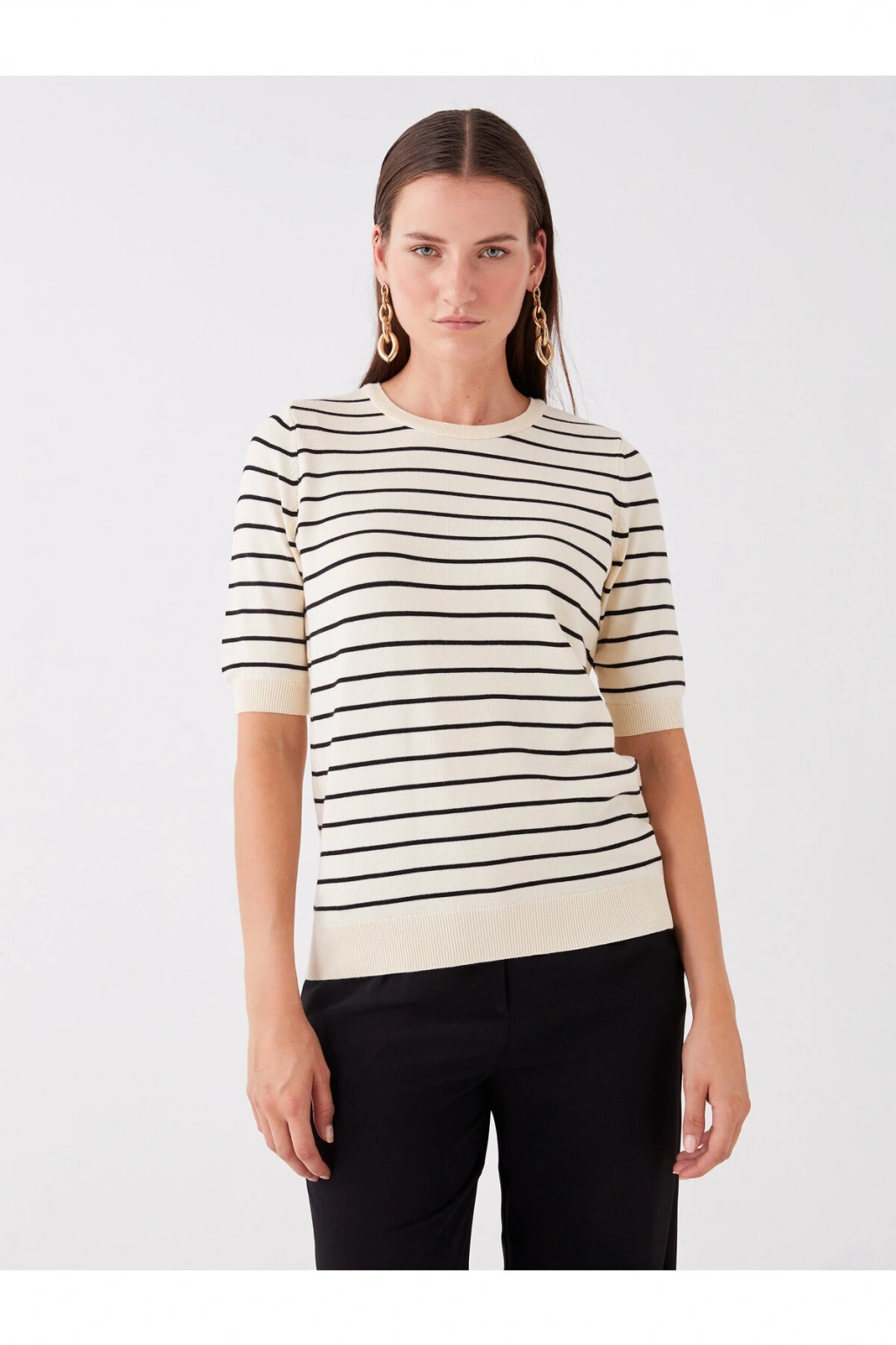 Bisiklet Yaka Çizgili Kısa Kollu Kadın Triko Kazak