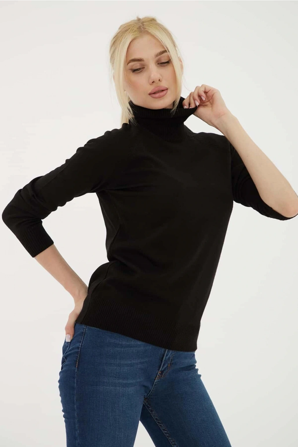 Balıkçı Yaka Kazak Siyah