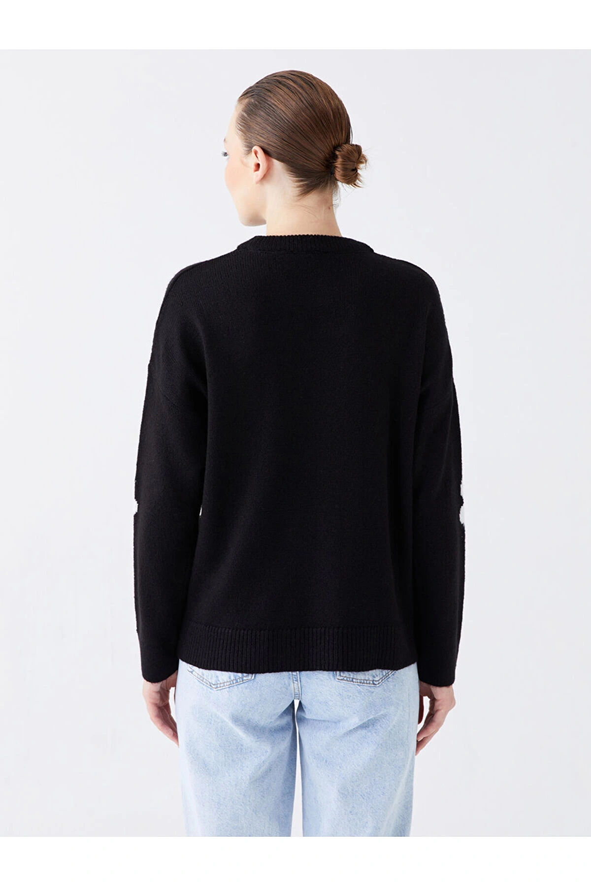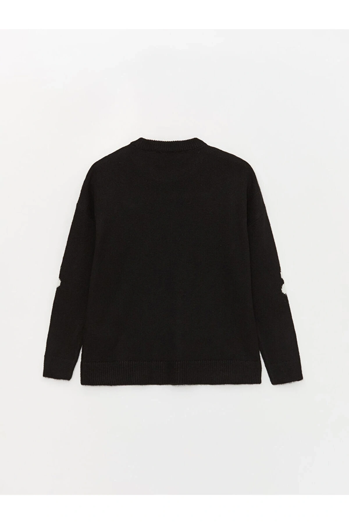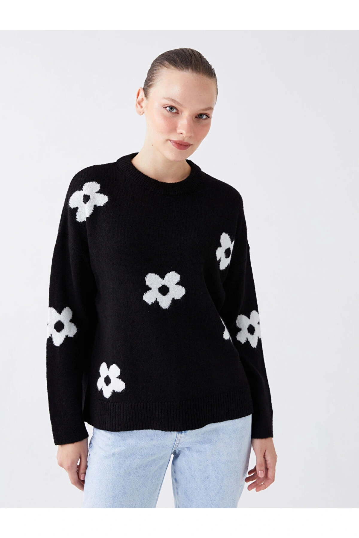 Bisiklet Yaka Çiçekli Uzun Kollu Oversize Kadın Triko Kazak