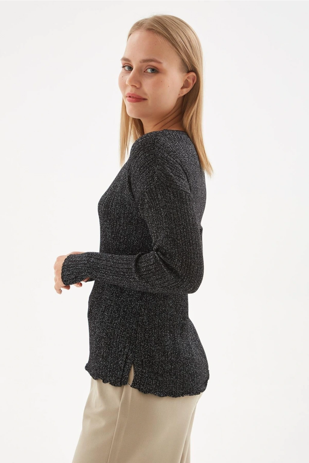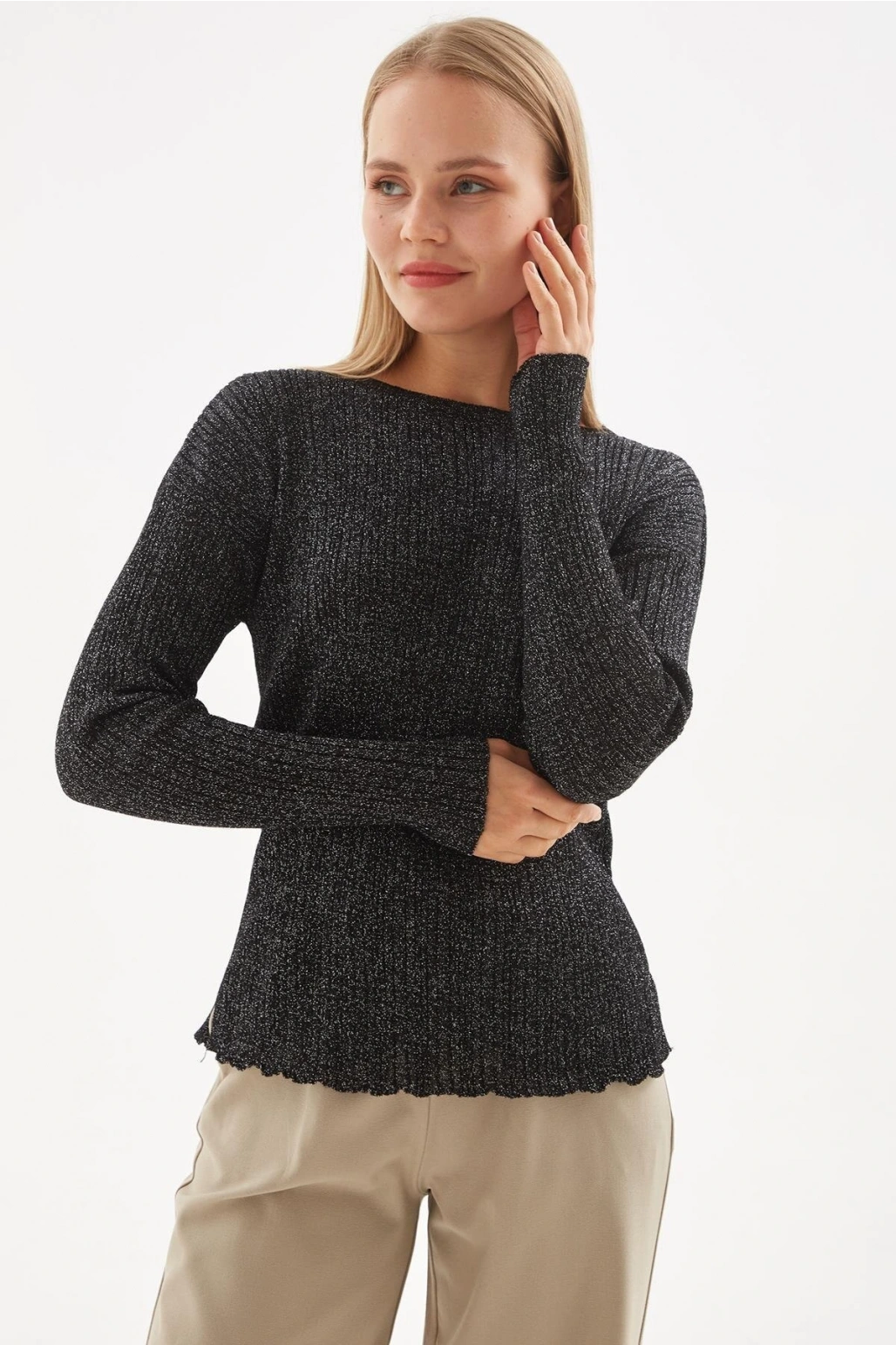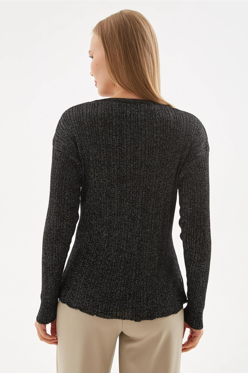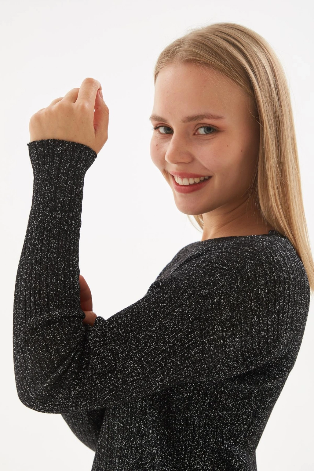Simli Triko Bluz Siyah