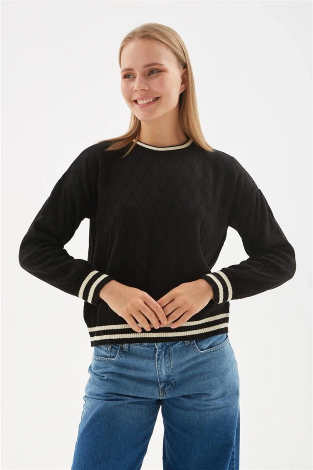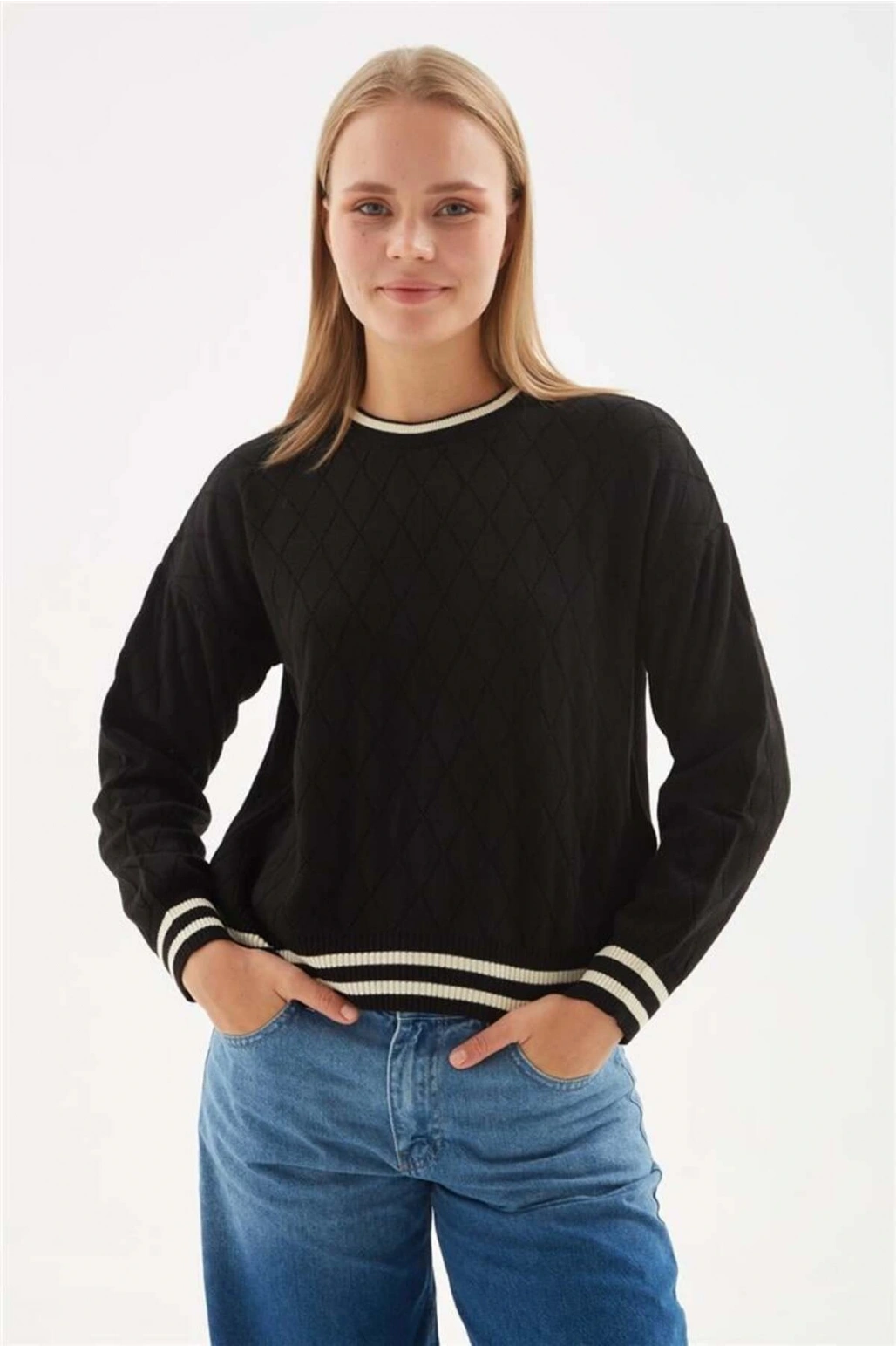 Triko Kazak Bisiklet Yaka Uzun Kollu Fitilli