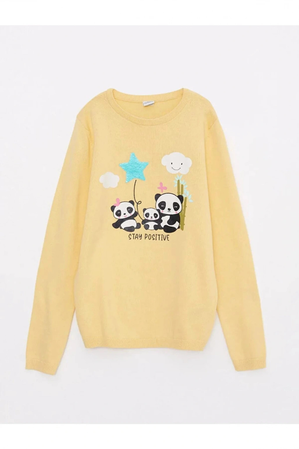 LCW Kids Sarı Bisiklet Yaka Baskılı Çift Yönlü Payetli Uzun Kollu Kız Çocuk Triko Kazak
