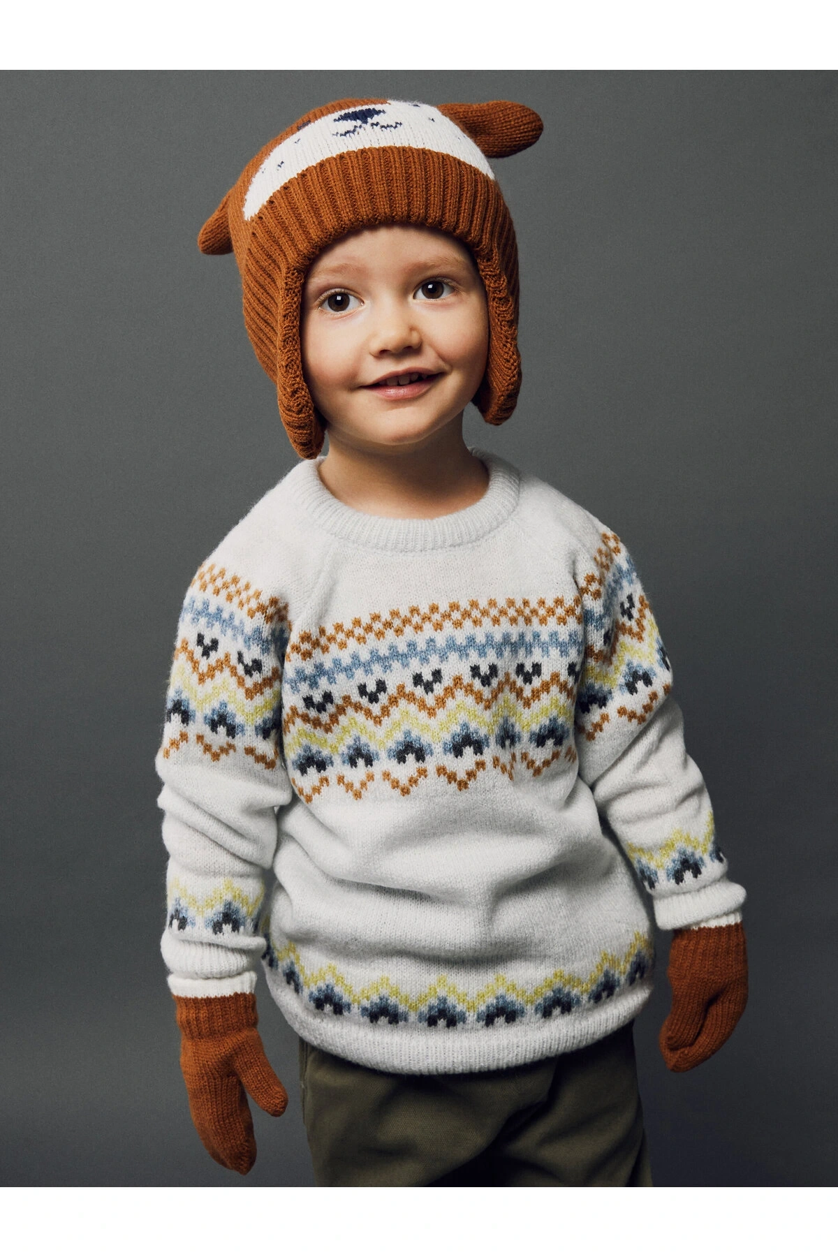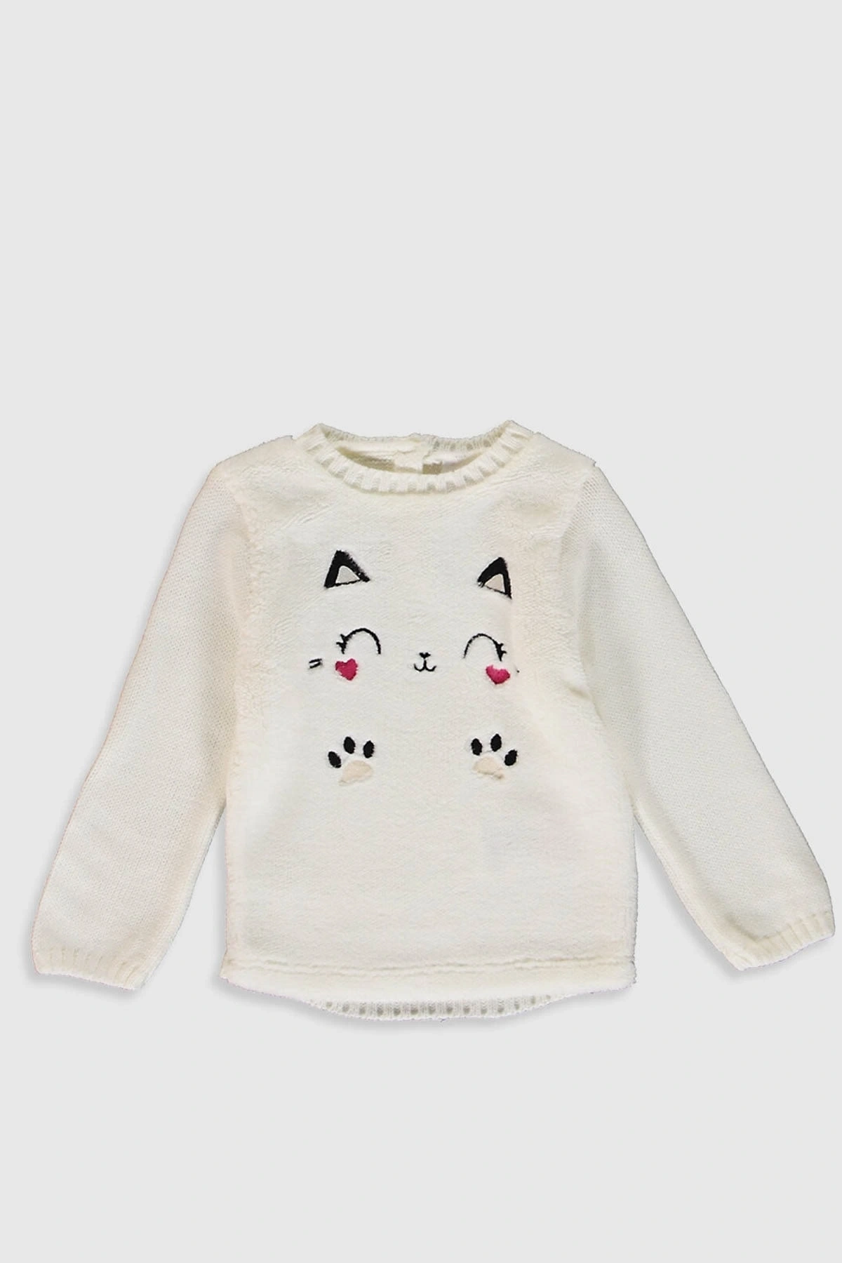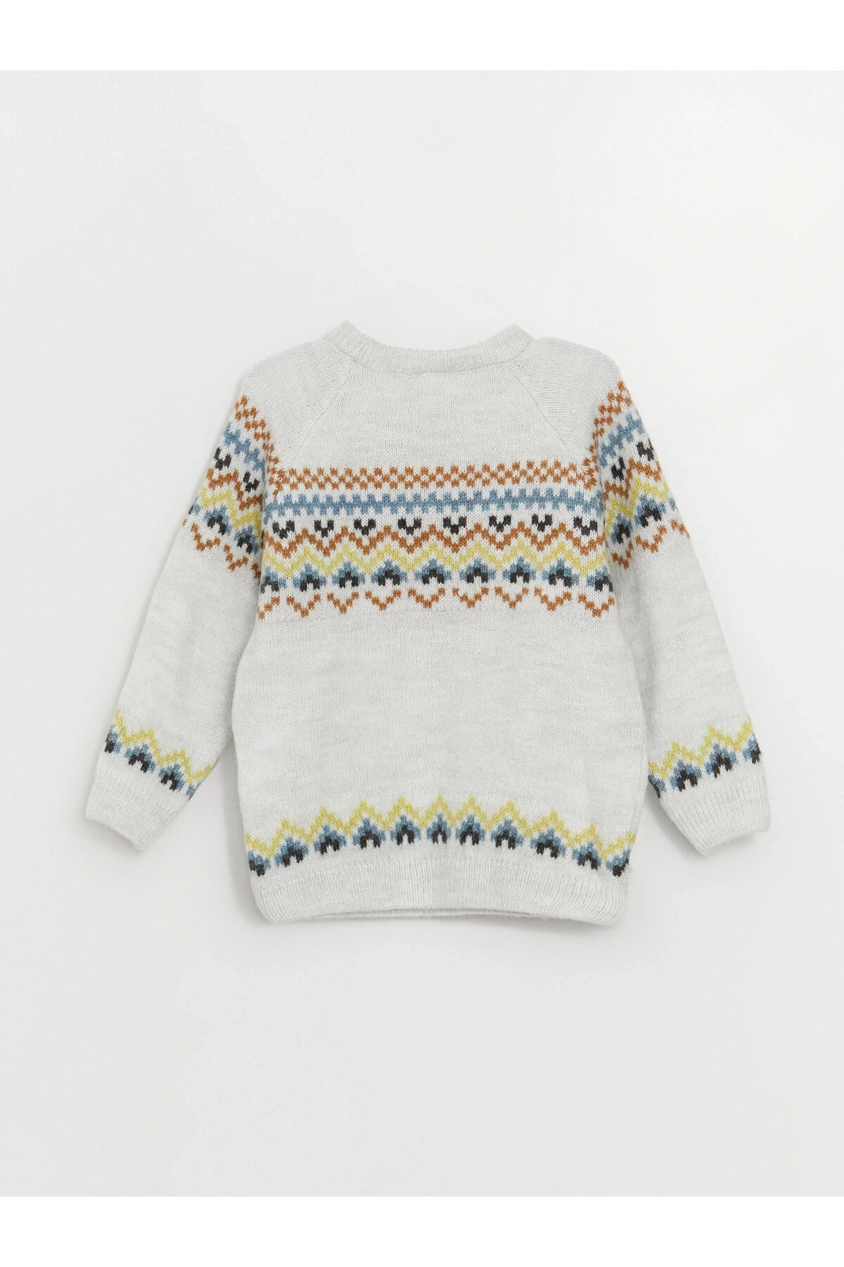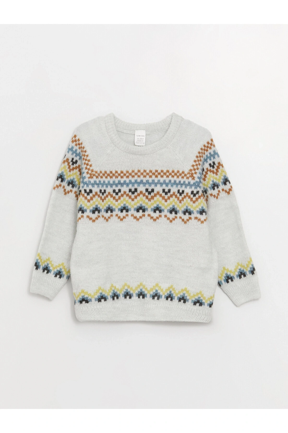 Bisiklet Yaka Uzun Kollu Desenli Erkek Bebek Triko Kazak