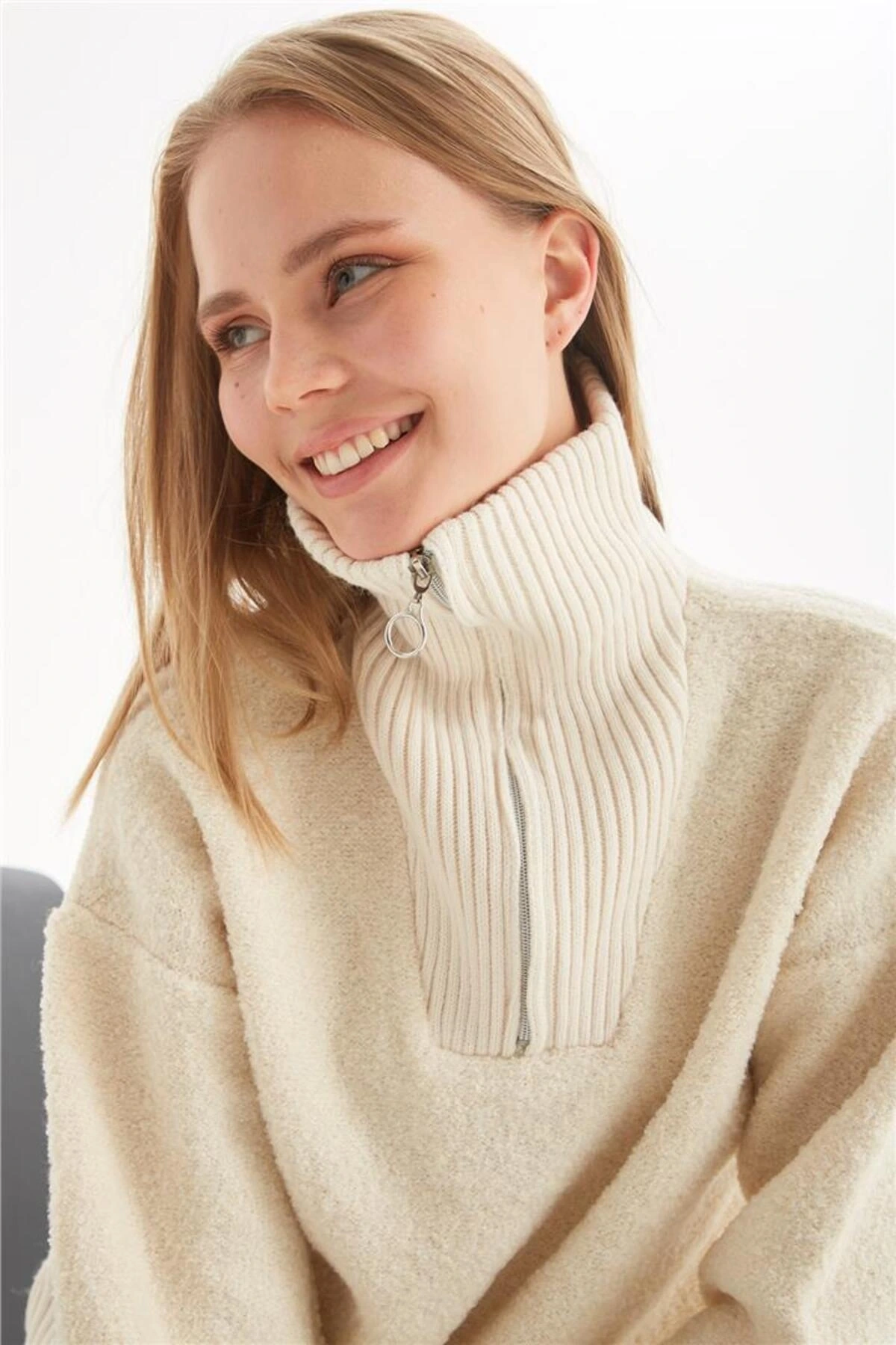 23k0166k1 Kadın Düşük Omuzlu Kazak