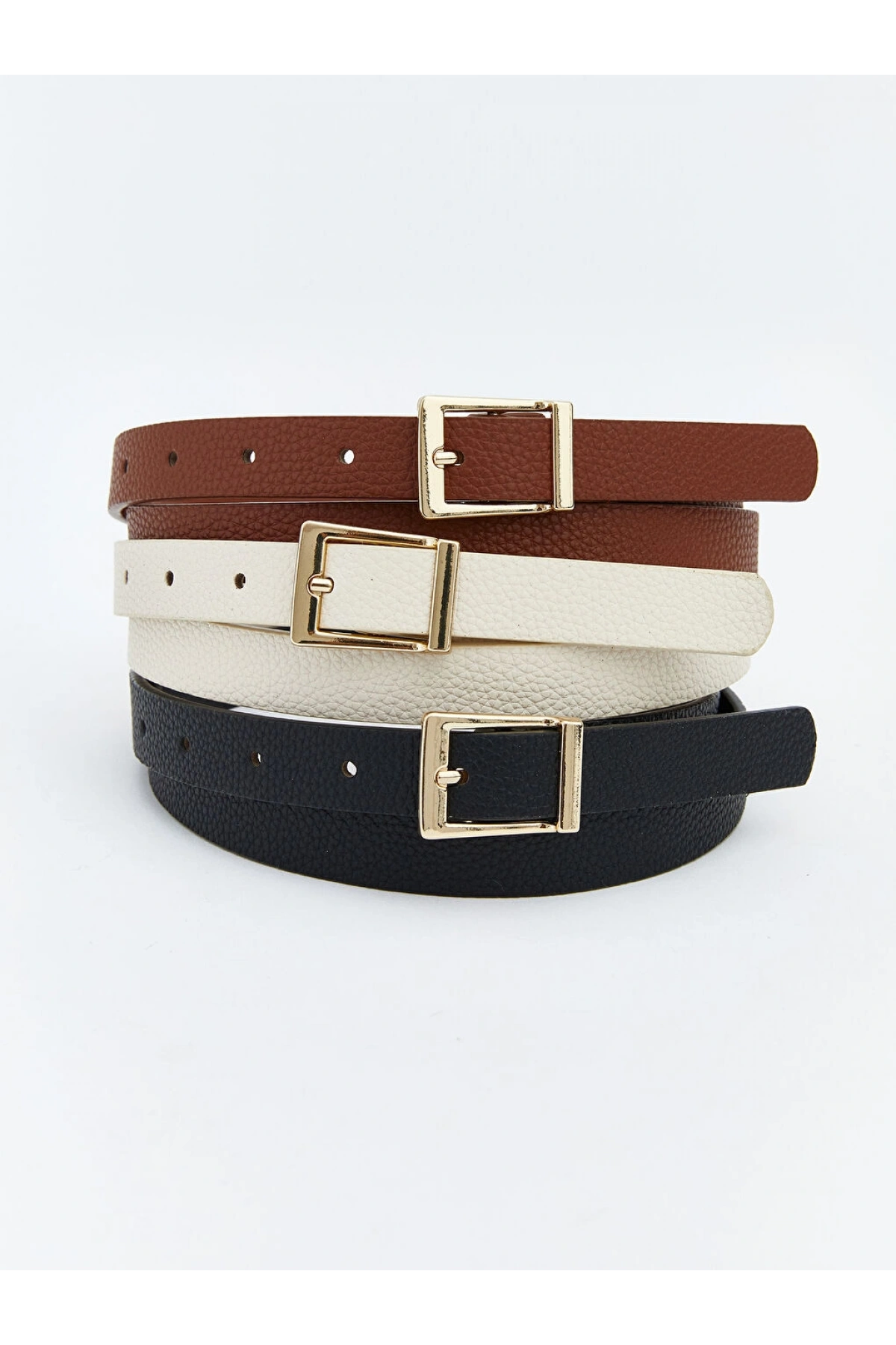 LCW ACCESSORIES Siyah Deri Görünümlü Kadın Kemer 3'lü