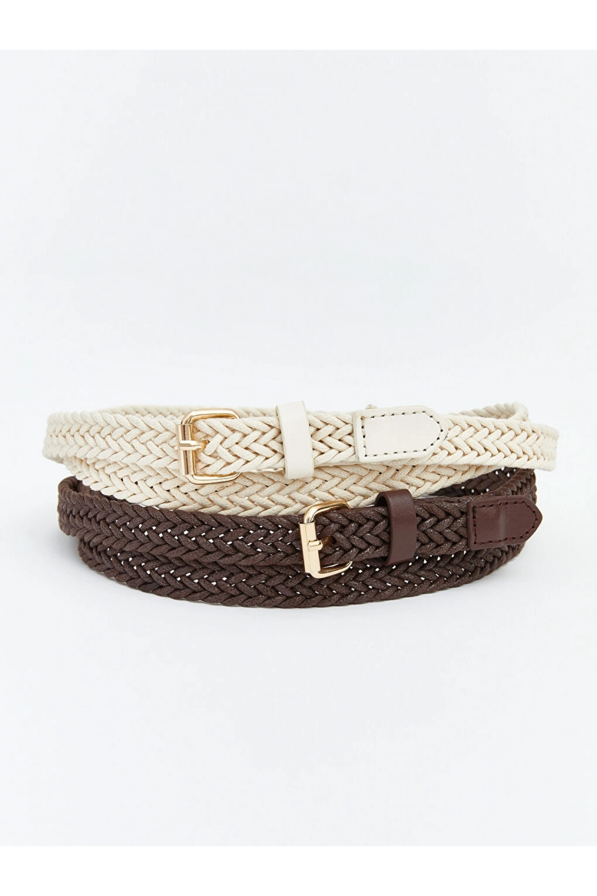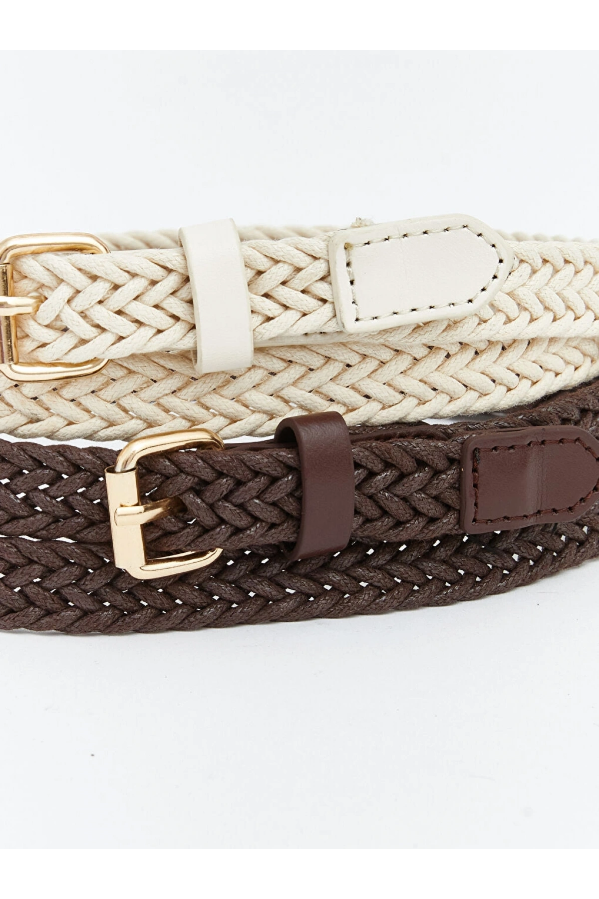 LCW ACCESSORIES Kahverengi Örgü Desenli Kadın Kemer 2'li