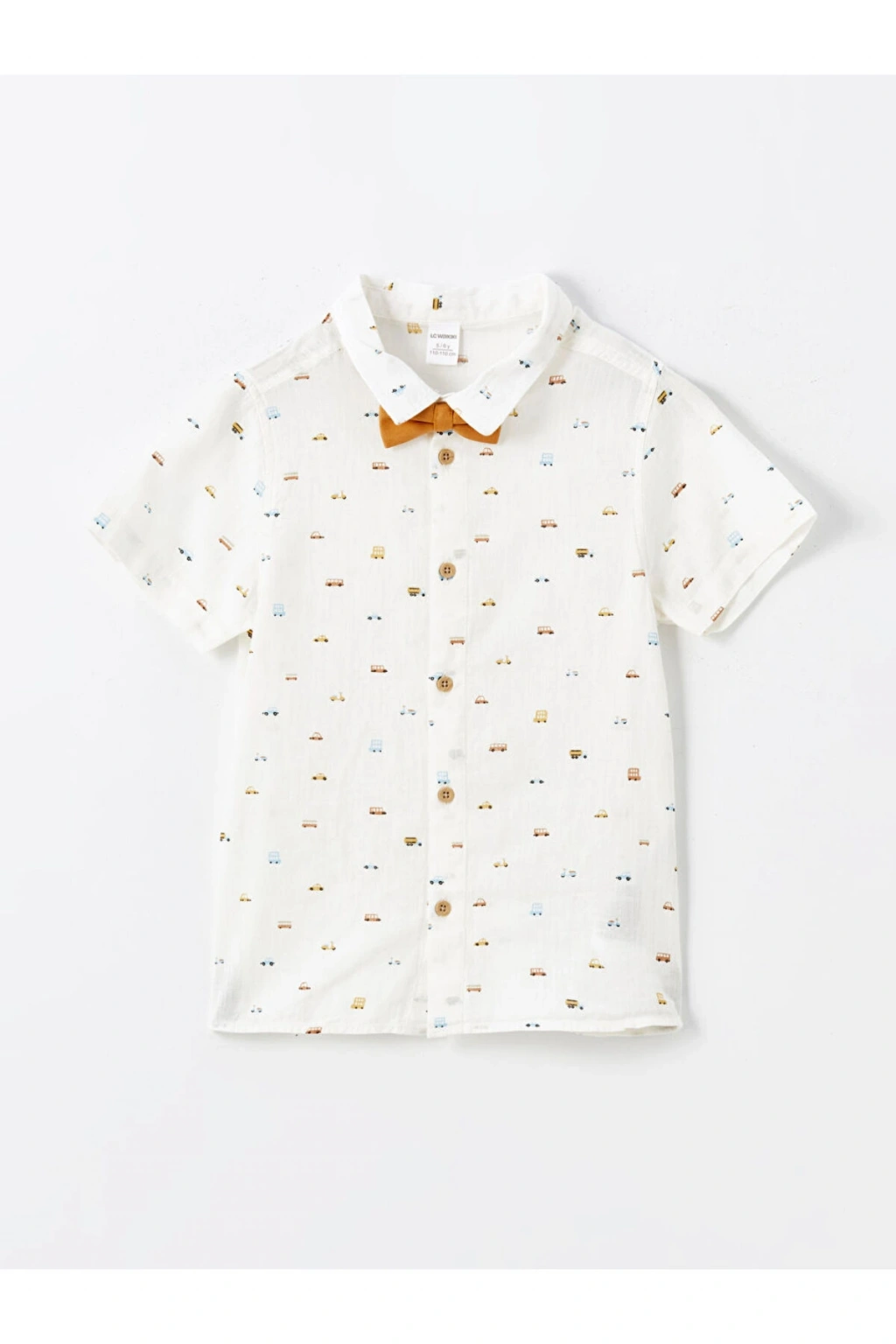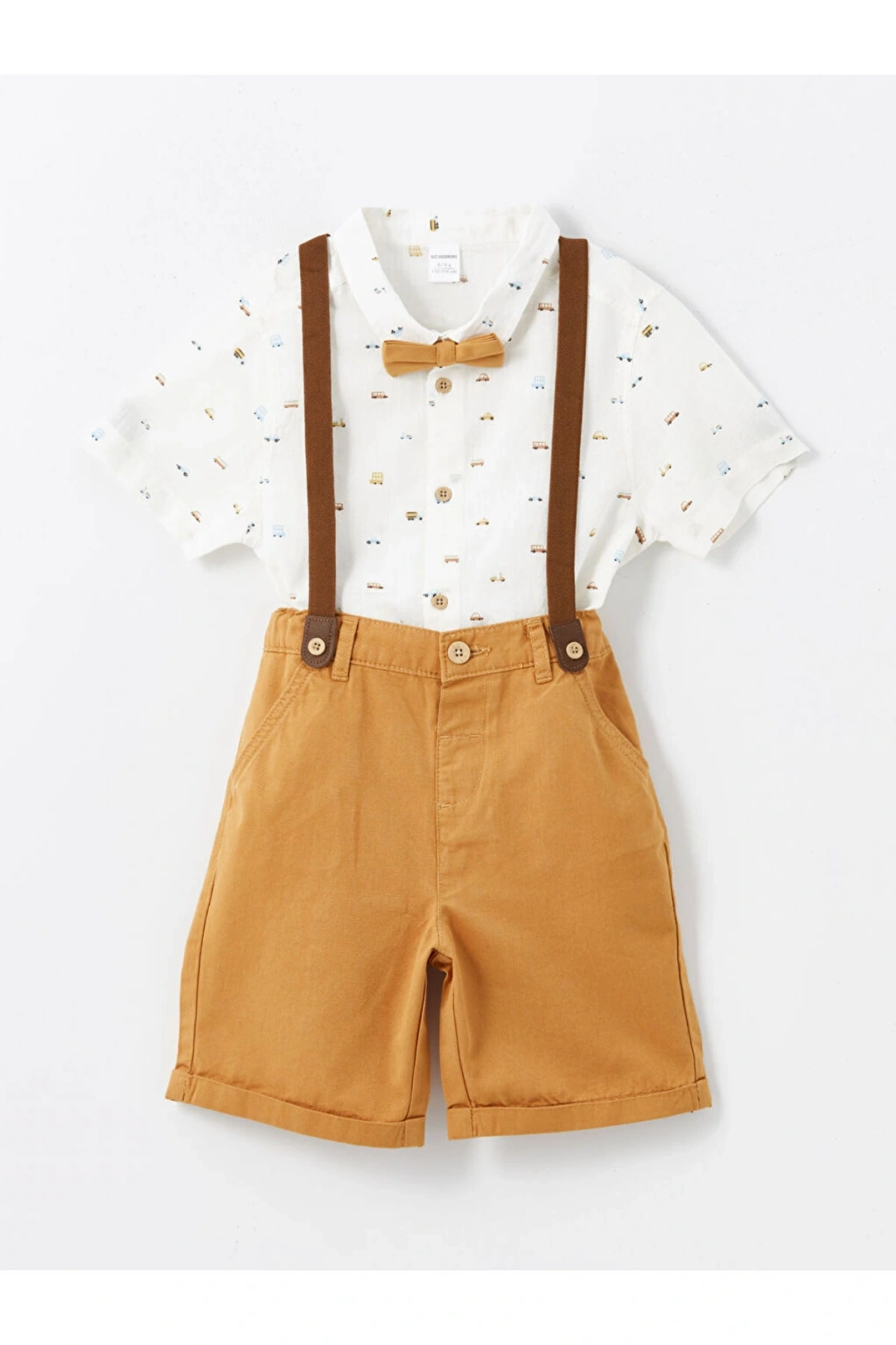Kısa Kollu Baskılı Erkek Bebek Gömlek ve Şort 2'li Takım