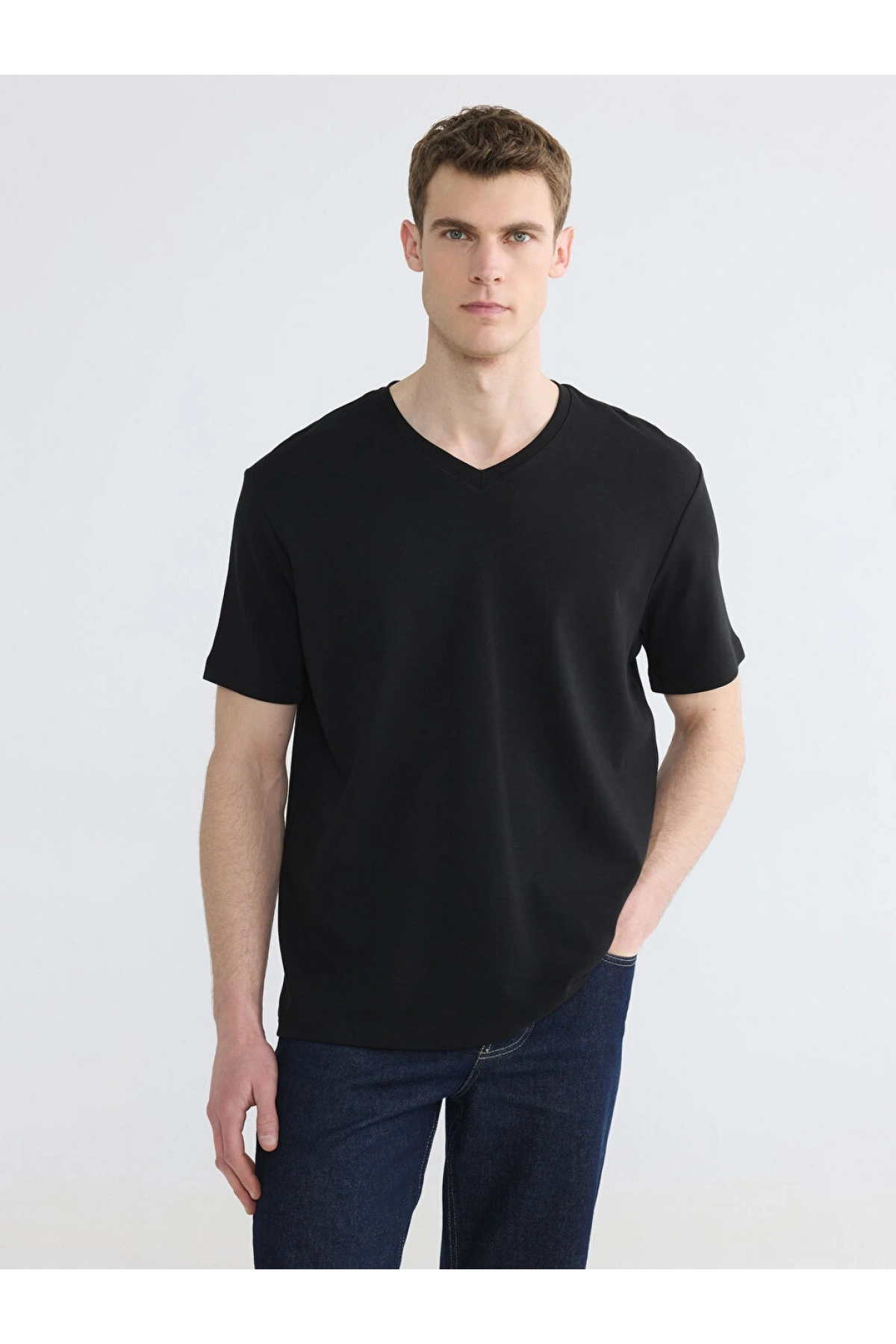 LCWAIKIKI Classic Siyah V Yaka Erkek Tişört