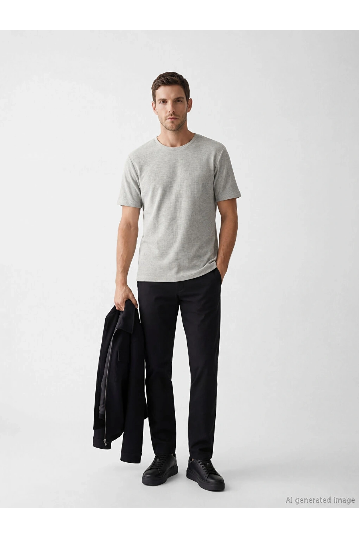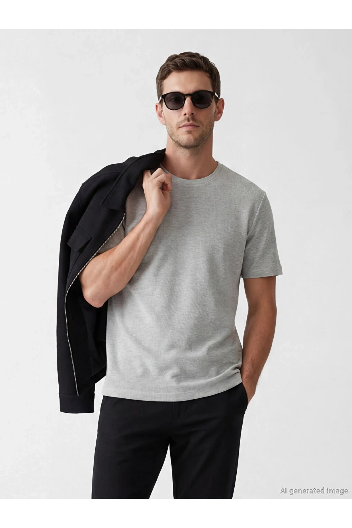LCWAIKIKI Classic Gri Bisiklet Yaka Erkek Tişört