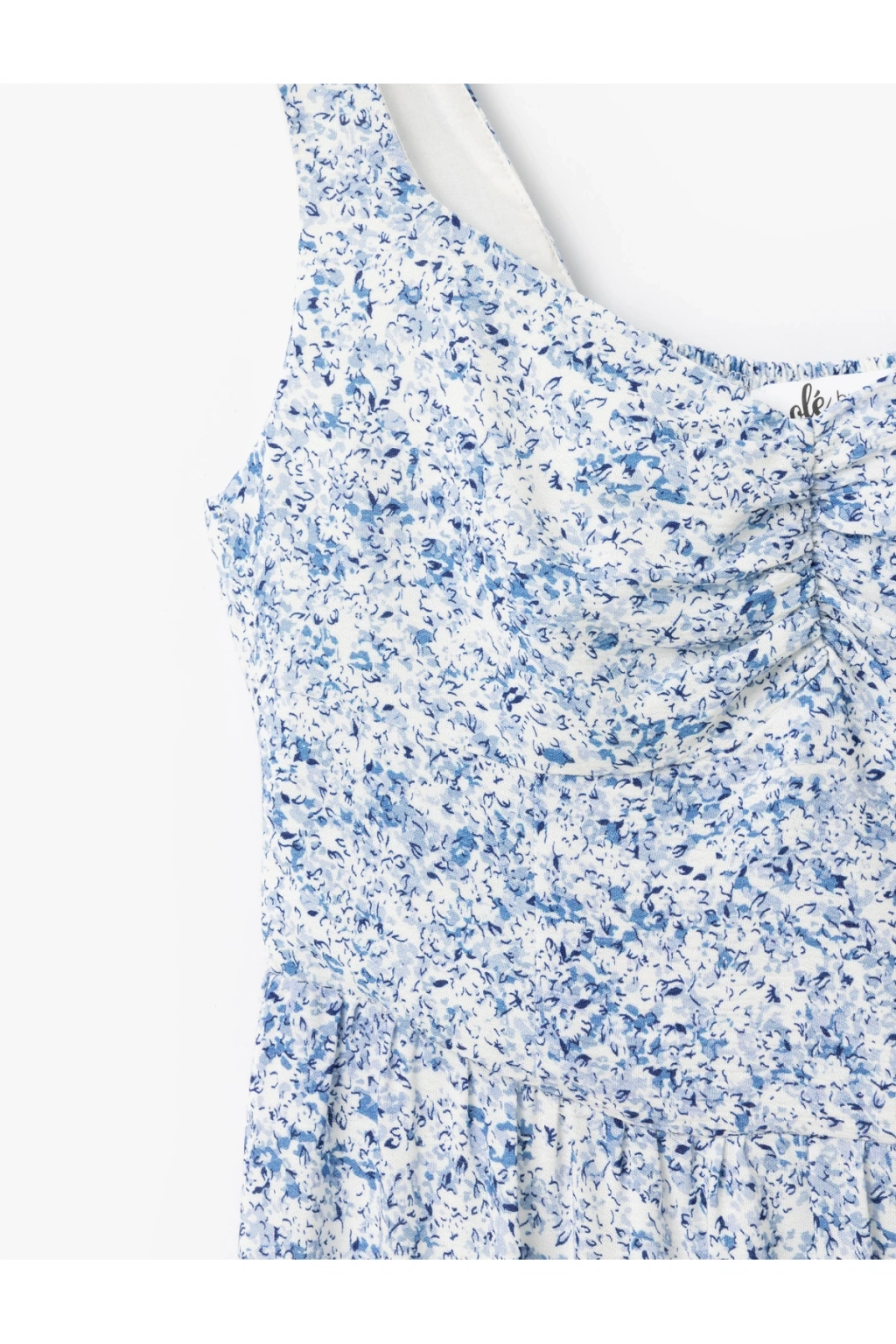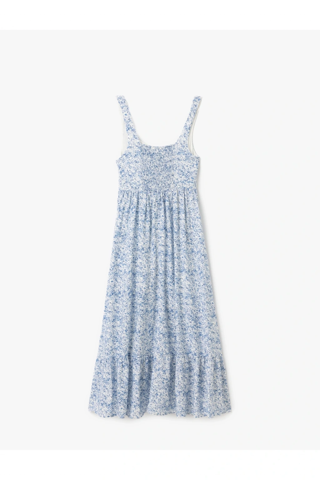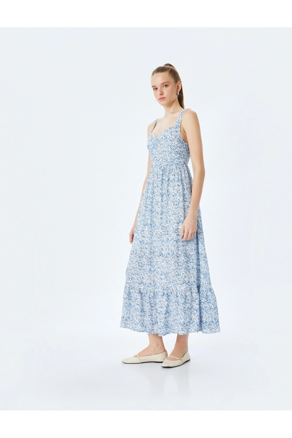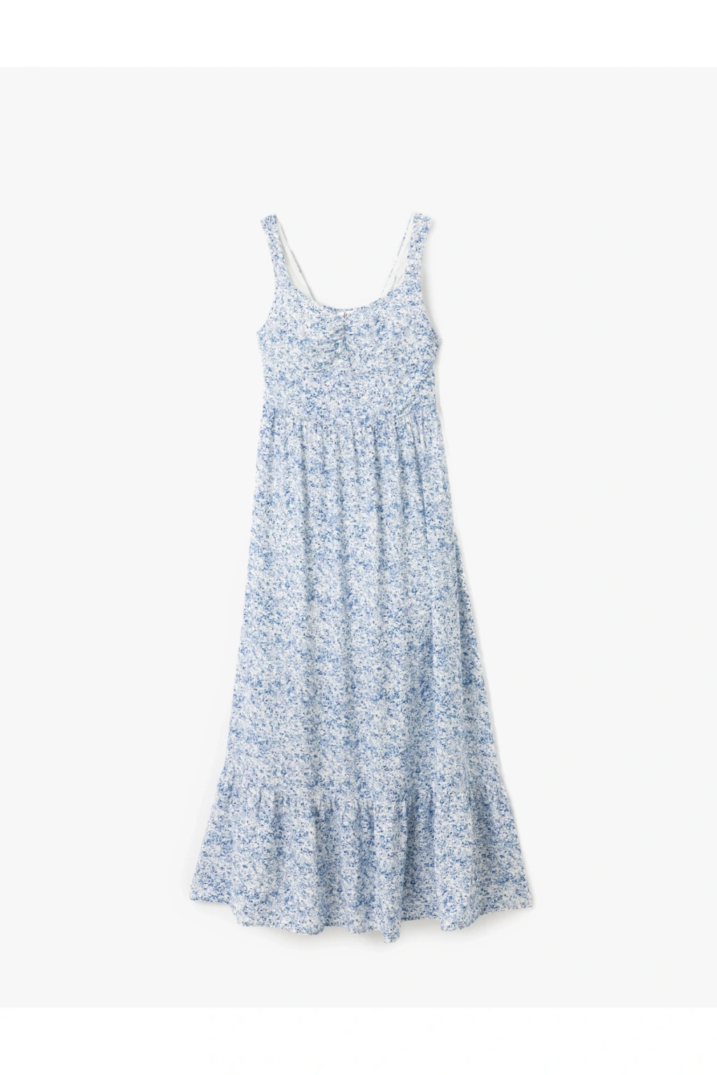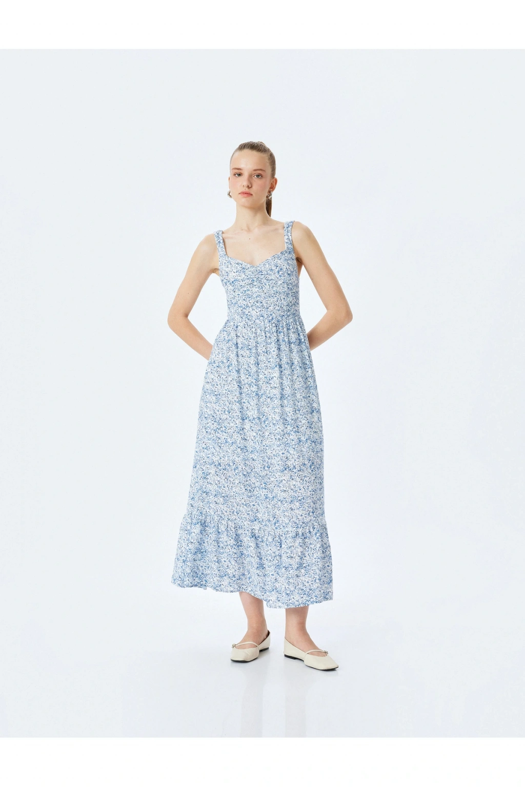Kolsuz Gipeli U Yaka Katlı Viskon Çiçekli Uzun Elbise