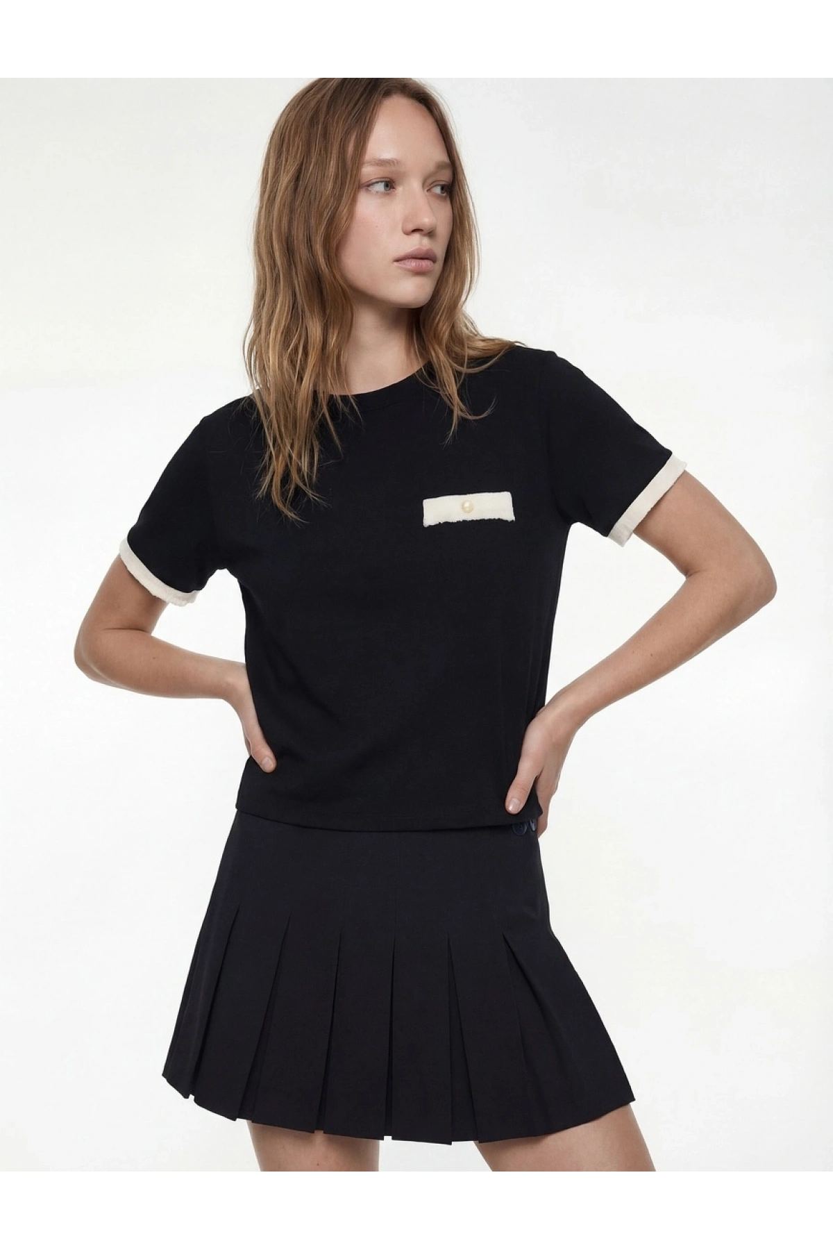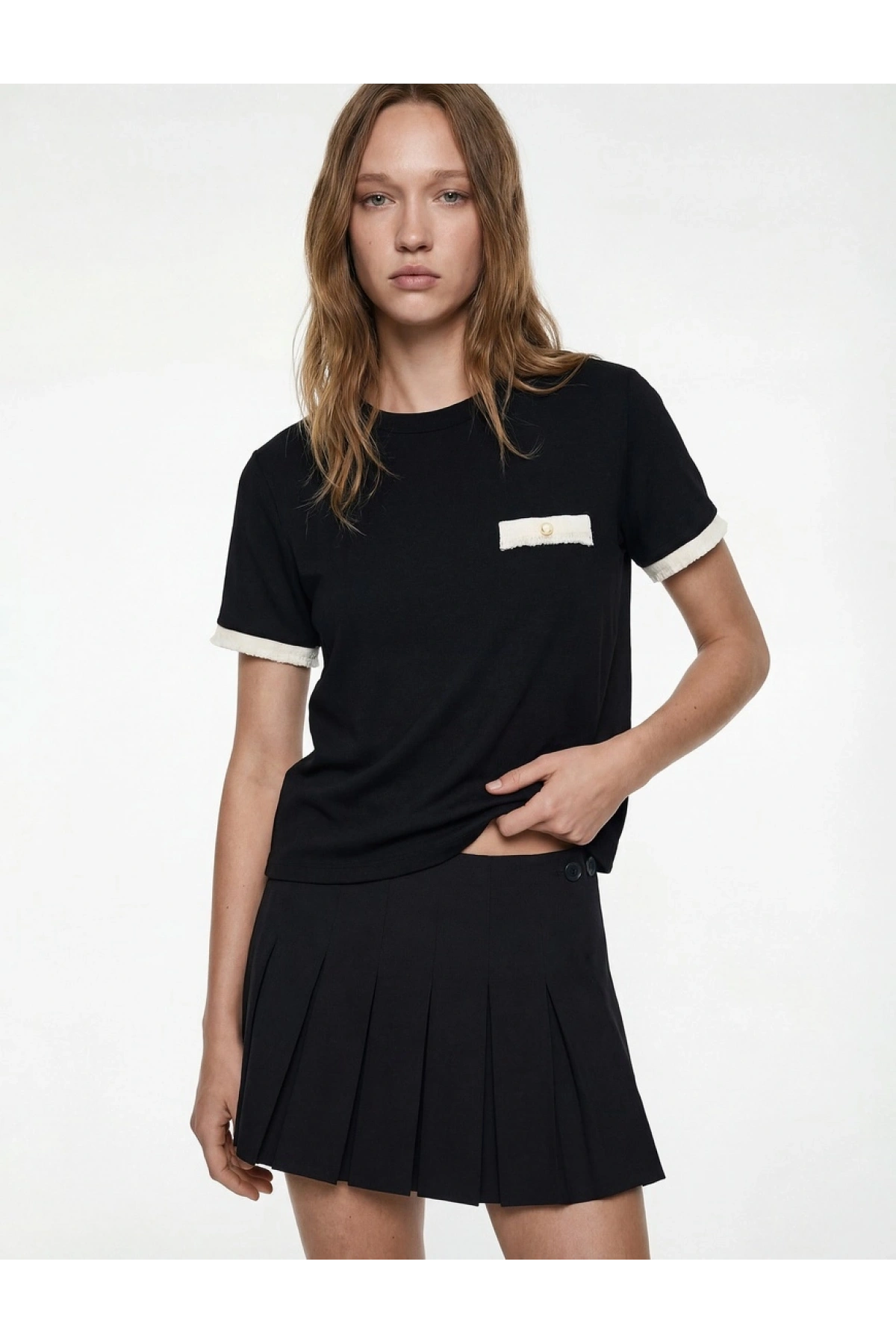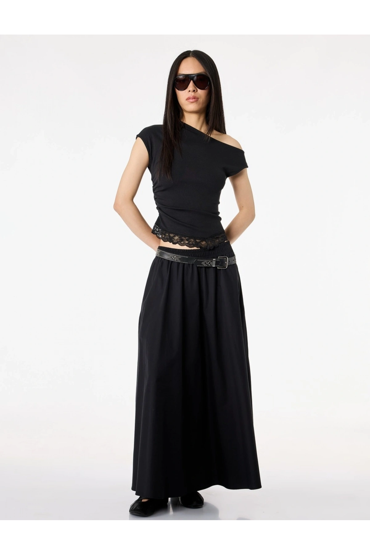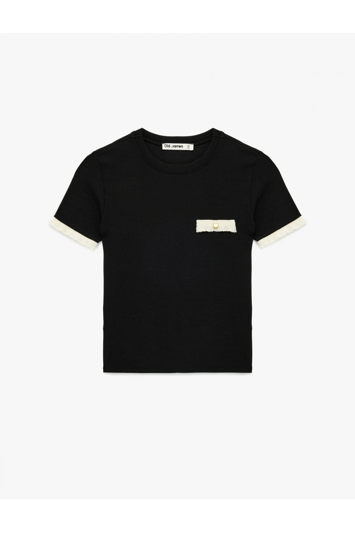 Koton Dantel Detaylı Kısa Kollu Asimetrik Yaka Drapeli Omzu Açık Tişört