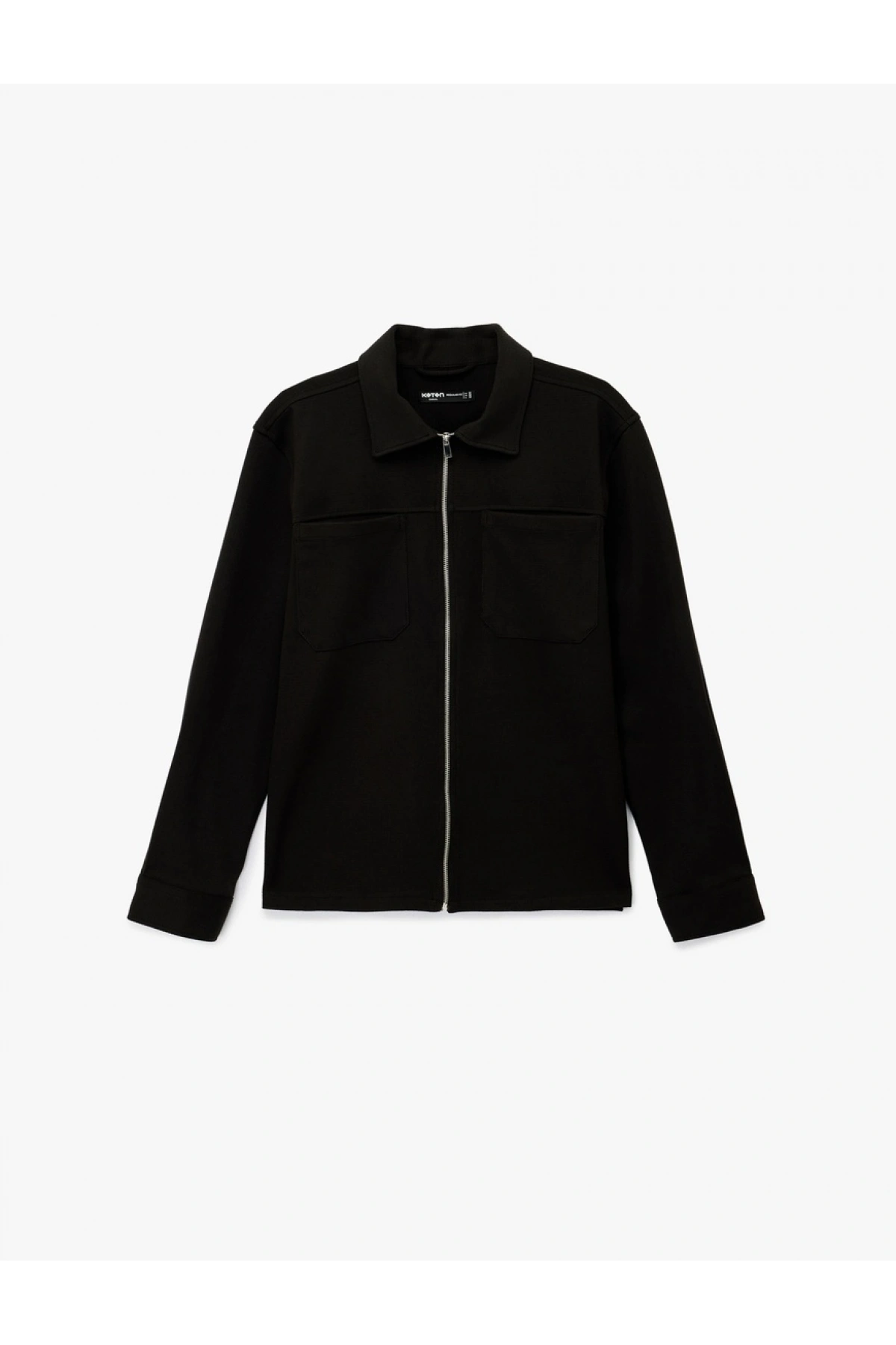 Koton Uzun Kollu Cepli Klasik Yaka Fermuarlı Gömlek Ceket